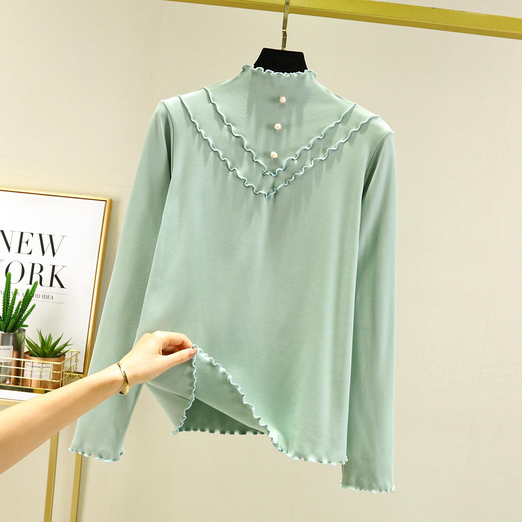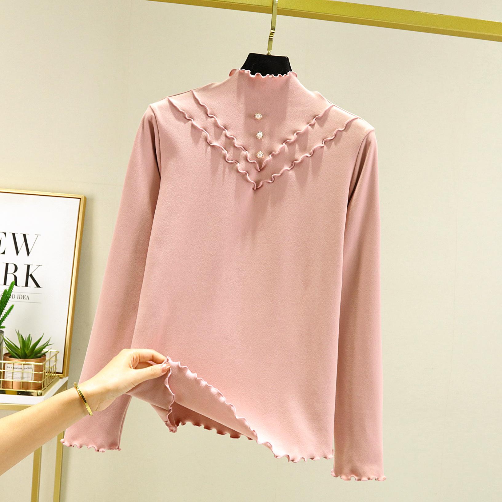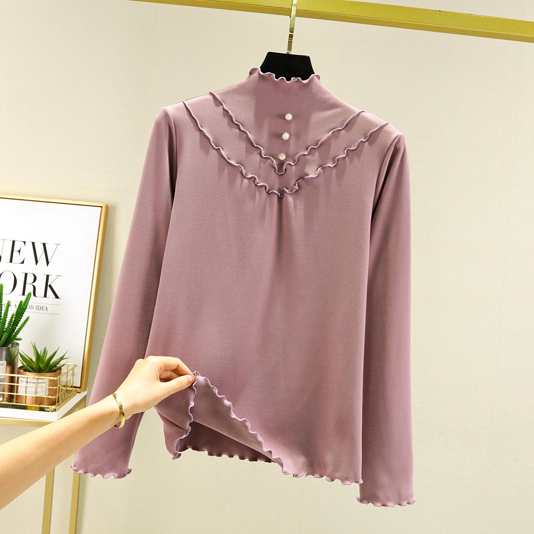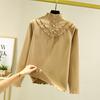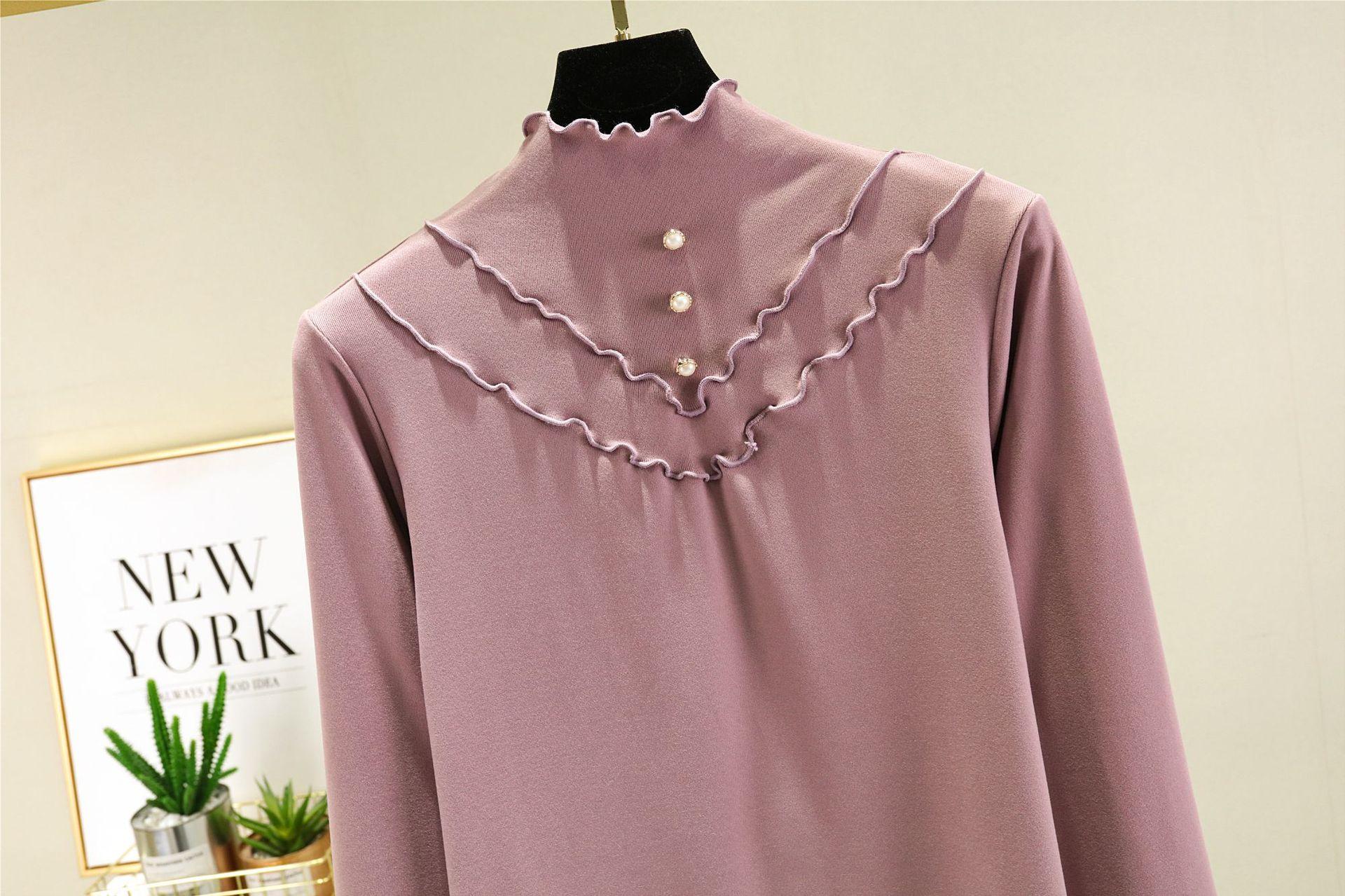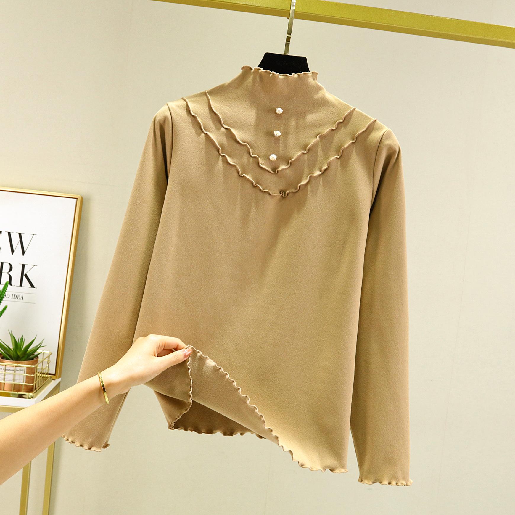 Camiseta de manga larga con cuello alto, abrigada y de doble cara con base gruesa de vellón cepillado para mujer, ideal para otoño e invierno.