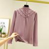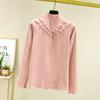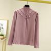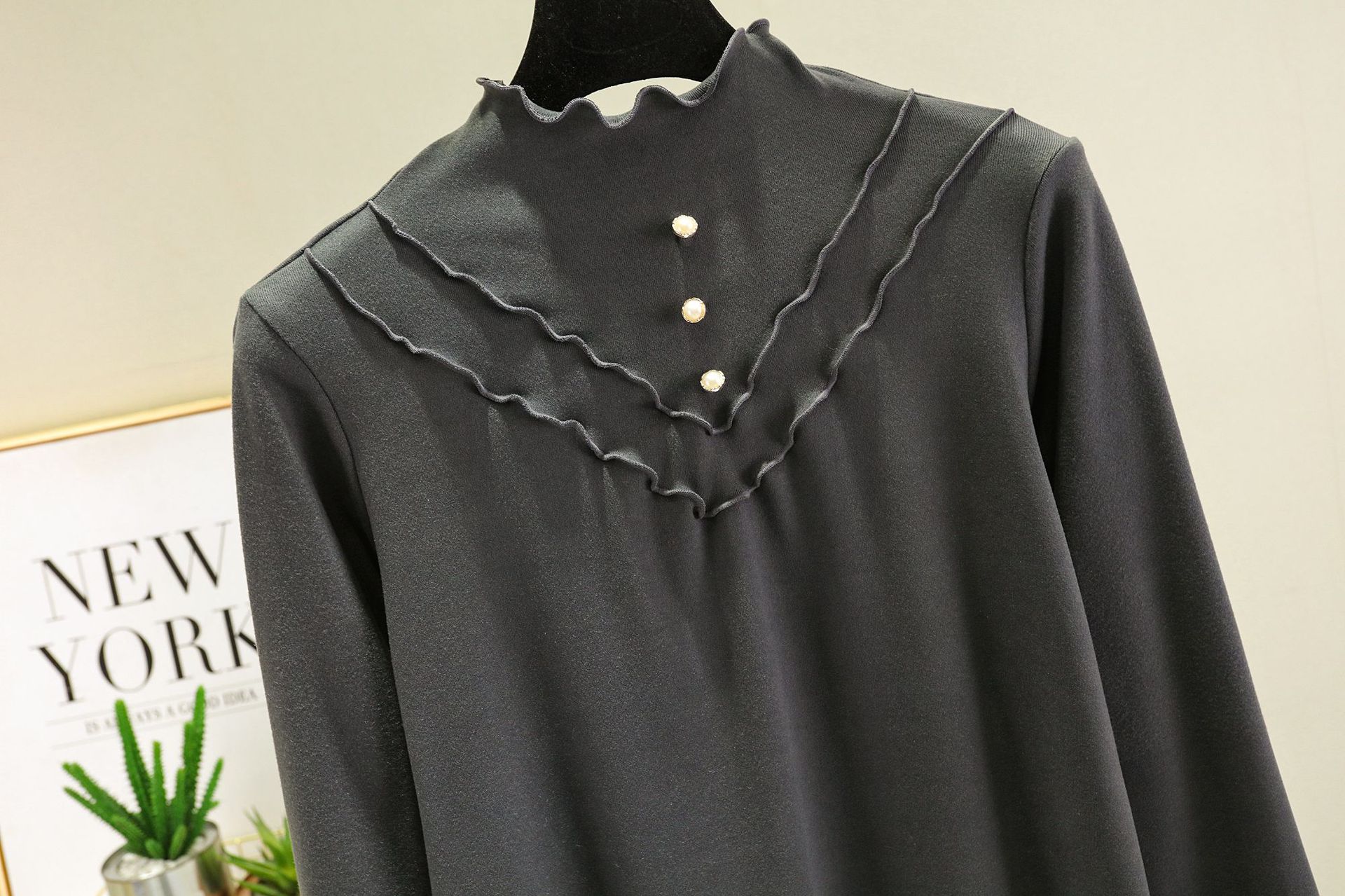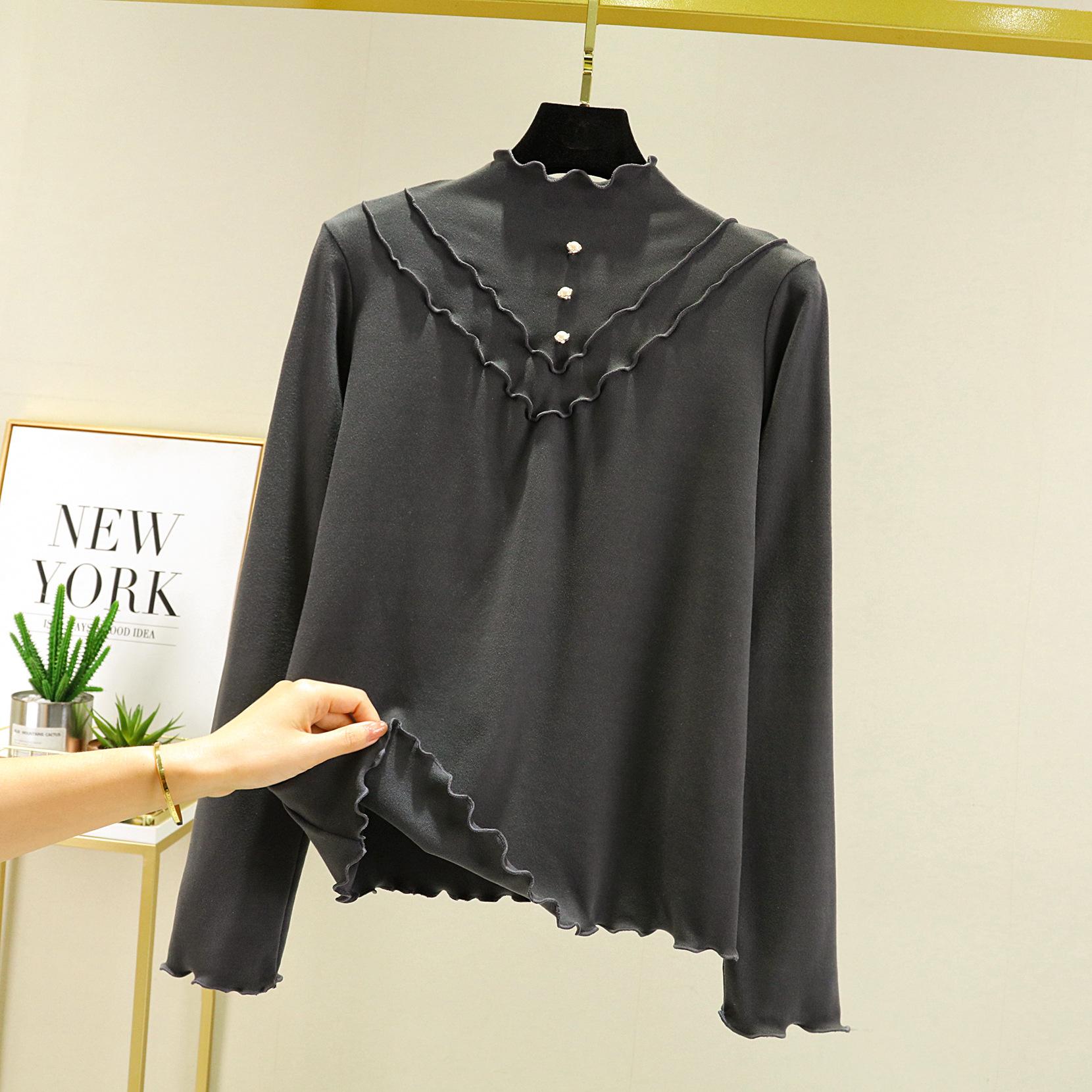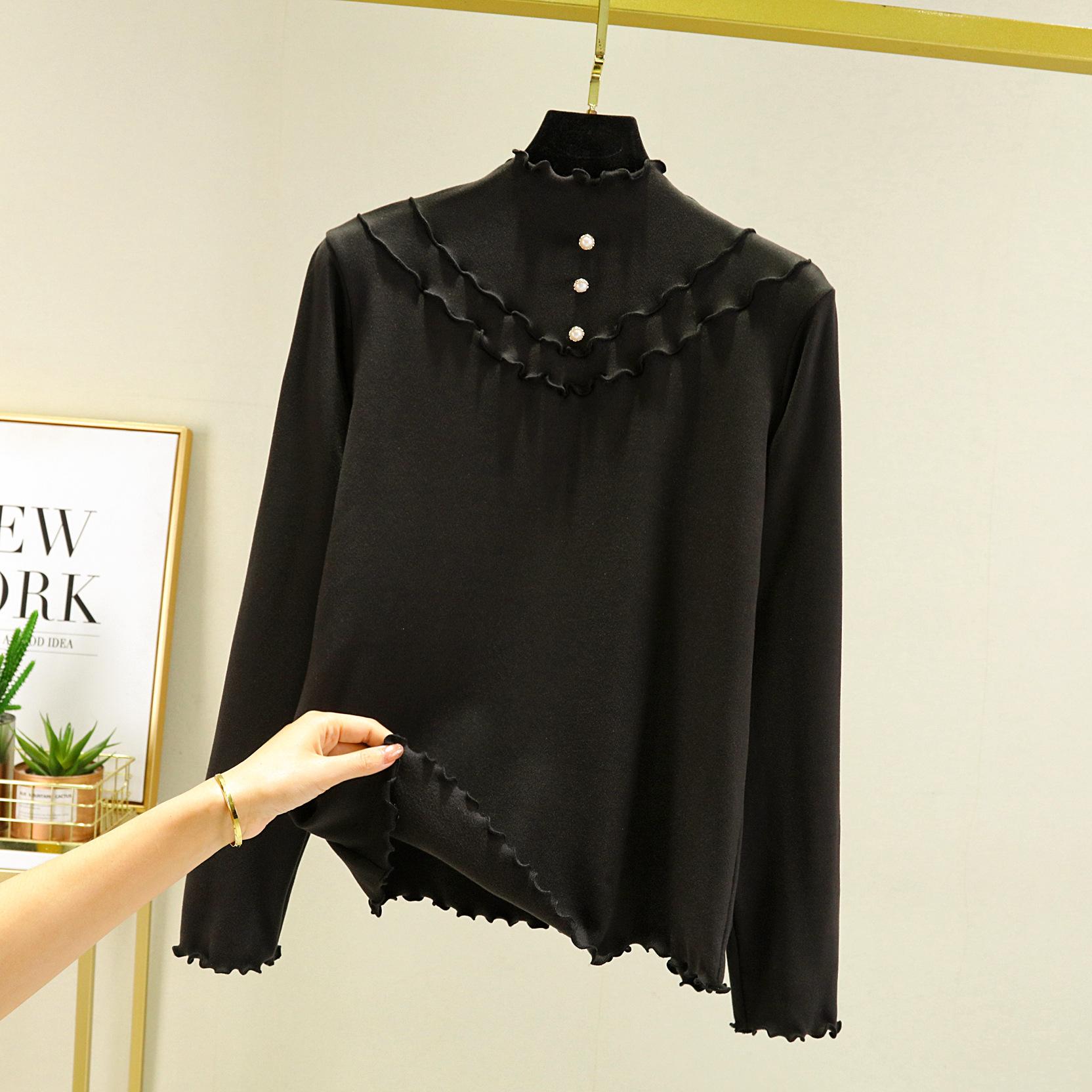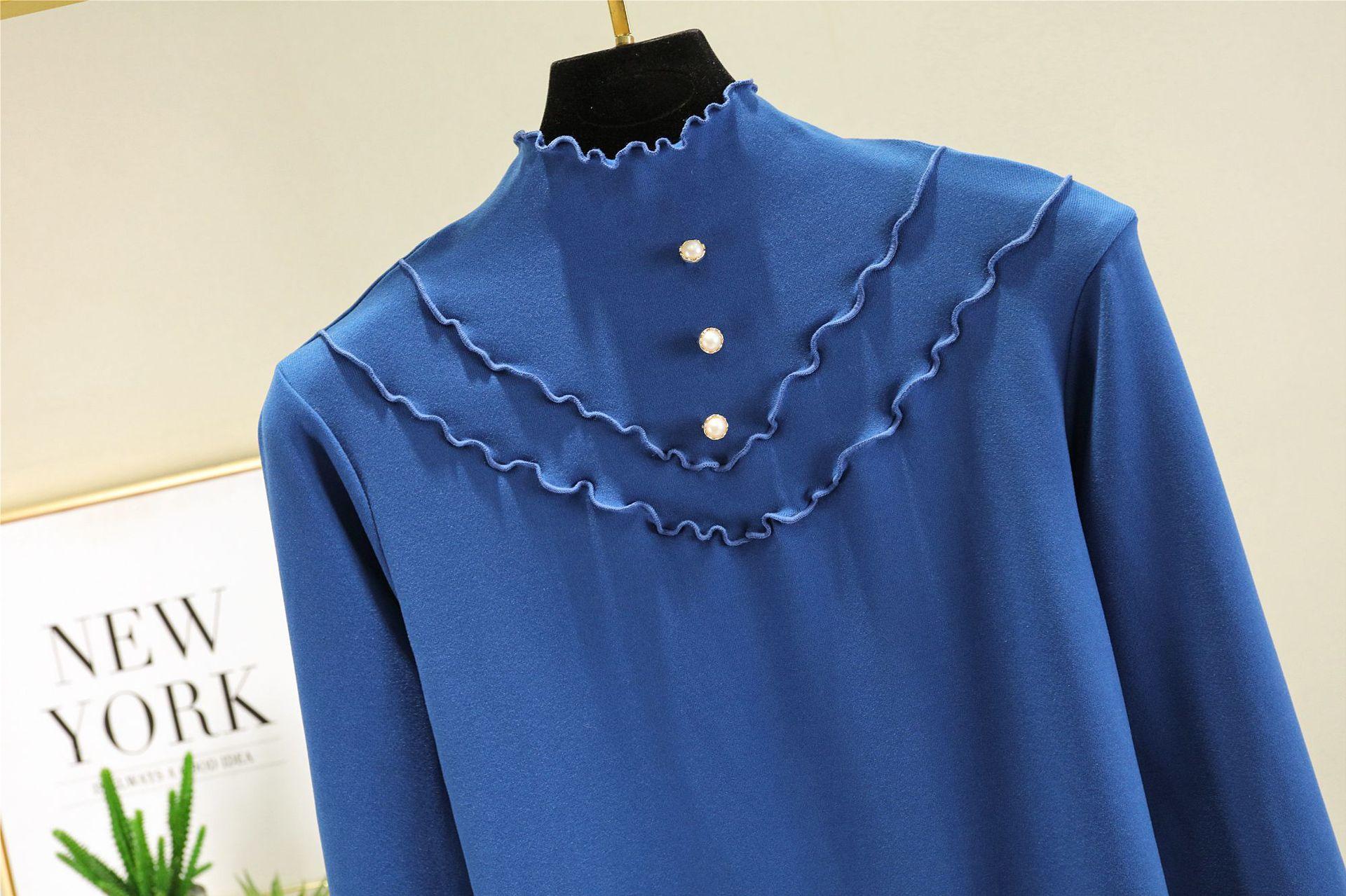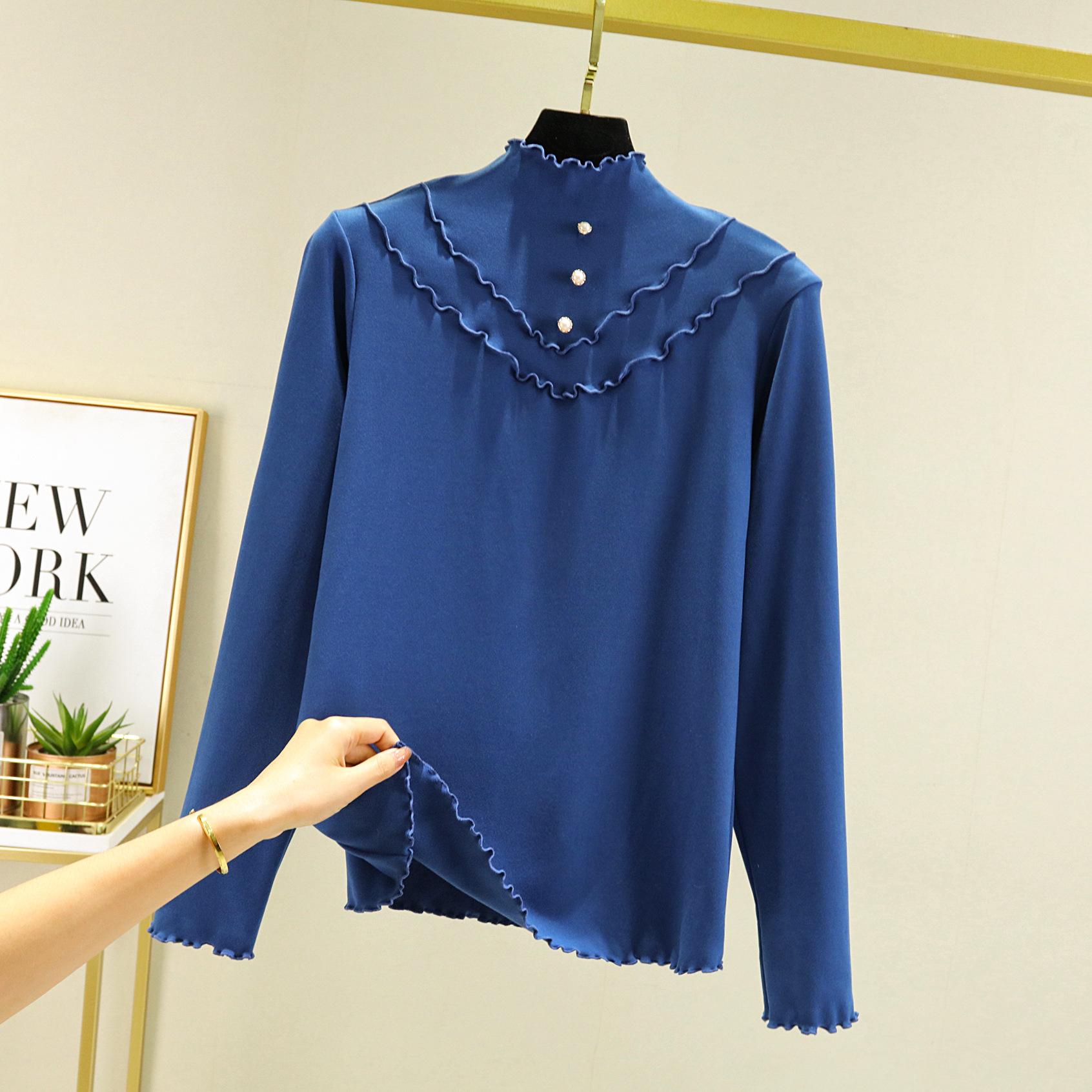 Camiseta de manga larga con cuello alto, abrigada y de doble cara con base gruesa de vellón cepillado para mujer, ideal para otoño e invierno.