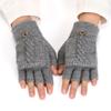 Guantes coreanos de estilo transfronterizo con solapa de medio dedo para invierno para mujer, lindos, forrados de vellón, a prueba de frío, cálidos, de lana tejida, para otoño e invierno, de dedo exacto