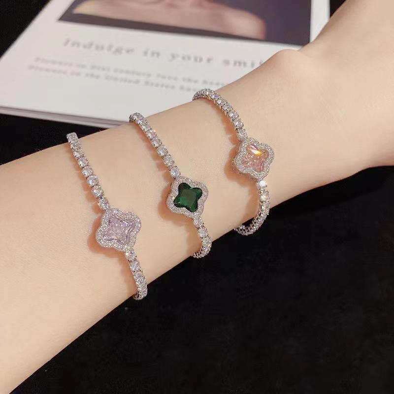 Pulsera de Trébol de Cuatro Hojas de Circonita Micro-Incrustada de Verano 2023 para Mujer, Personalizada, Lujo Ligero, Elegante, Joyería Ajustable, Estilo Lujo Ligero