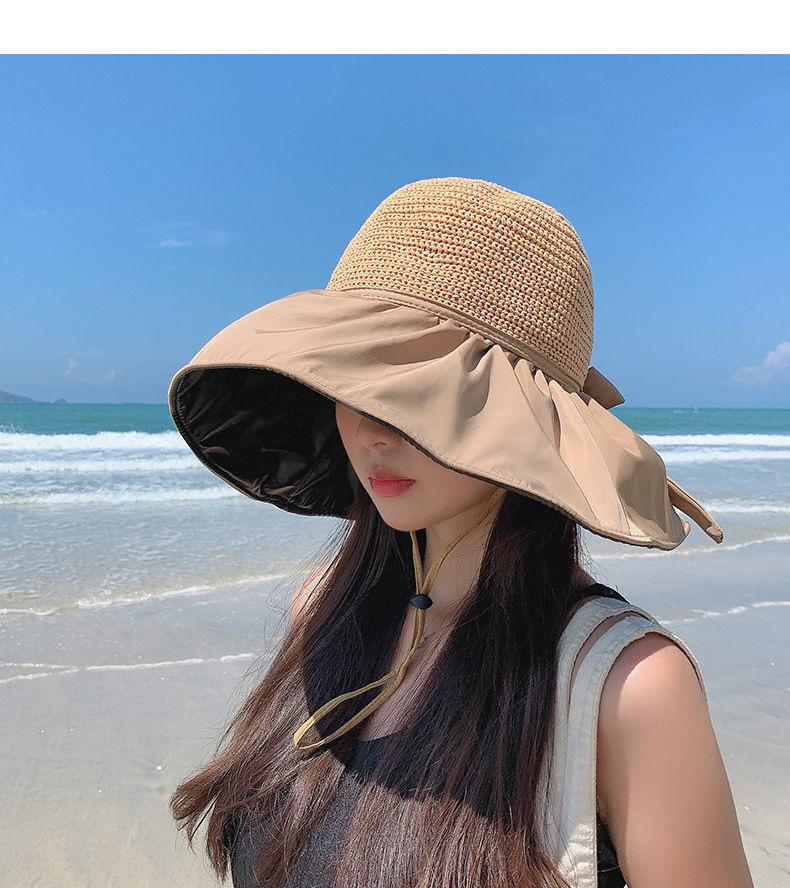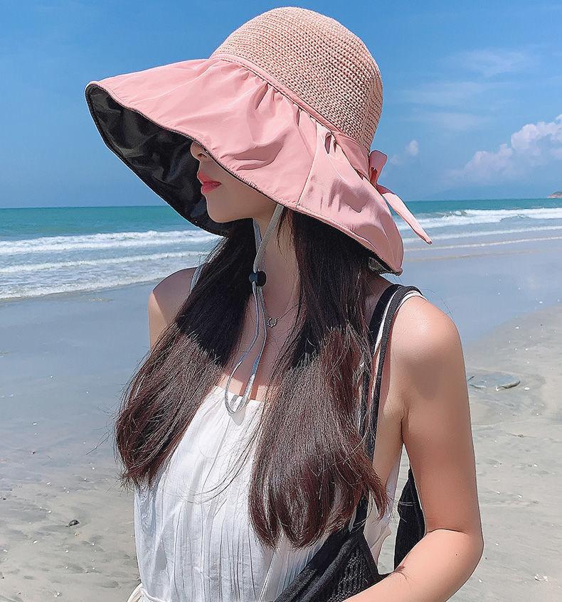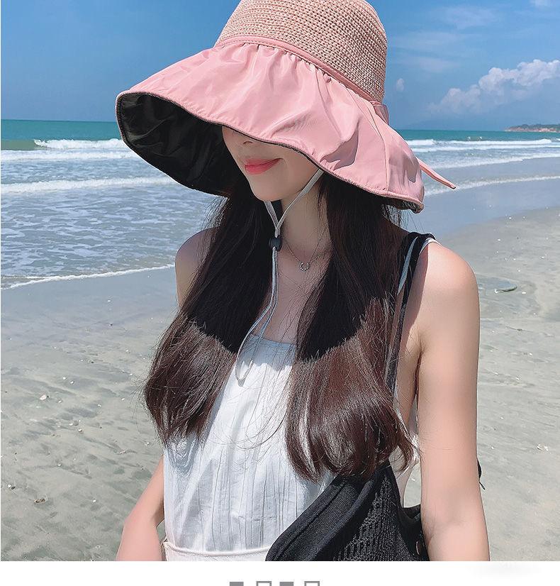 Sombrero de Sol de Verano para Mujer Estilo Coreano Vinilo Protección Solar Sombrero de Sol Lazo Playa Anti-Uv Cubierta Facial para Exterior Sombrero de Sol