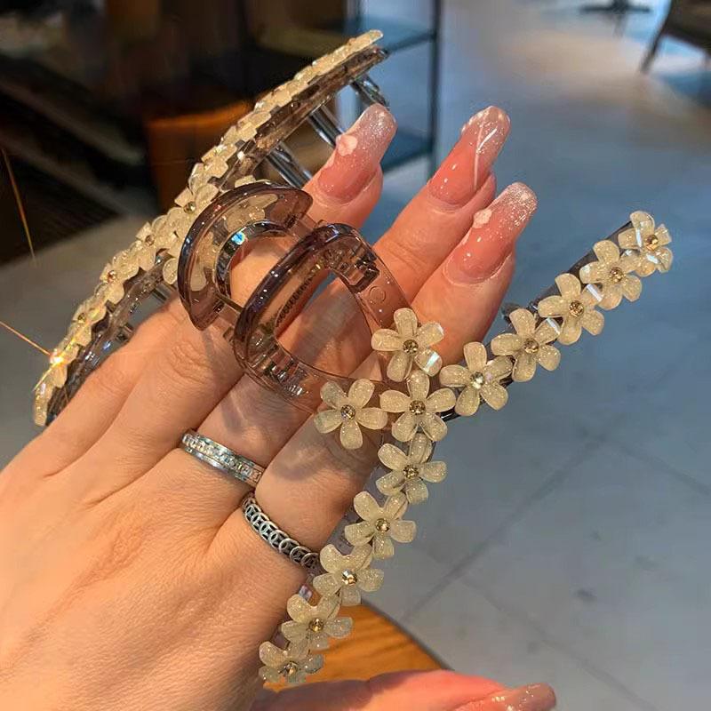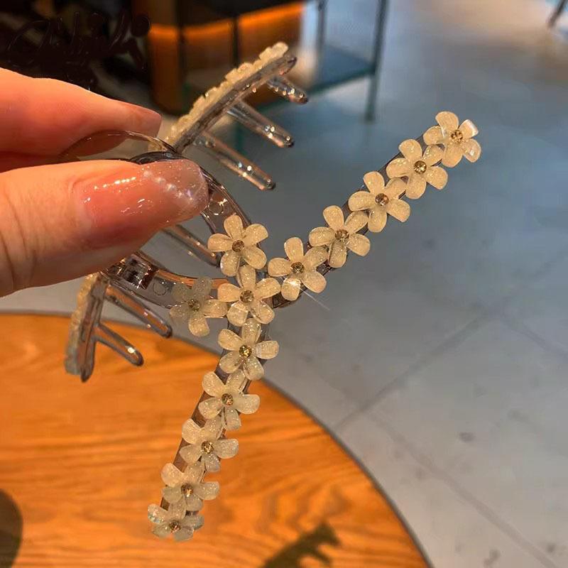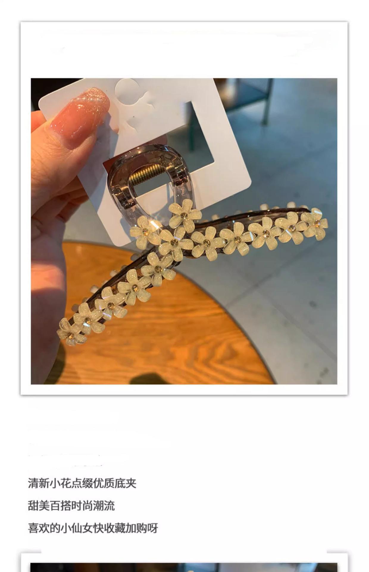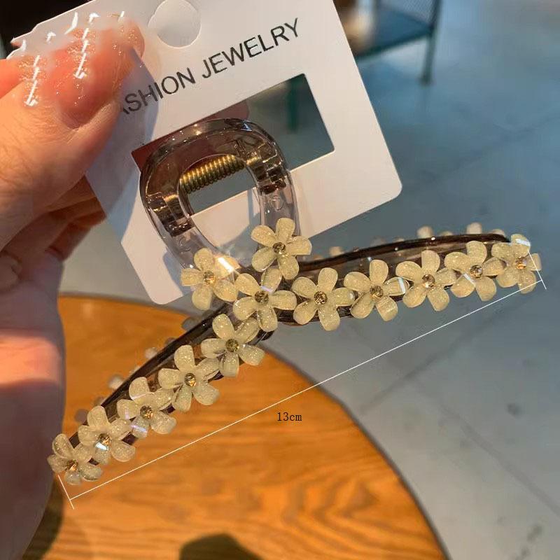 Elegante y dulce, pequeña flor, gran pinza de agarre, ligera, de lujo, de alta gama, pinza de pelo de tiburón, estilo coreano, exquisita pinza para el pelo con diamantes de imitación.