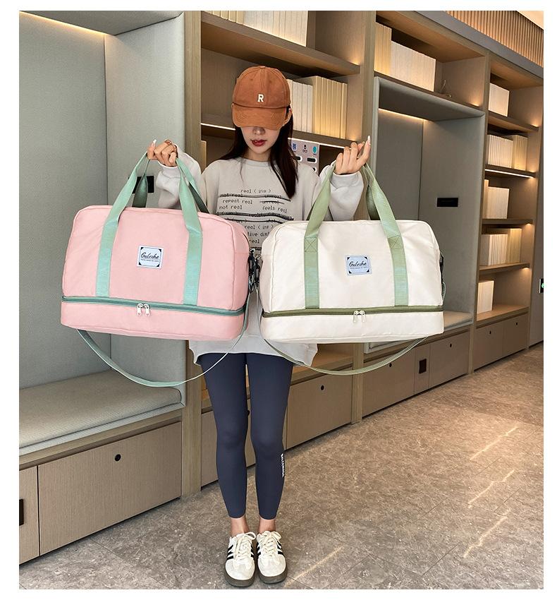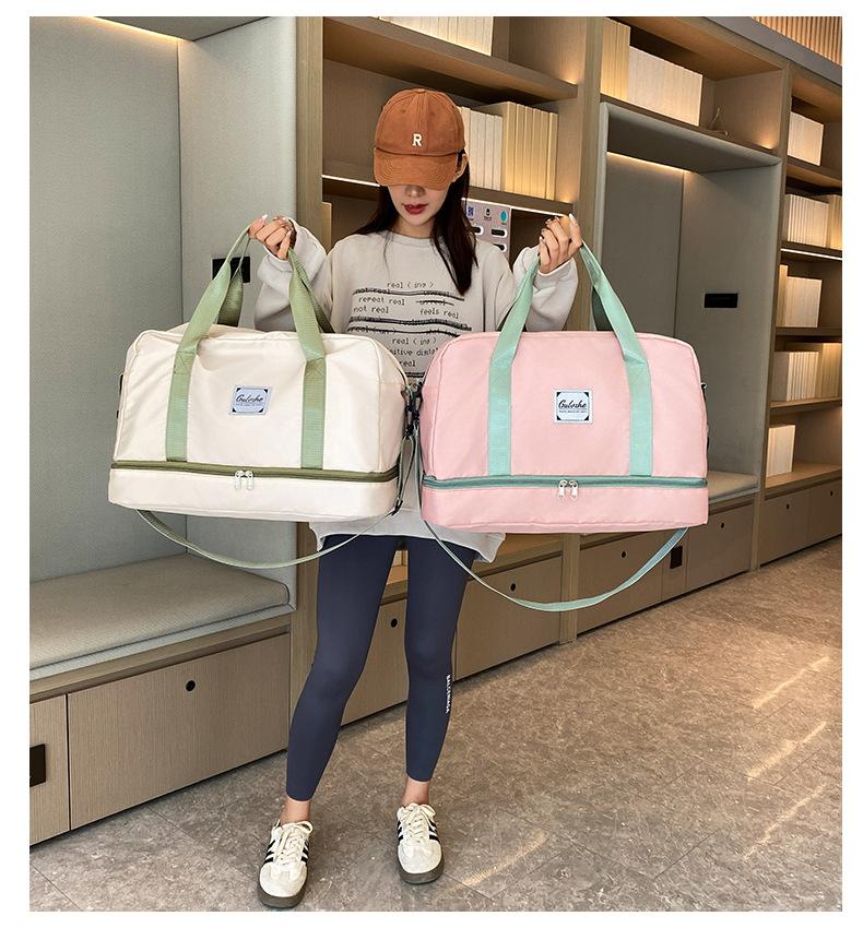 Bolsa de viaje transfronteriza, bolsa de equipaje de viaje de corta distancia portátil de estilo coreano, gran capacidad, ligera, con separación húmeda y seca, bolsa deportiva para fitness.