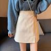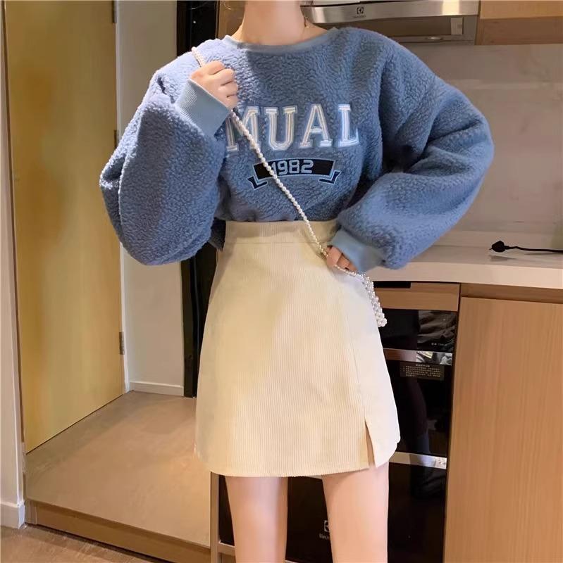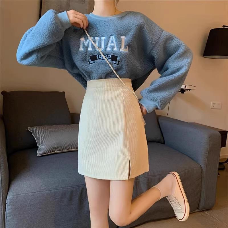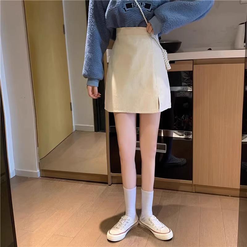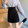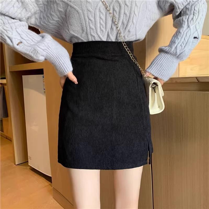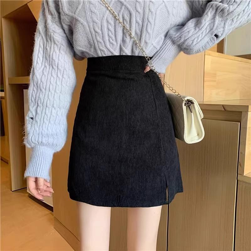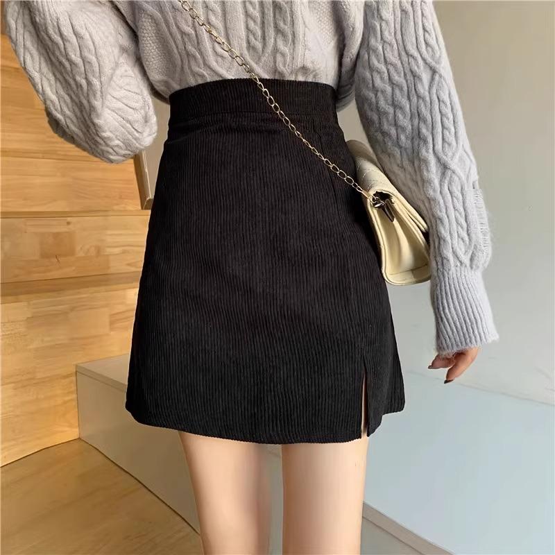 Falda de pana de cintura alta para mujer, talla grande, otoño e invierno, para chica gordita, falda pequeña de corte A, falda adelgazante con abertura