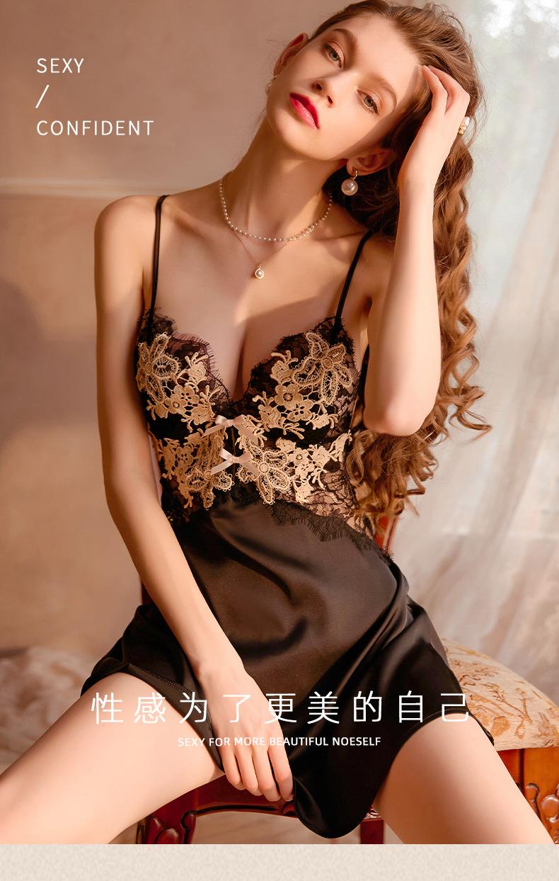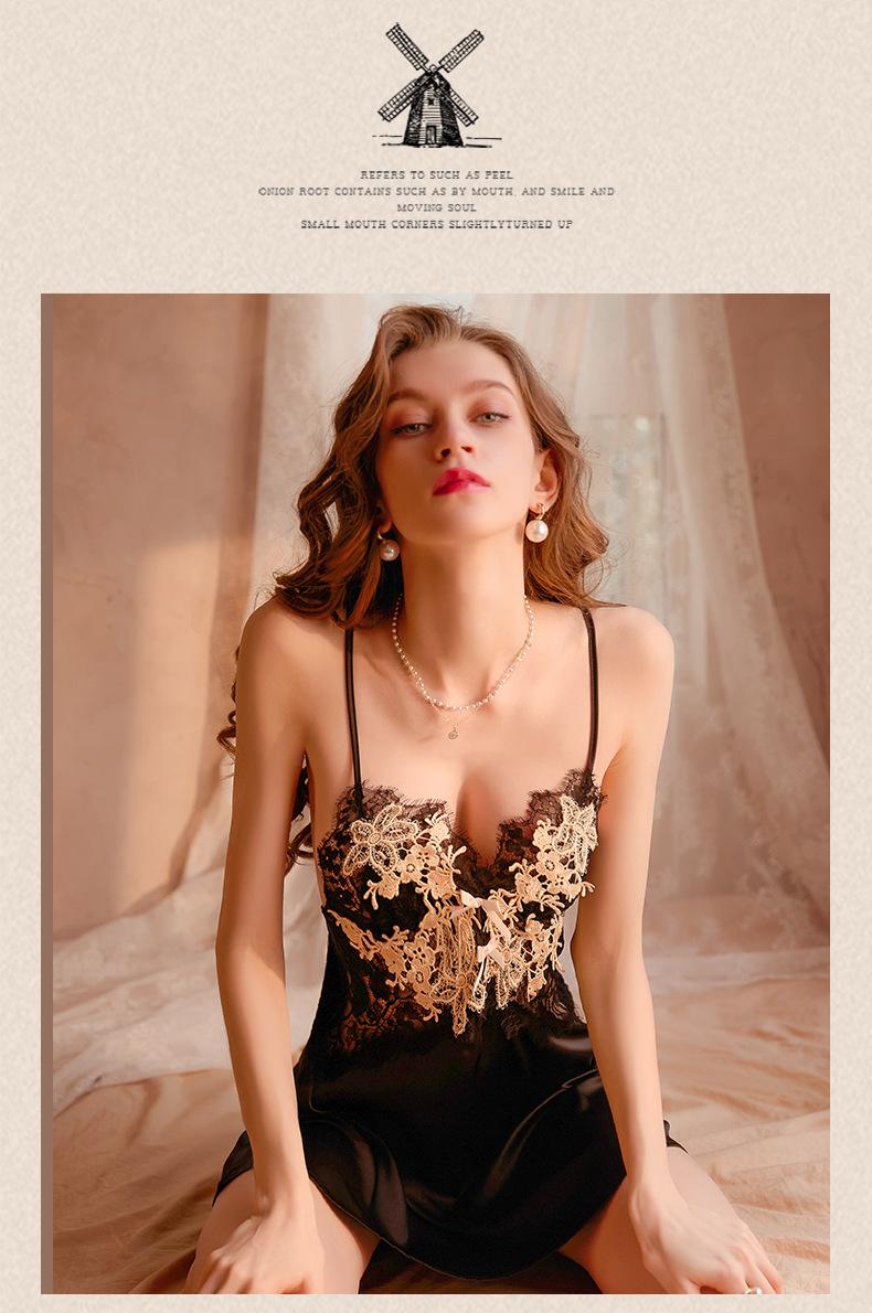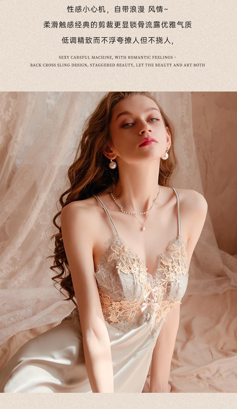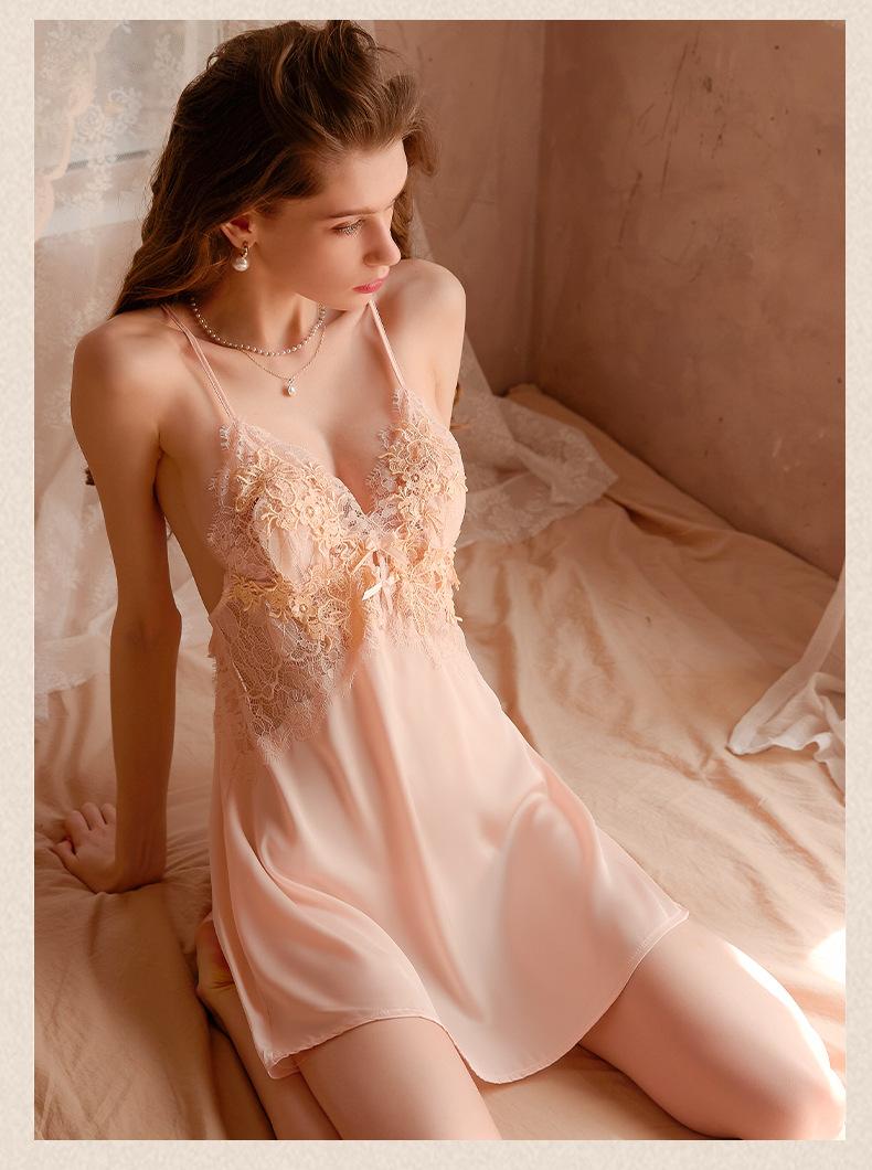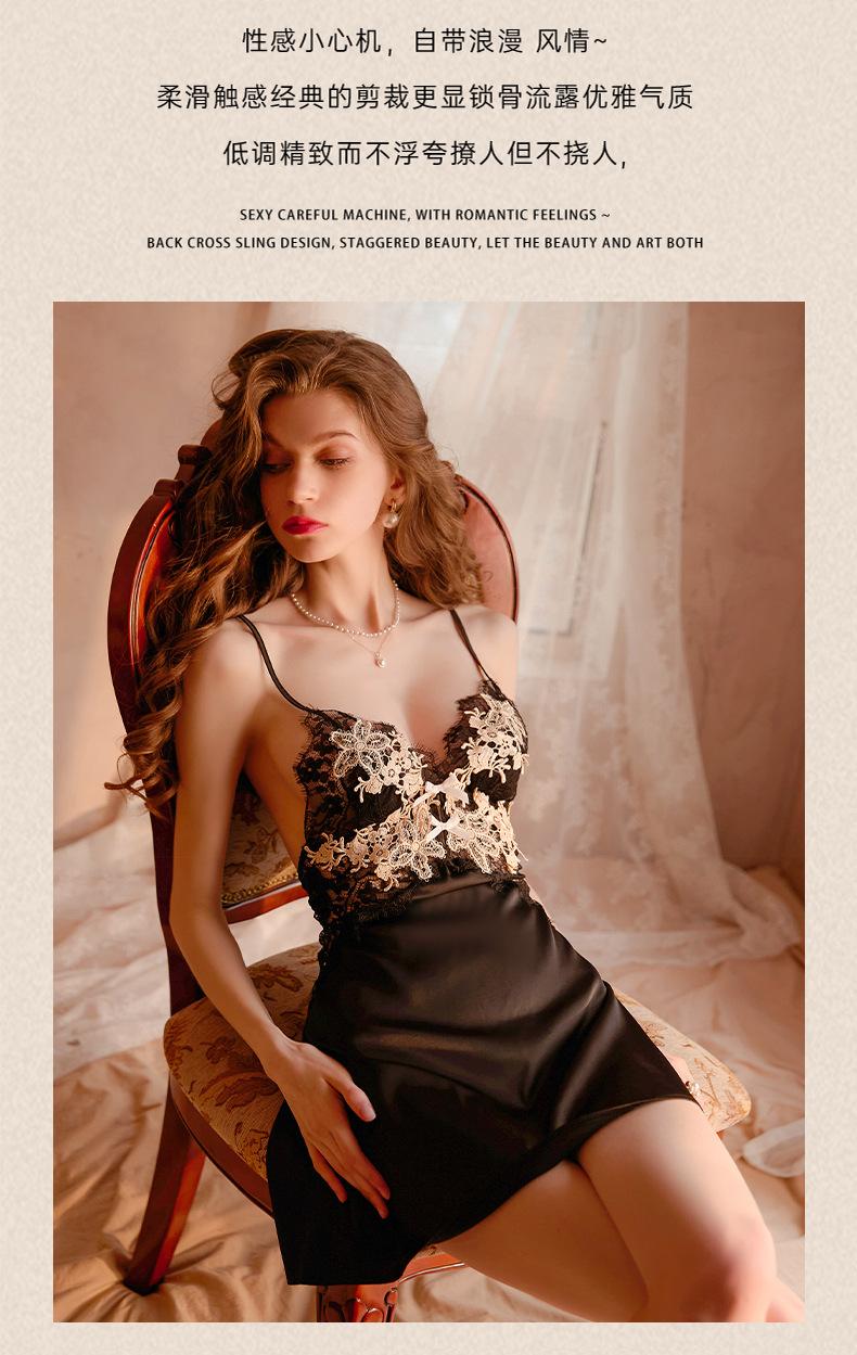 Pijamas Sexy para Mujer 2023 Nuevo Ropa de Dormir de Verano Tirantes Encaje Puro Hermosa Espalda Delgada Seda de Hielo Francesa Ropa para el Hogar