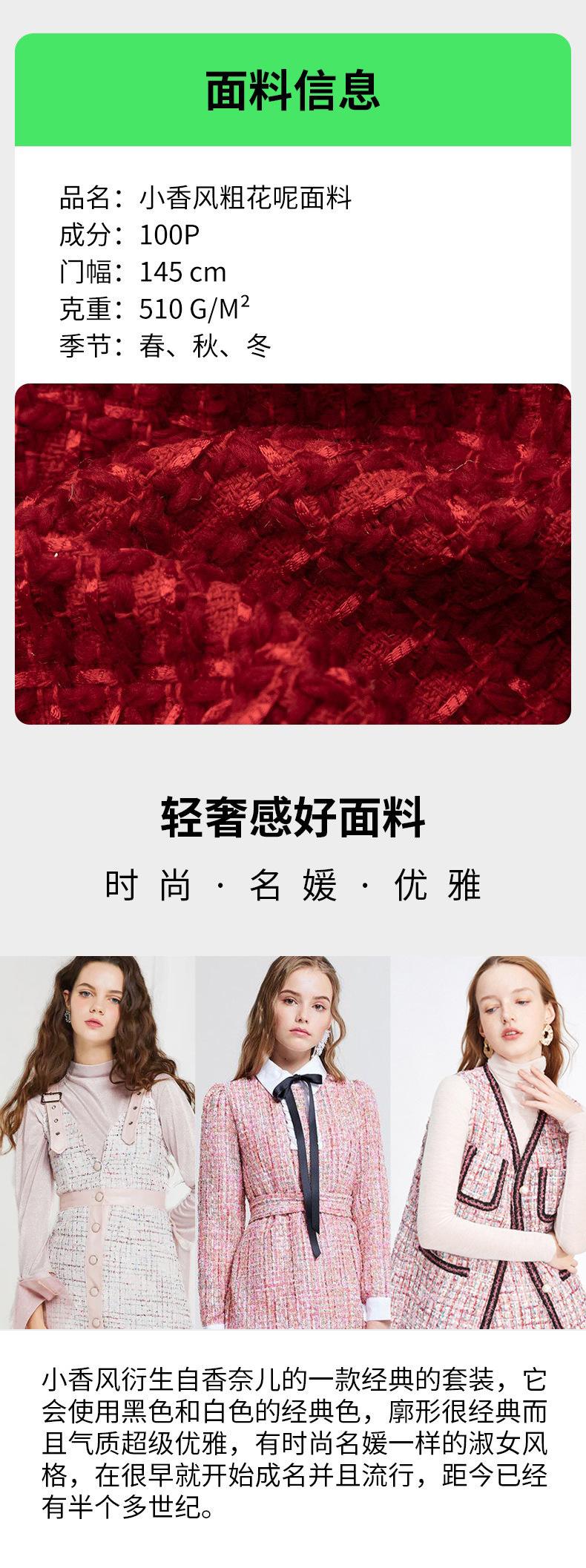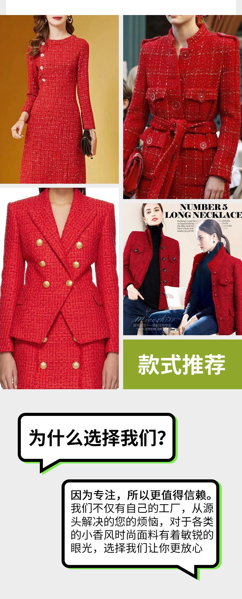 Compra Tela para vestido, abrigo y bolso de lana de poliéster tweed pequeña y fragante de color rojo para otoño e invierno, suministro directo al contado al por mayor en Joom.pro