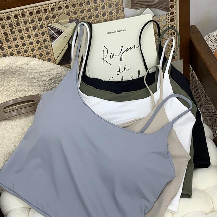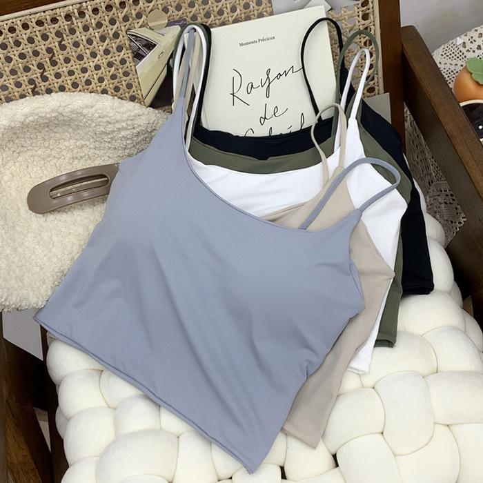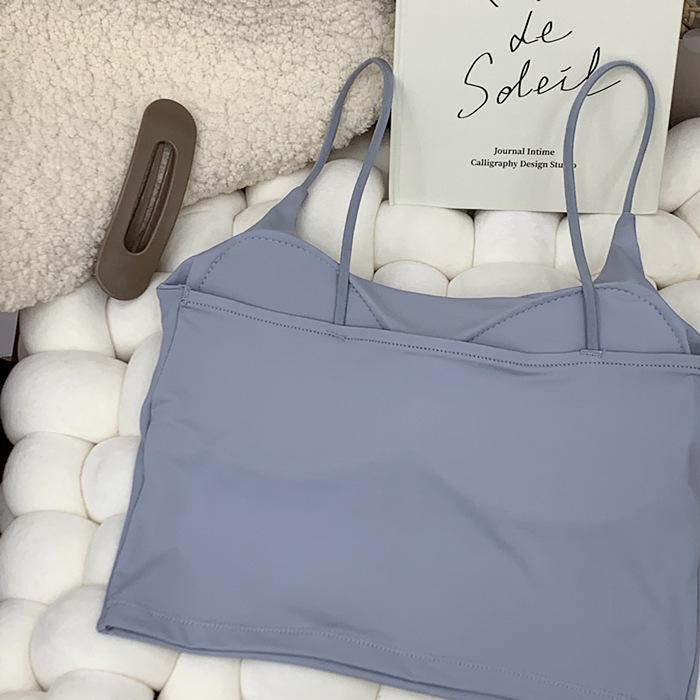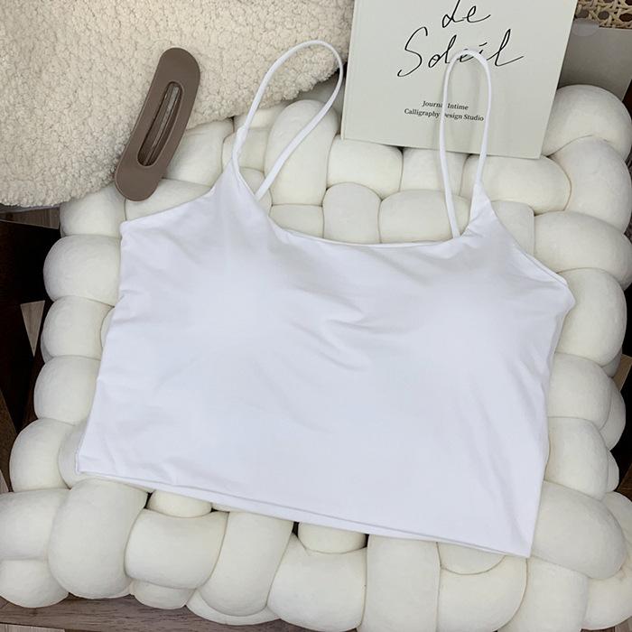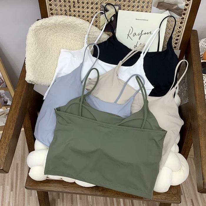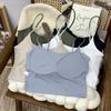 Camisola de seda de hielo de color sólido sin costuras para niña, top de tubo para mujer, cómoda, elástica, ajustada, con parte inferior, ropa interior de belleza con almohadilla para el pecho