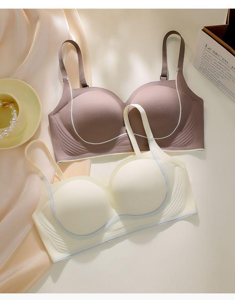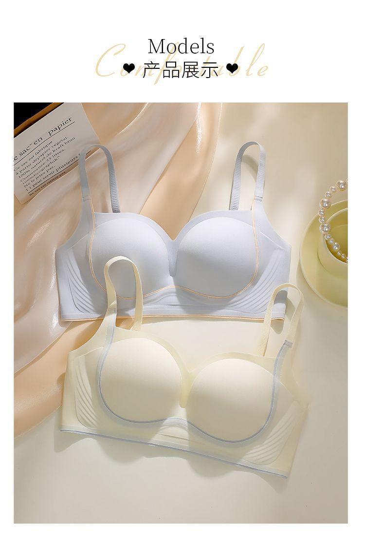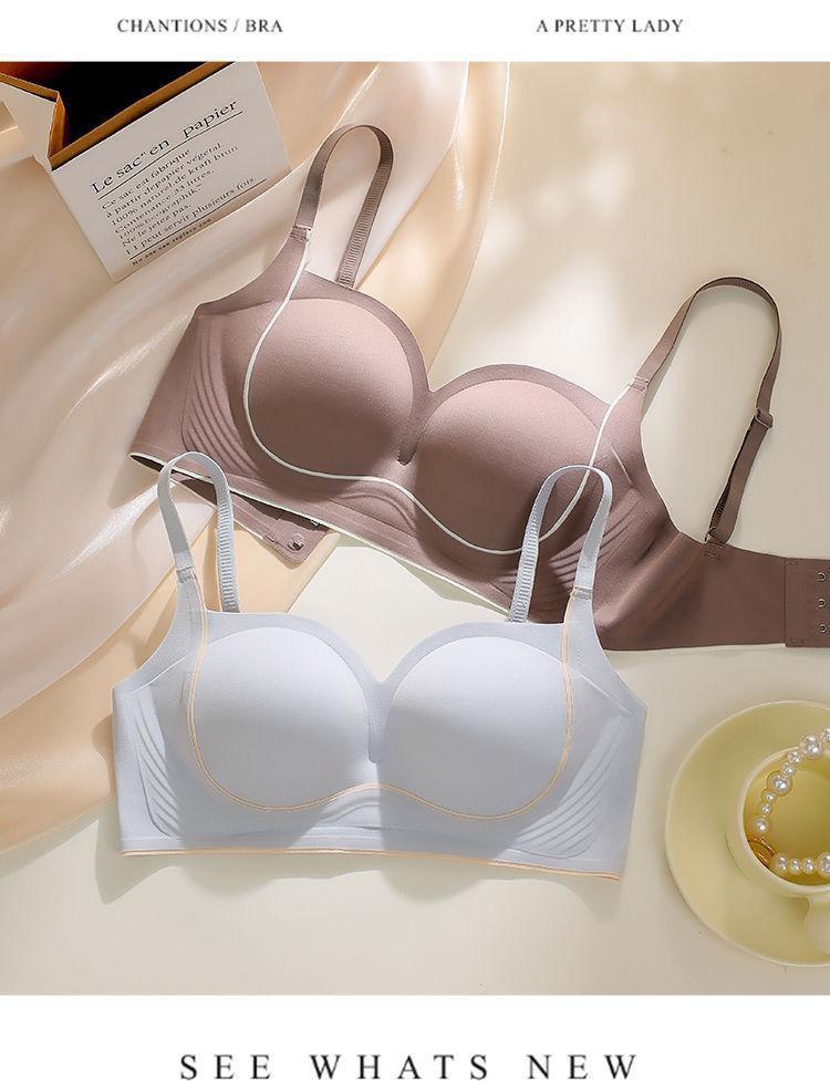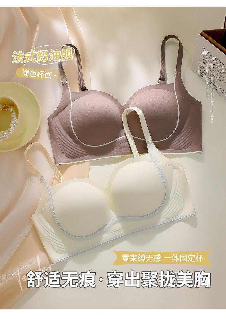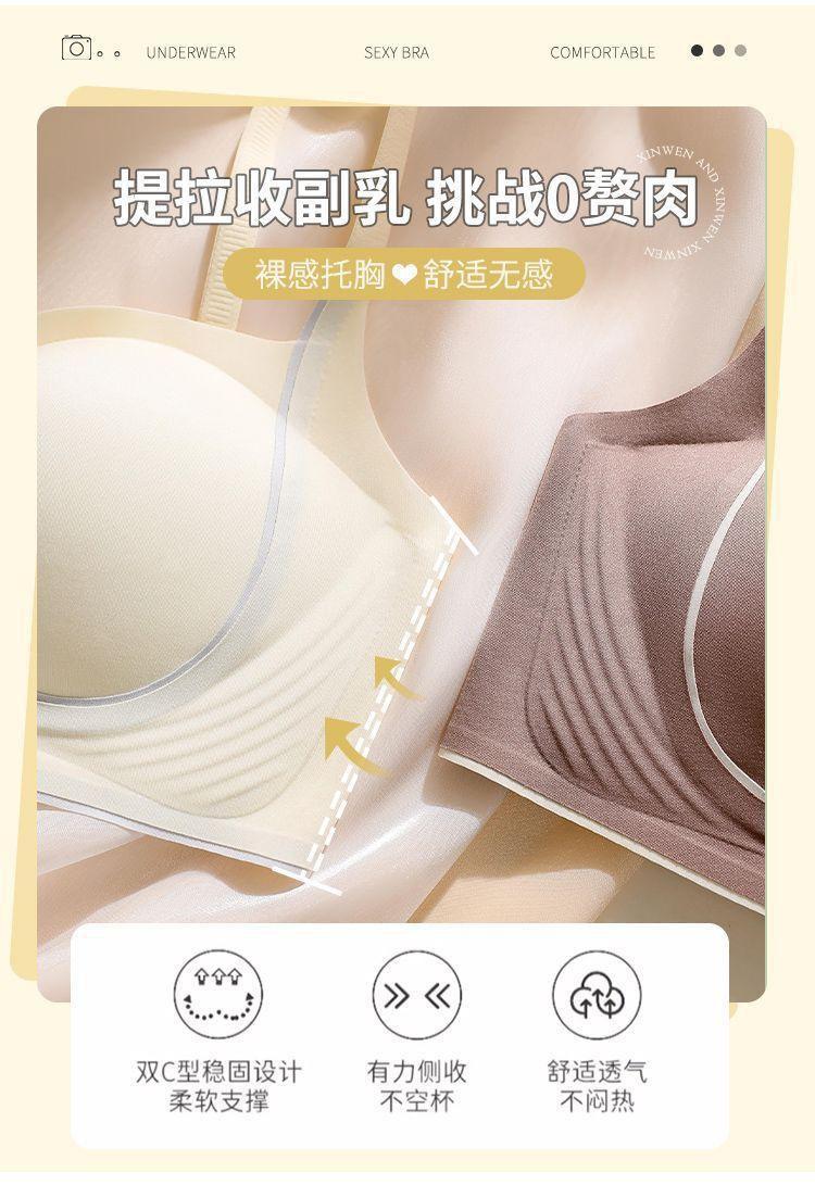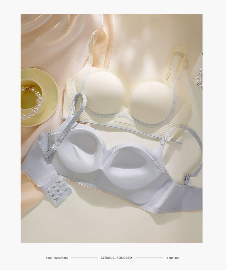 Nueva ropa interior sin costuras para mujer, con pecho pequeño fruncido y sin aro de acero, soporte suave, antiflacidez, copa fija, hermoso sujetador para la espalda.