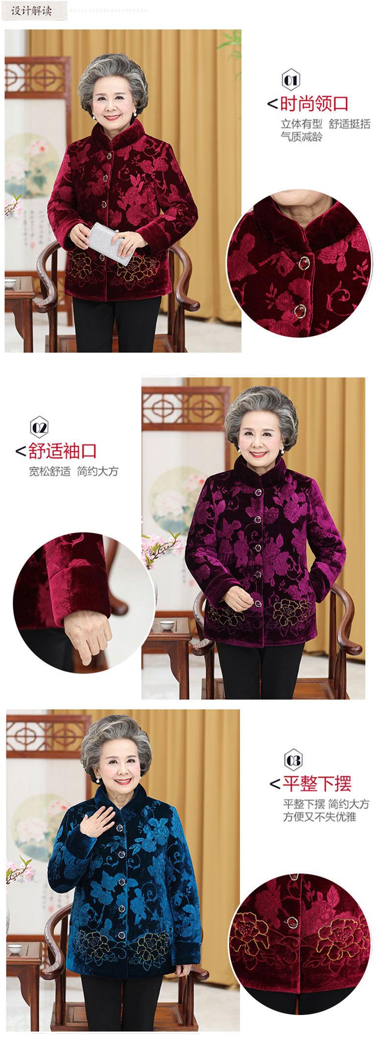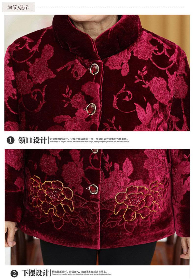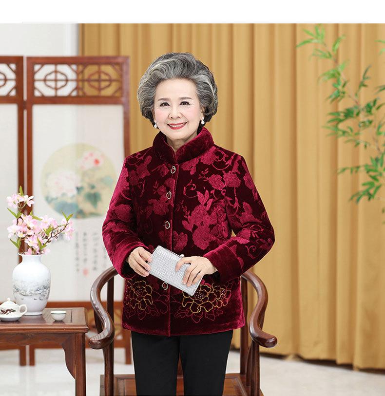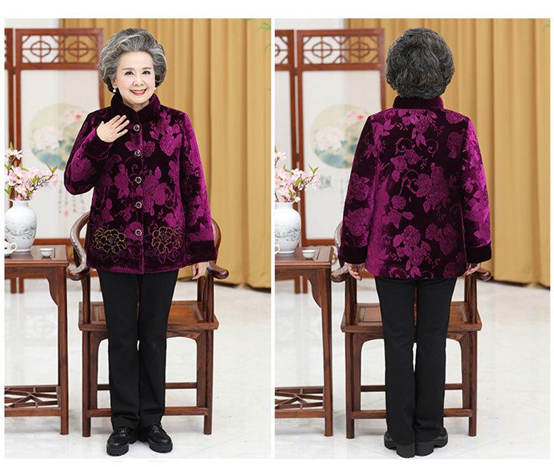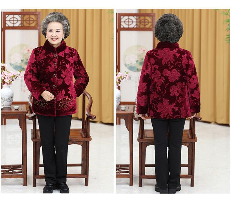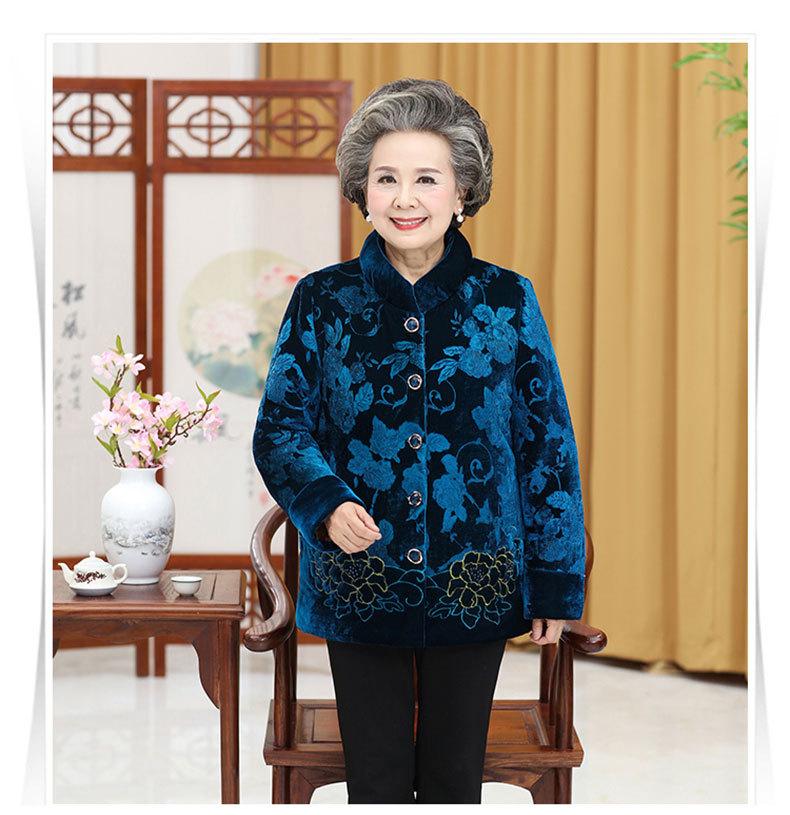 Ropa de invierno para abuela de mediana edad y anciana, ropa acolchada de algodón con forro polar grueso, ropa para madre, ropa para mujer, ropa acolchada de algodón cálida bordada, chaqueta acolchada de algodón vieja estilo occidental