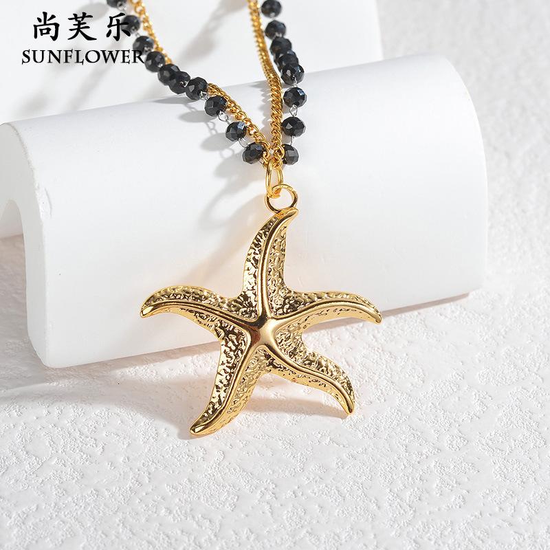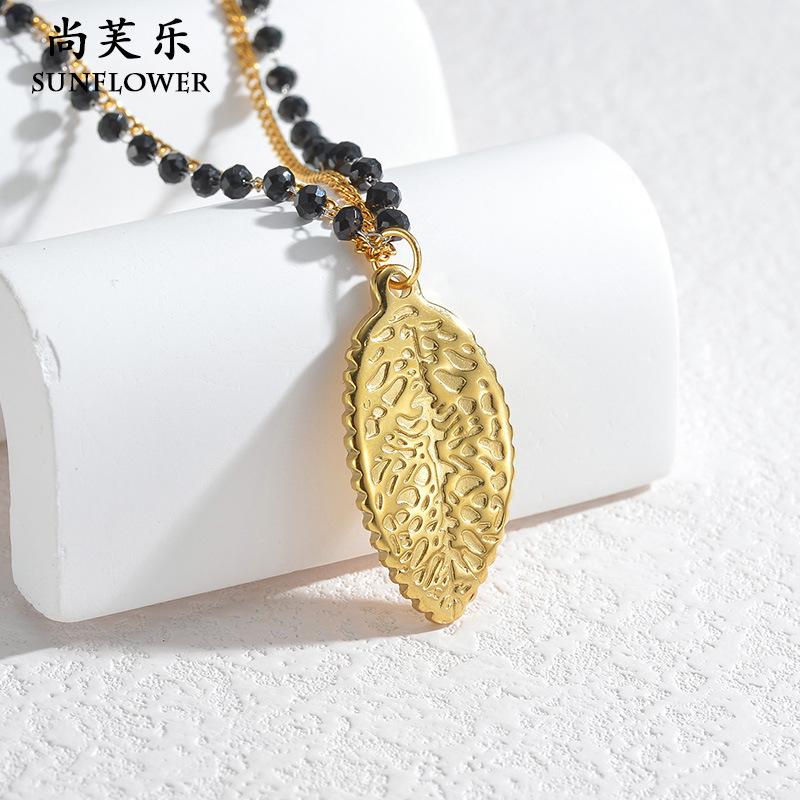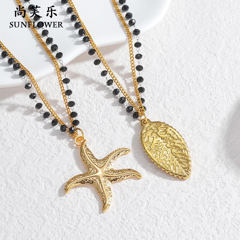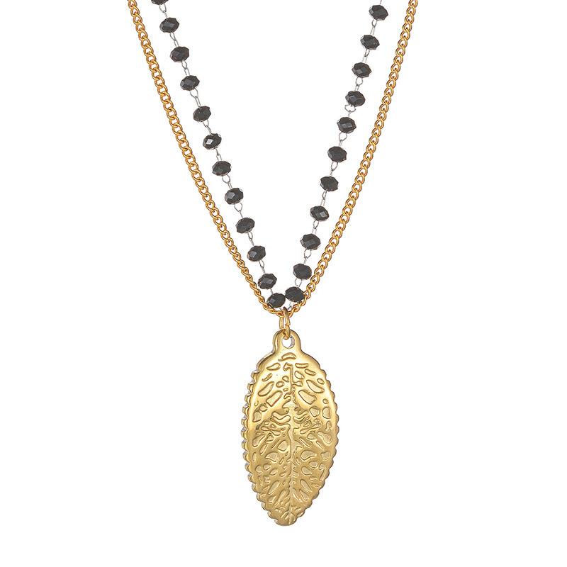 Collar de acero de titanio apilado de doble capa de estilo retro transfronterizo, cadena de clavícula con cuentas creativas europeas y americanas, joyería versátil de alta gama