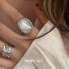 Anillo Irregular Plisado de Plata S925 Estilo Coreano para Mujer Retro Elegante Exagerado Doble Capa Cuadrado Redondo Abierto para Dedo Anillo para Dedo de Comida