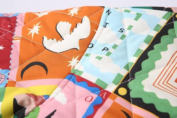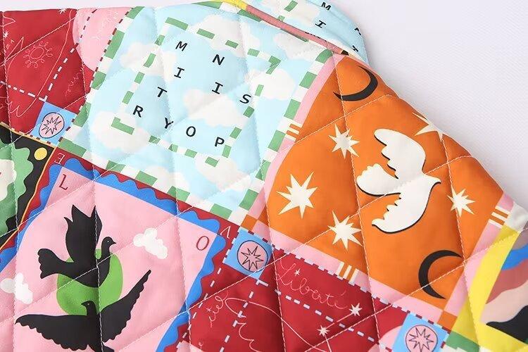 Amazon comercio exterior transfronterizo ropa de mujer europea y americana 2024 otoño nuevo abrigo chaqueta acolchada de algodón acolchada con estampado retro francés