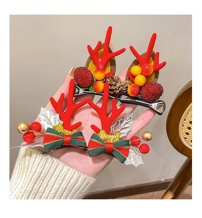 Pinza navideña linda pinza para el cabello para niños pinza para el cabello para niñas diadema para bebé decoración navideña tocado de cuernos de alce accesorios navideños para el cabello