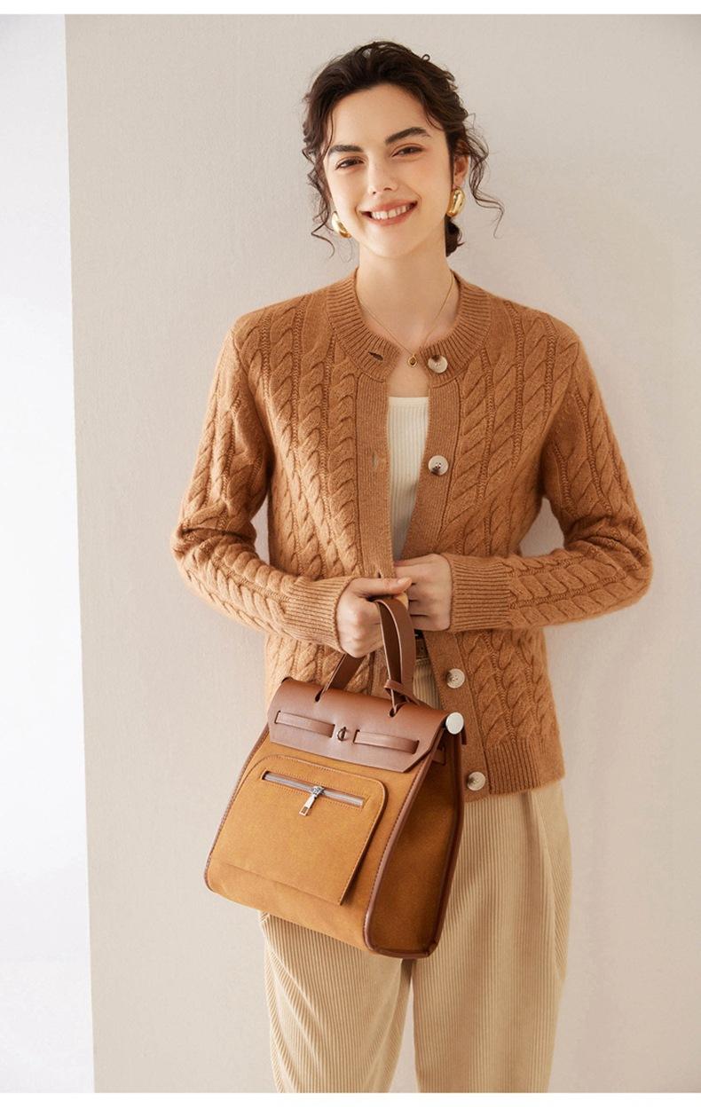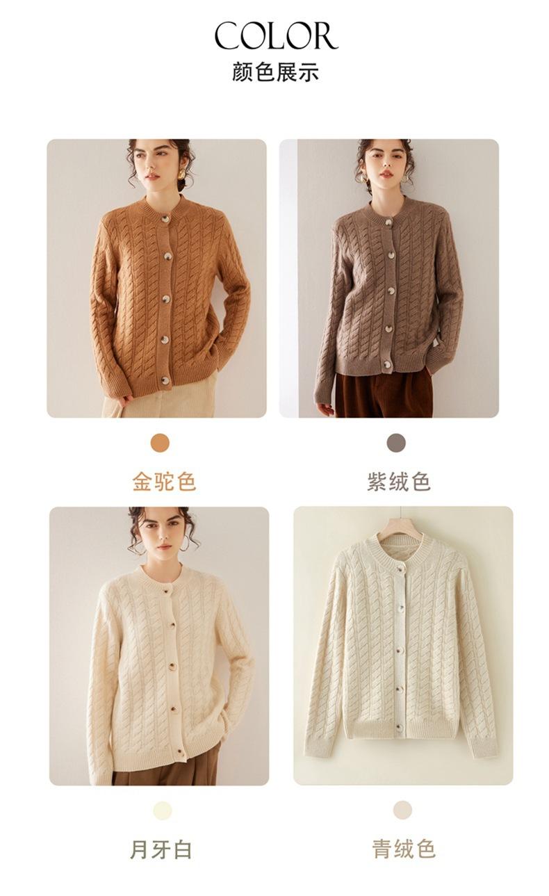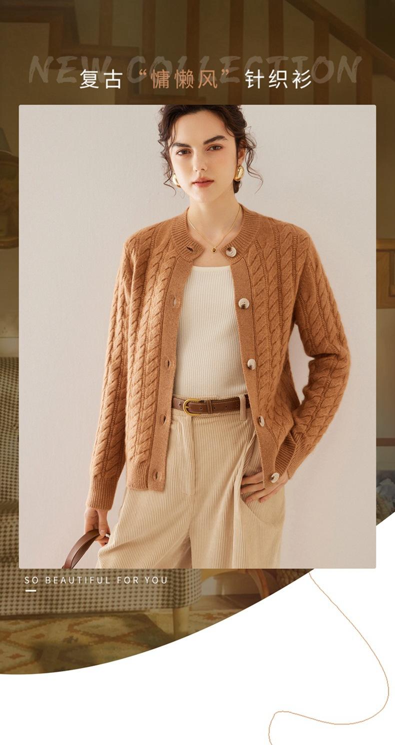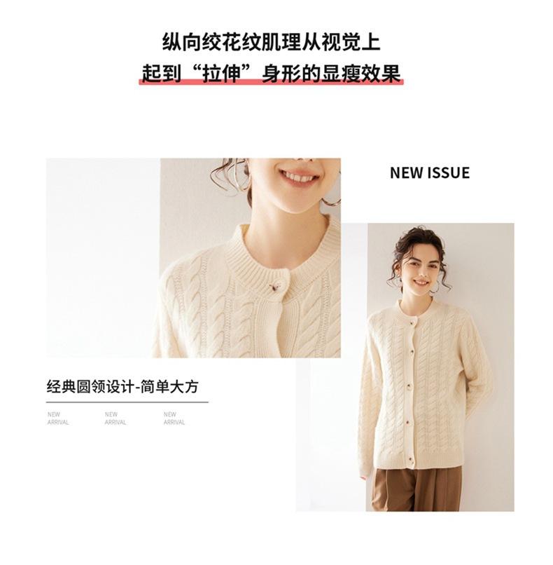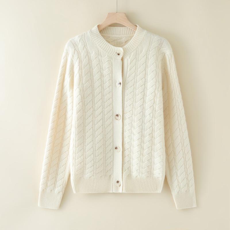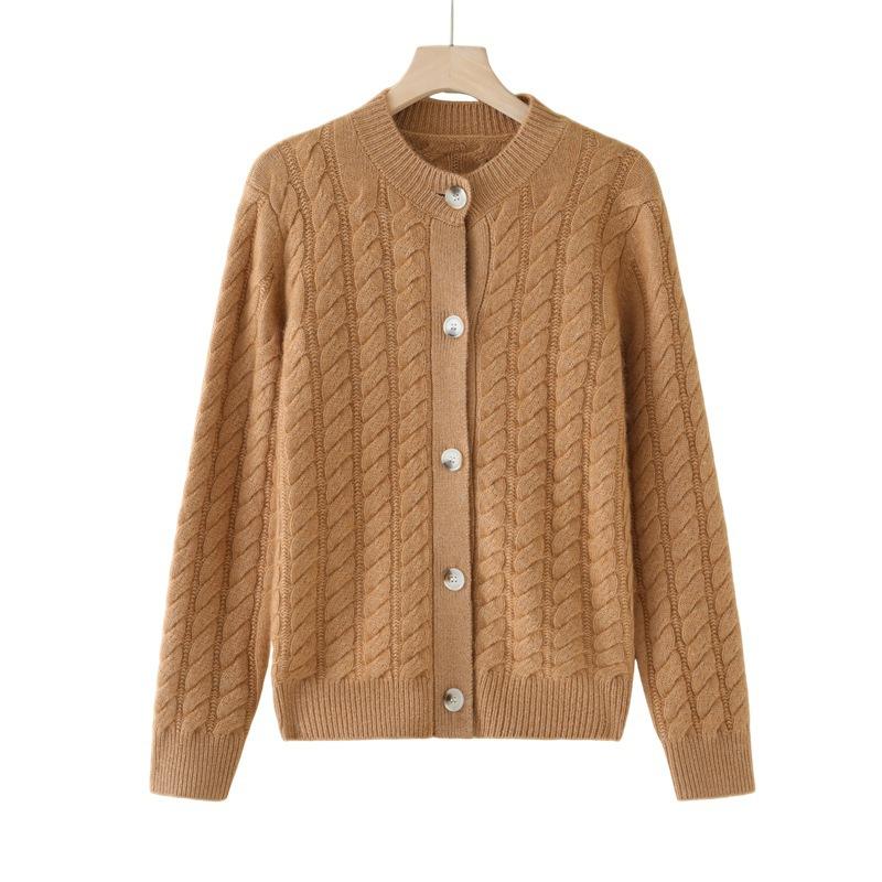 Suéter de cachemira de punto con cable grueso y cuello redondo para mujer, cárdigan de otoño e invierno con parte superior torcida, suéter torcido, prenda exterior de manga larga