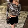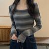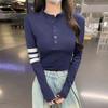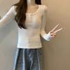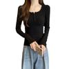 Cárdigan abotonado de diseño nuevo para mujer estilo coreano 2025, ajustado, de cuello redondo, camiseta ajustada de fondo, top ajustado de manga larga