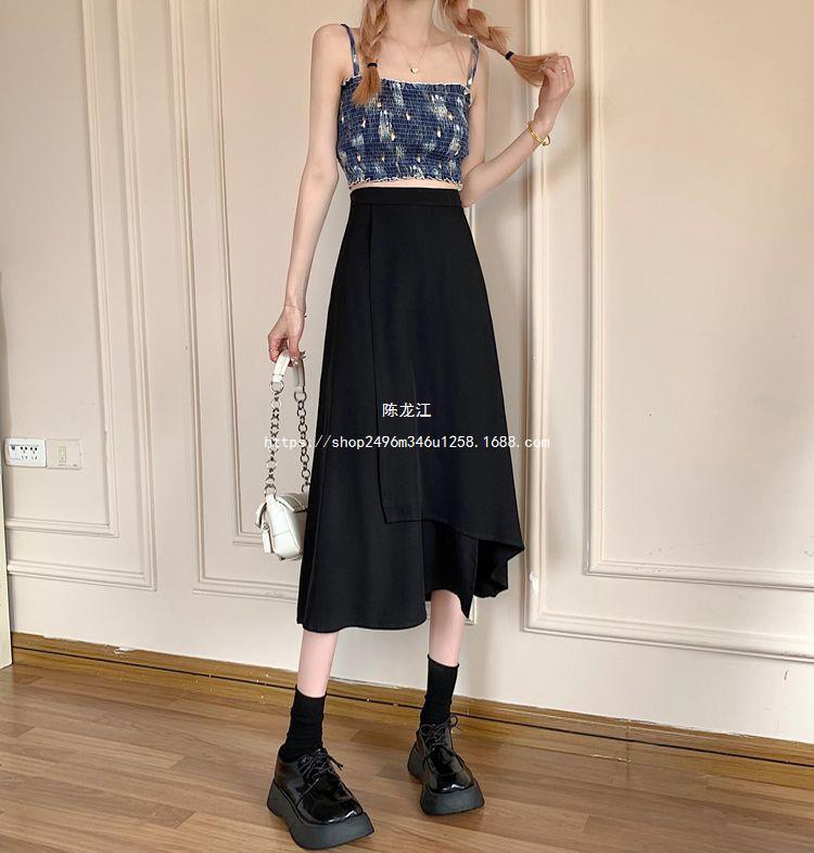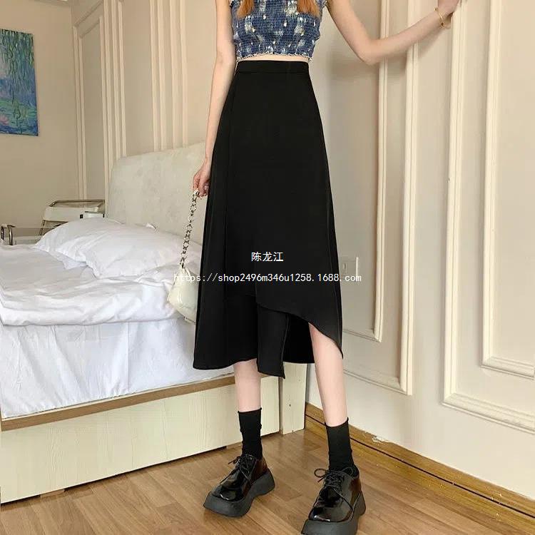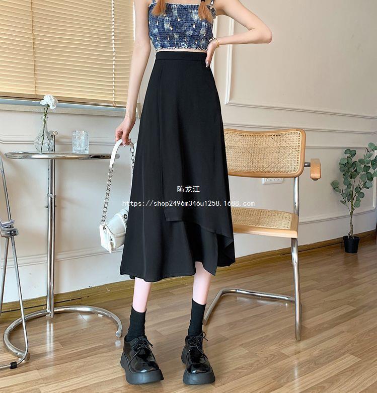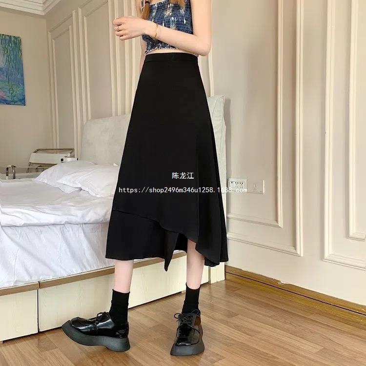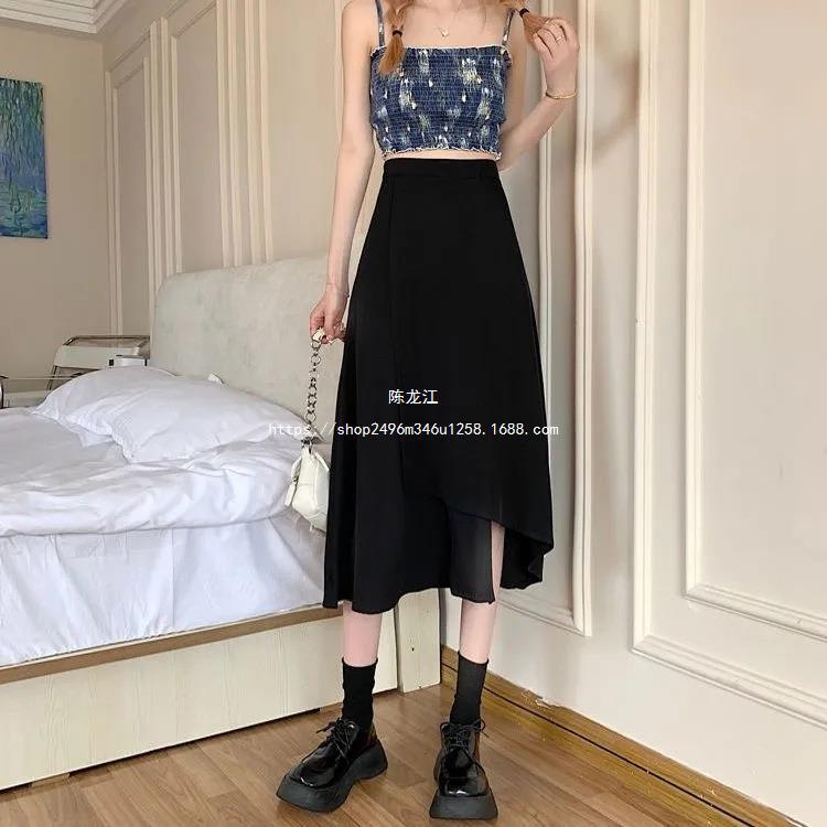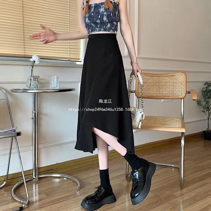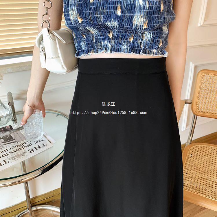 Falda adelgazante de verano de línea A, cintura alta, temporada de tallas grandes, nueva falda para chica gordita que combina con todo, falda negra de cadera, falda de poliéster de longitud media