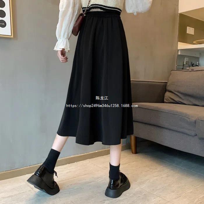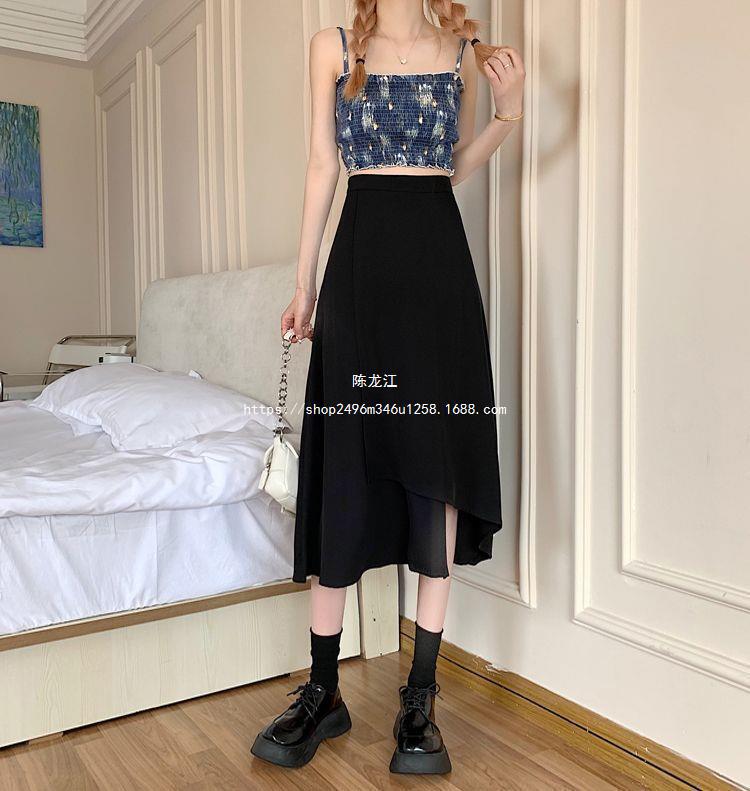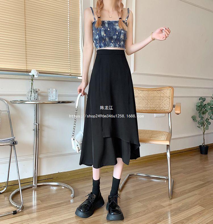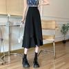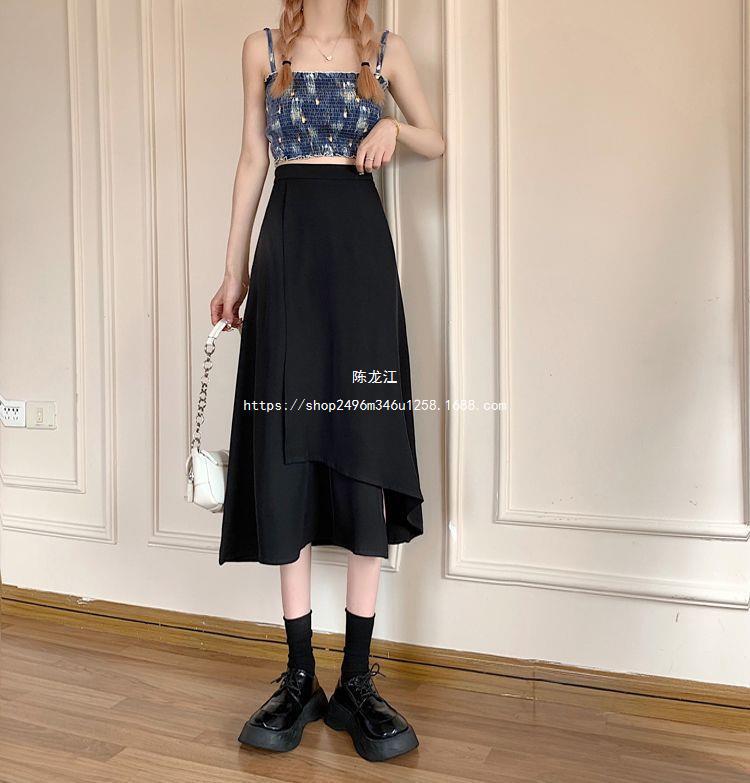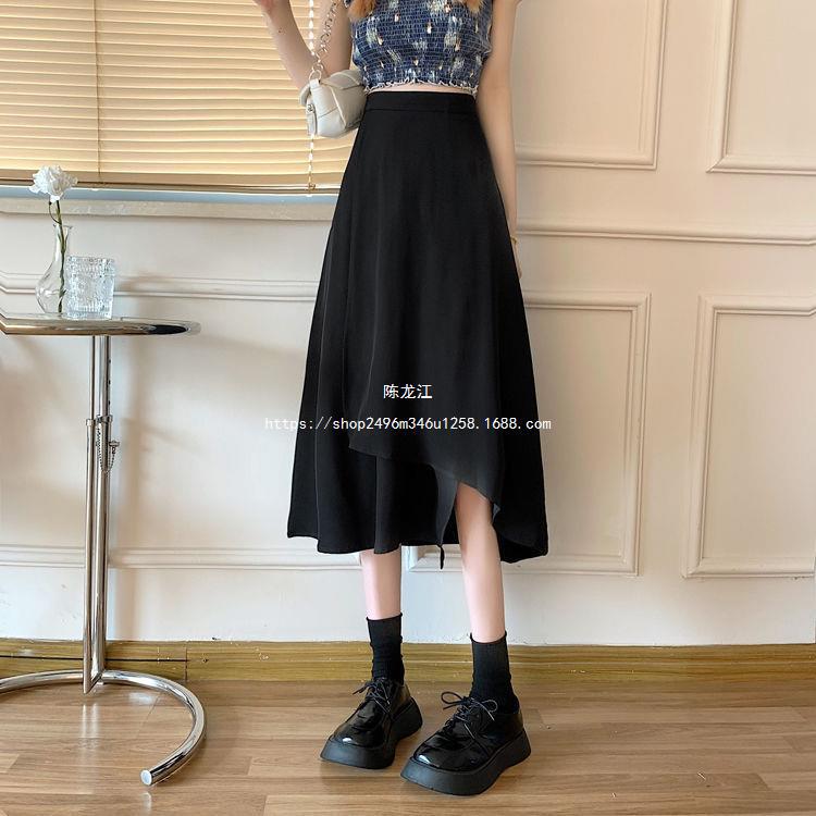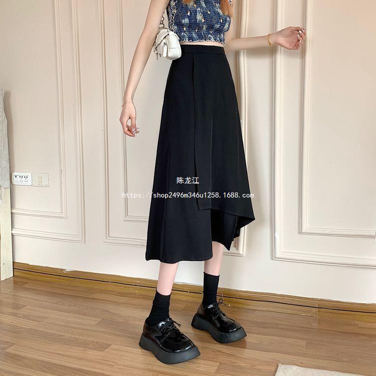 Falda adelgazante de verano de línea A, cintura alta, temporada de tallas grandes, nueva falda para chica gordita que combina con todo, falda negra de cadera, falda de poliéster de longitud media