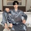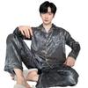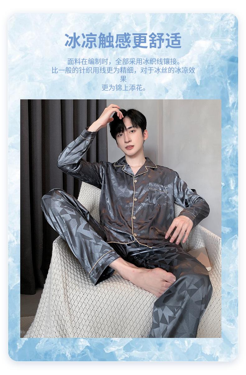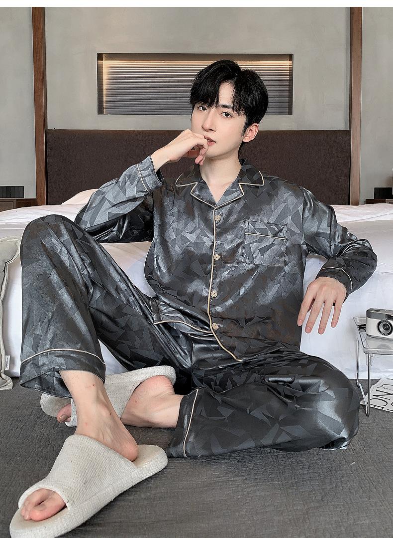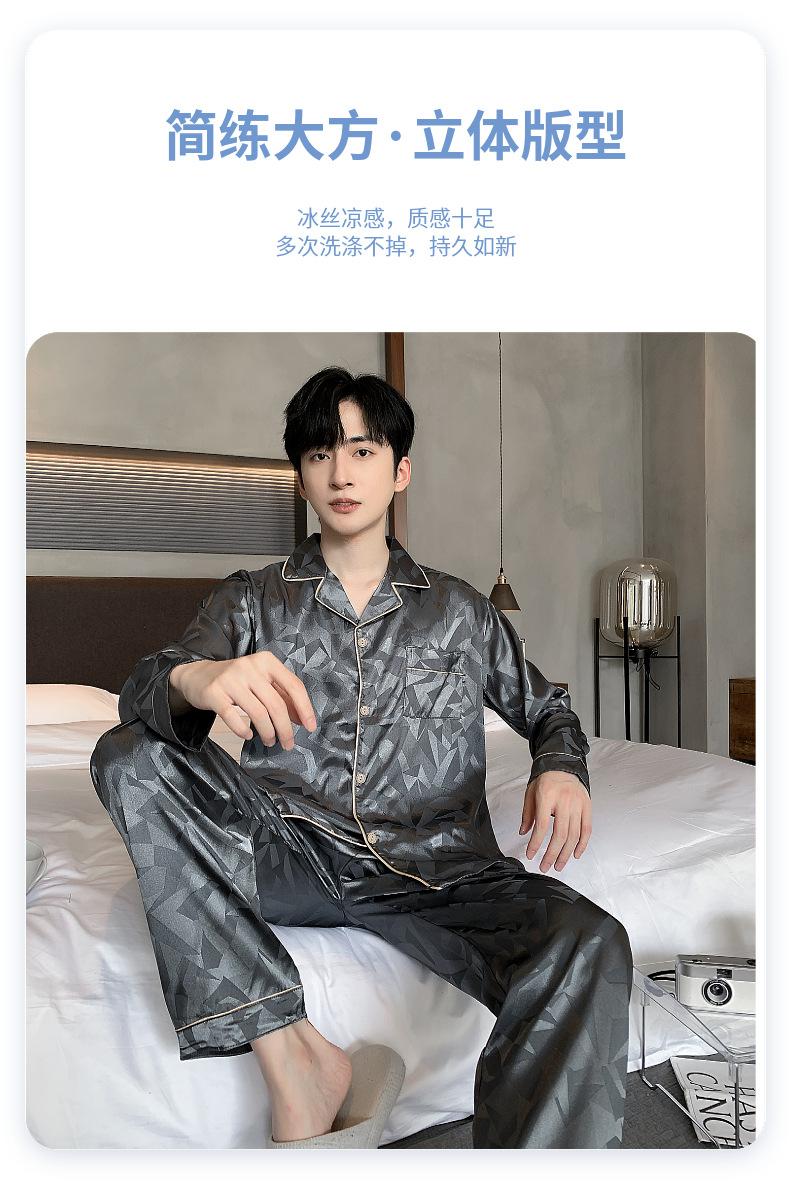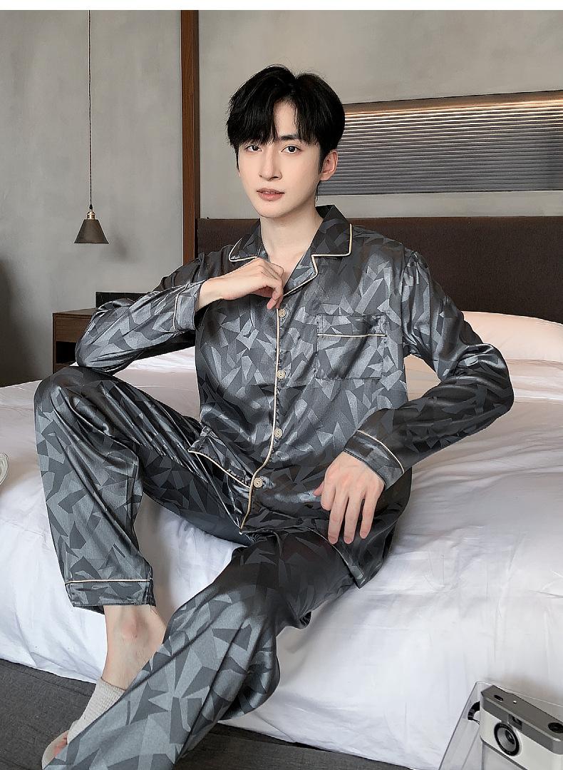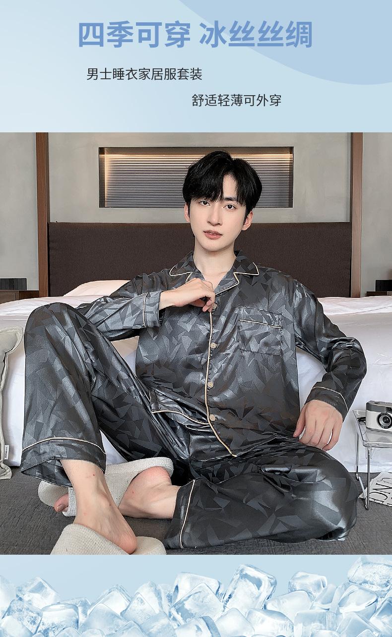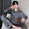 Pijamas para hombre Juvenil Primavera y Otoño Lujo Ligero Casual Talla Extra Seda de Hielo Fresco Jacquard Seda de Hielo Manga Larga Ropa para el Hogar