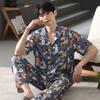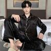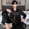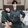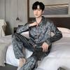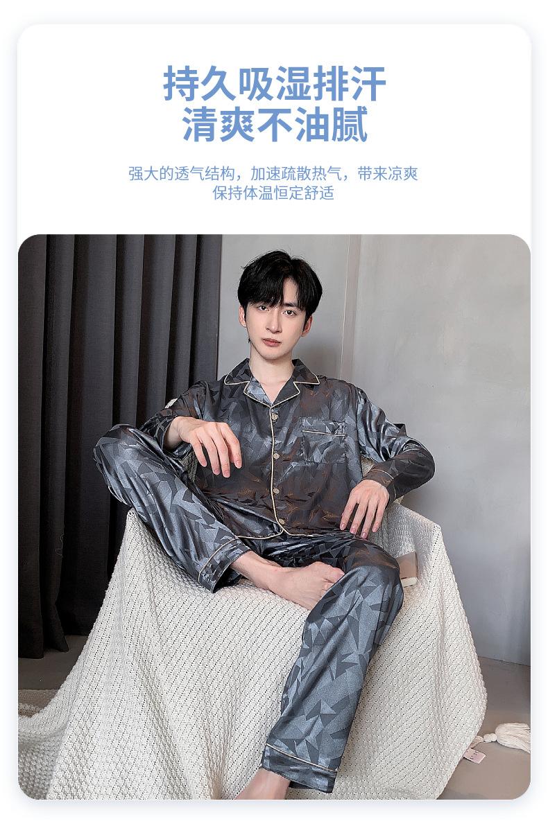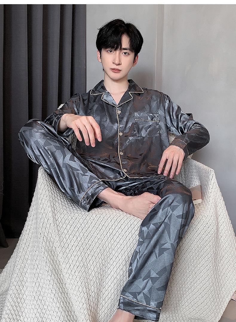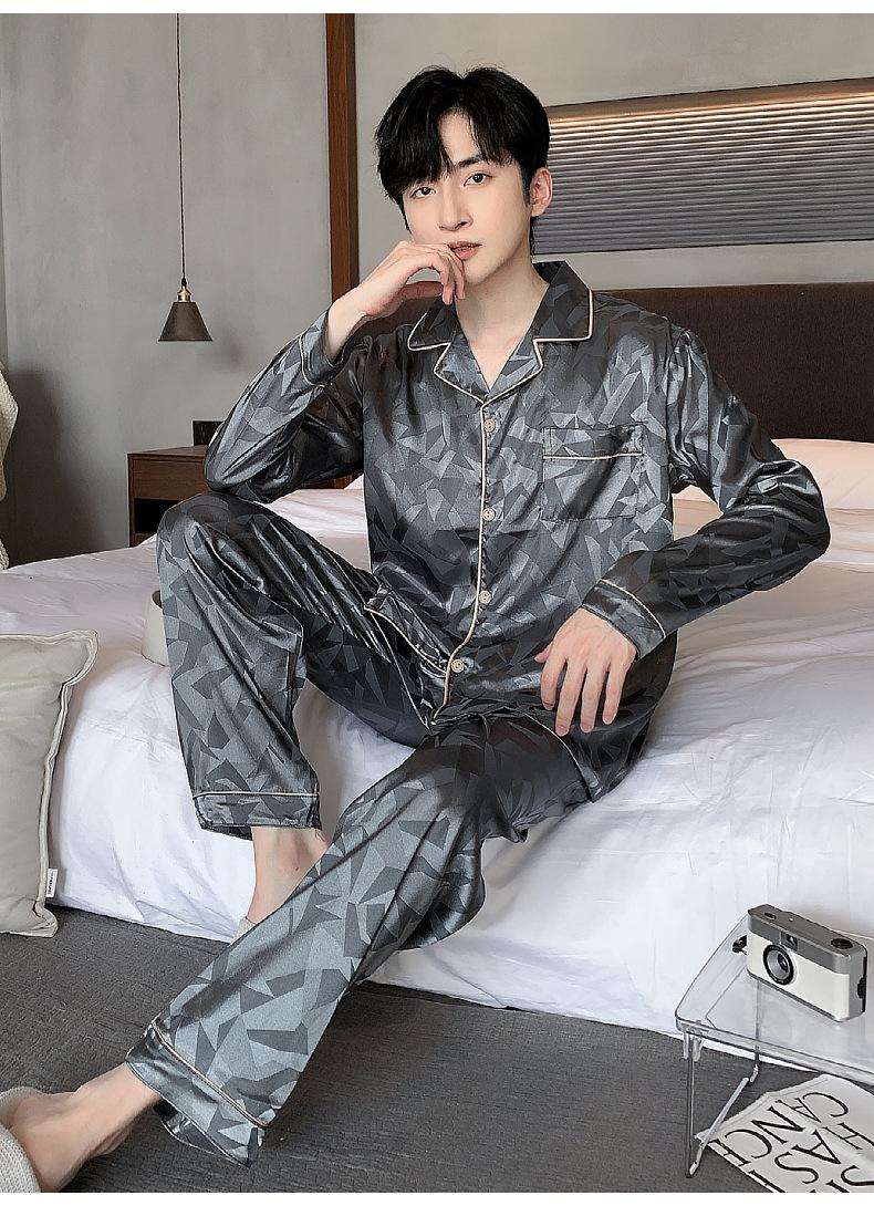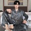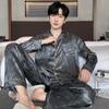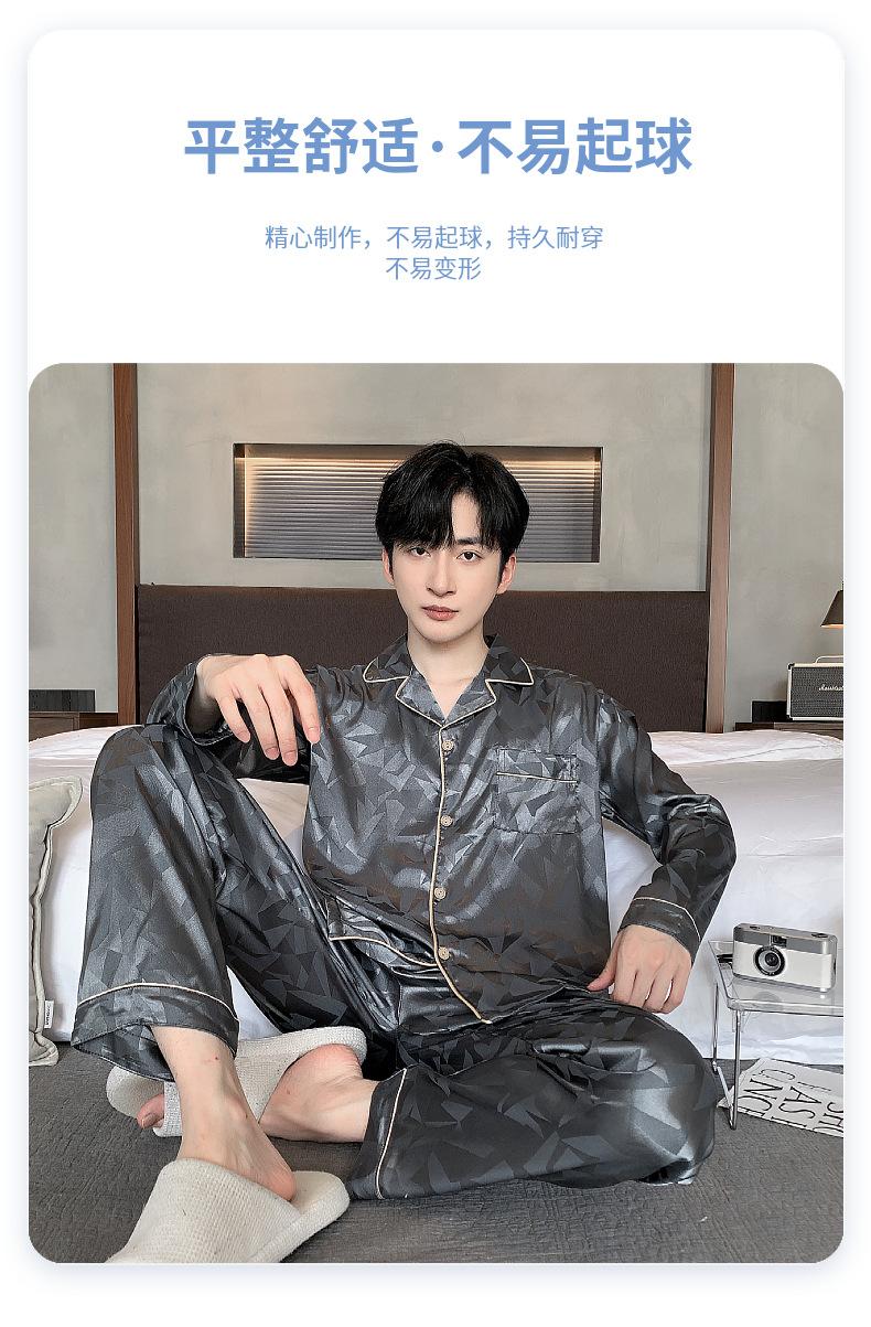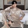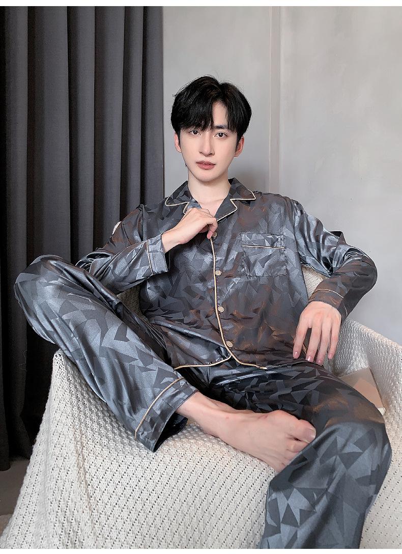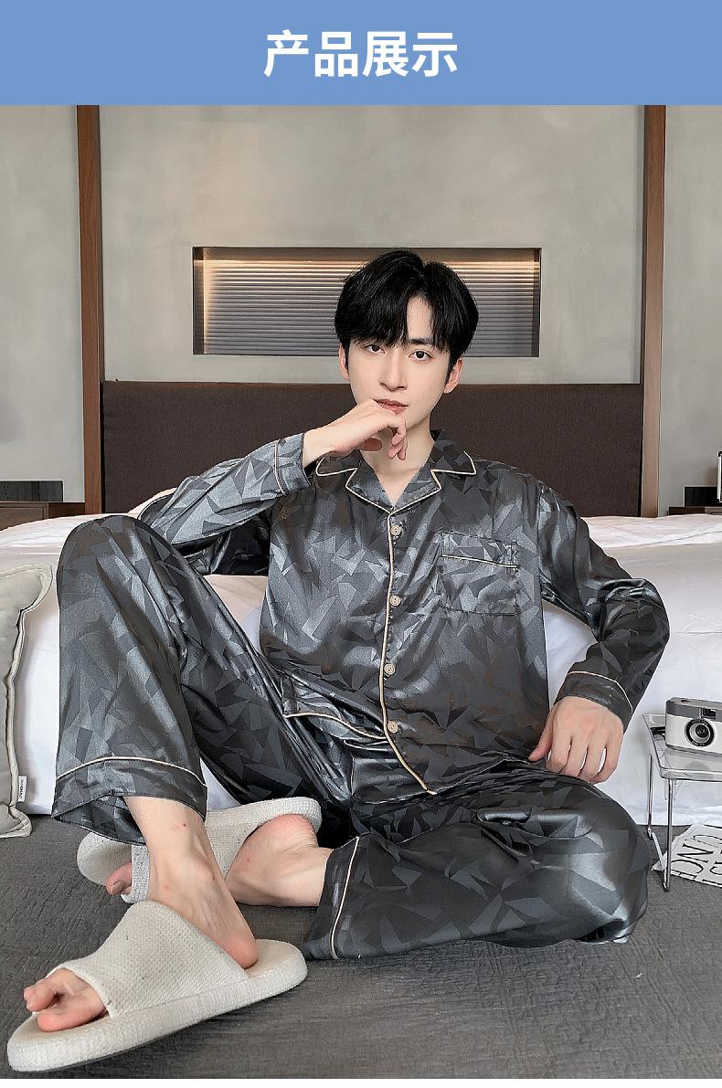 Pijamas para hombre Juvenil Primavera y Otoño Lujo Ligero Casual Talla Extra Seda de Hielo Fresco Jacquard Seda de Hielo Manga Larga Ropa para el Hogar