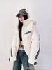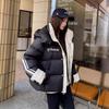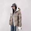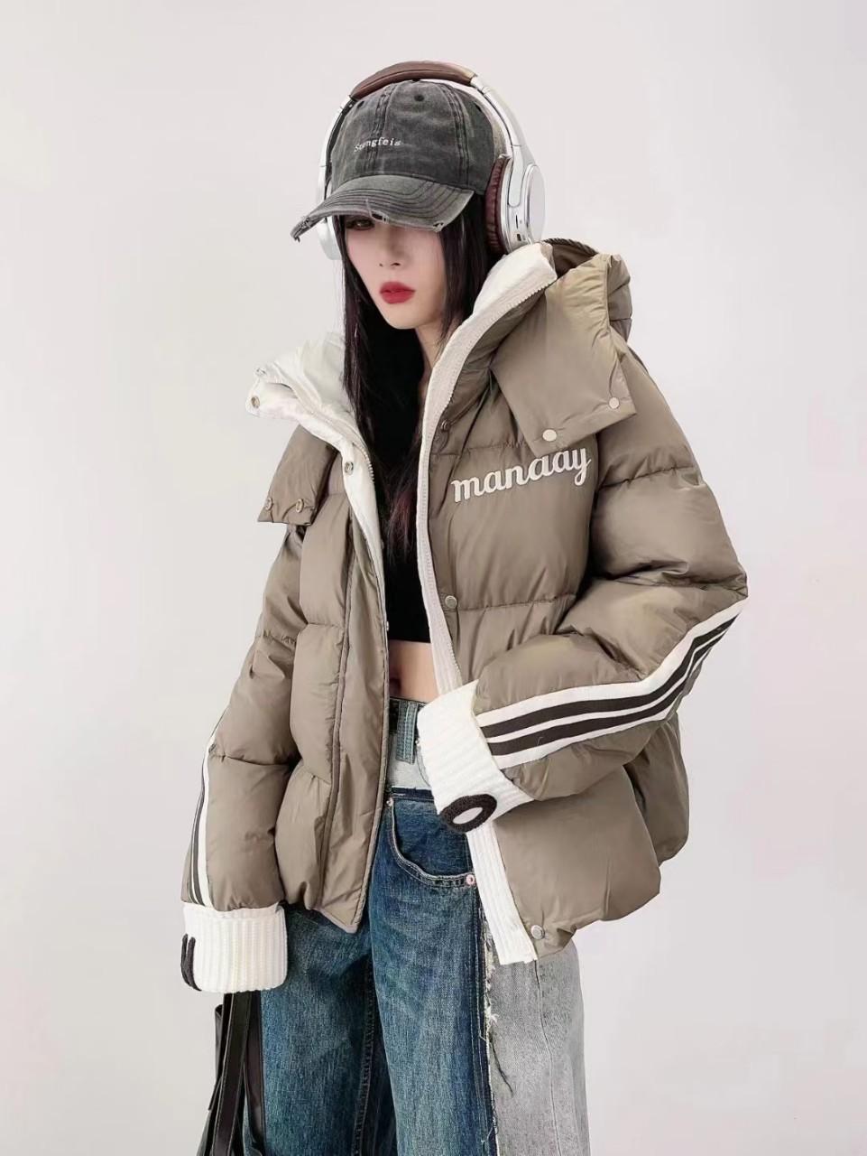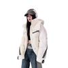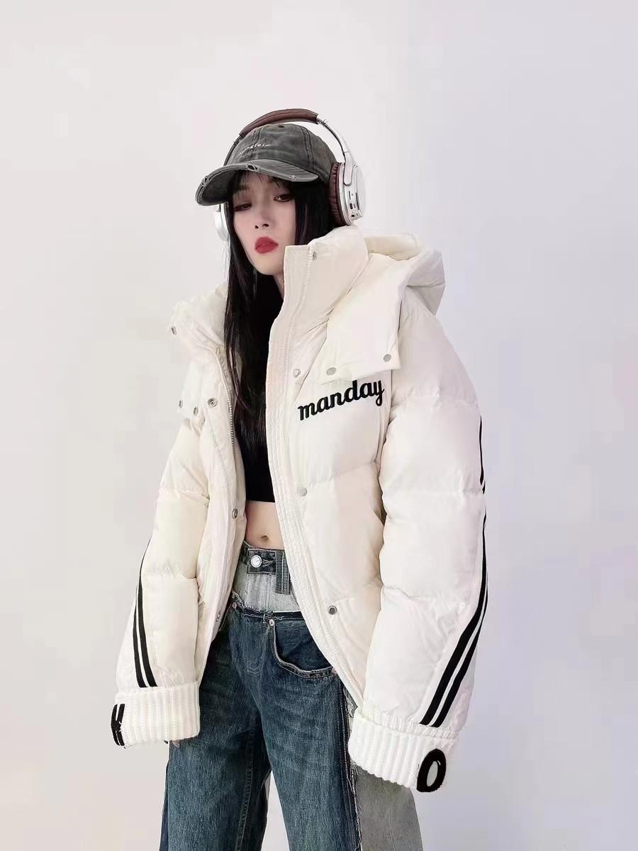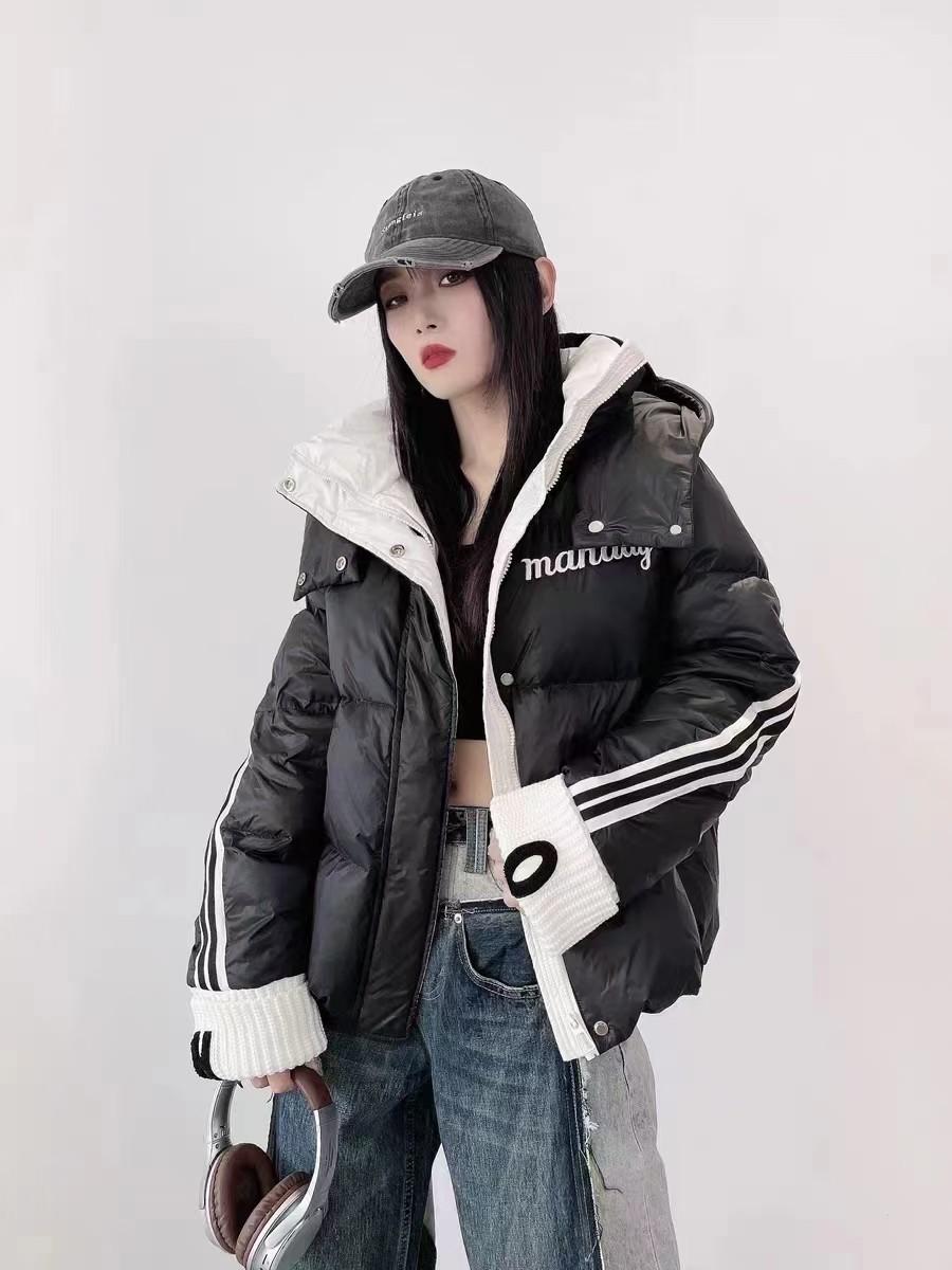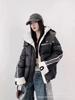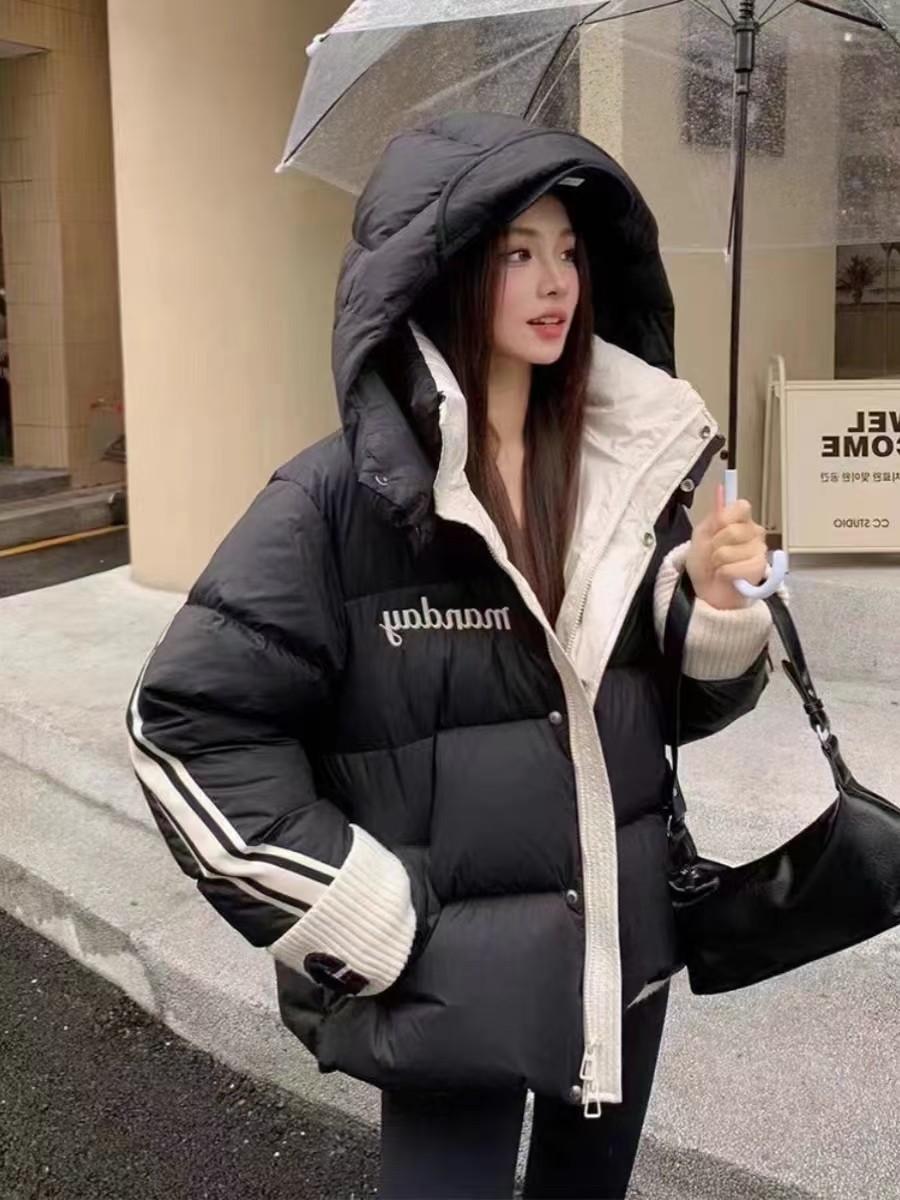 Moda europea color contraste tejido de punto costura chamarra de plumón para mujer invierno pequeña engrosada cálida plumón de pato blanco abrigo pan