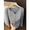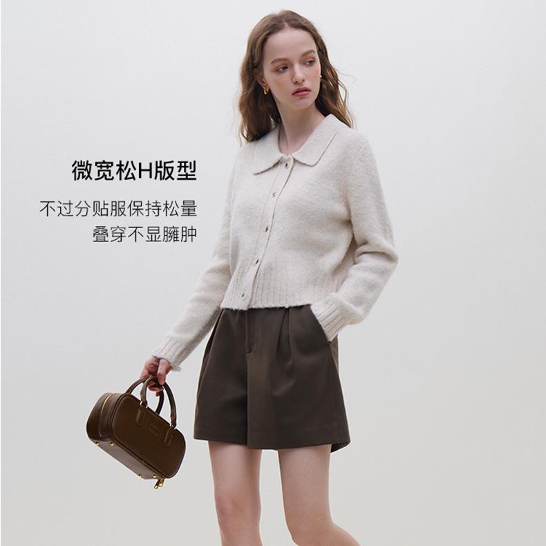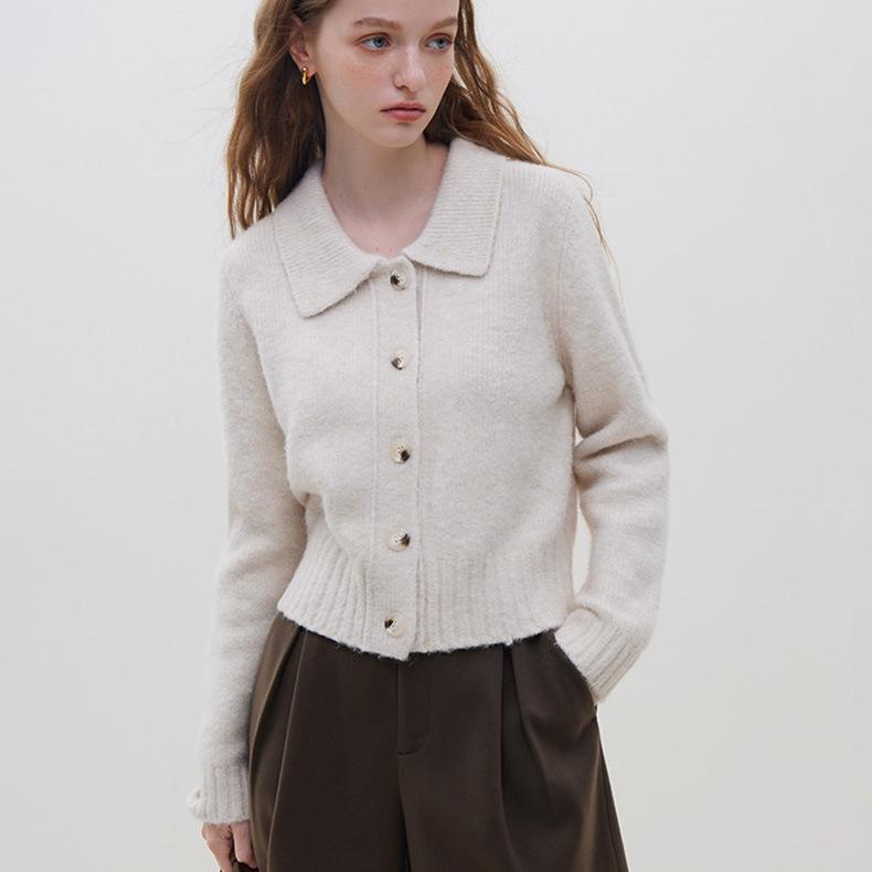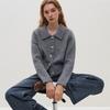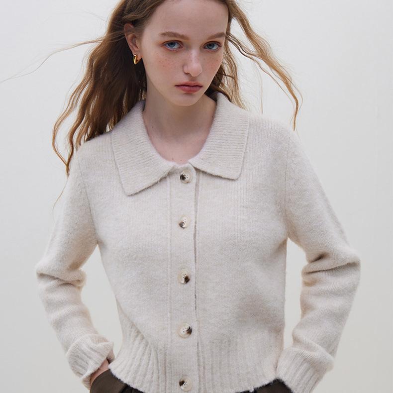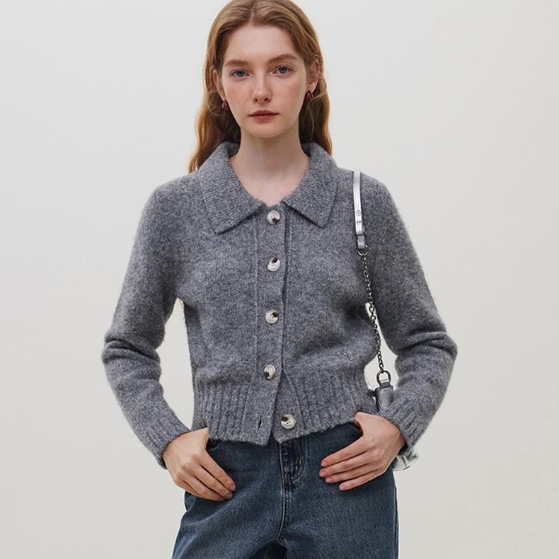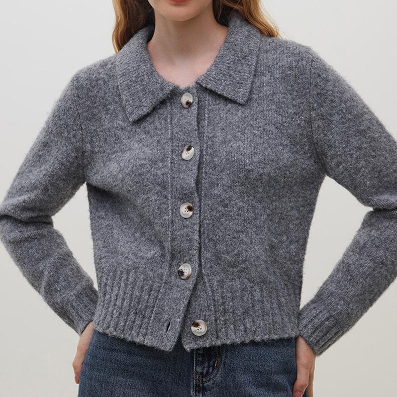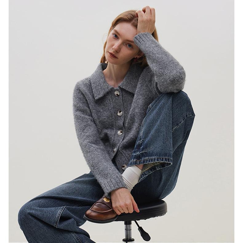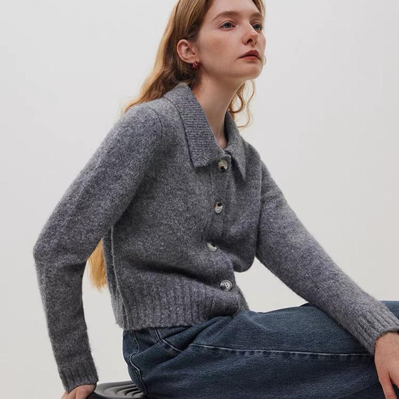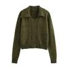 French POLO solapa cintura alta top cárdigan de punto de lana gruesa con solapa para mujer color sólido manga larga abrigo pequeño de alta calidad