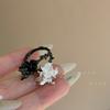 Dulce anillo apilado de doble capa para mujer, moda, personalidad, temperamento, piedra lunar ovalada blanca, anillo abierto, anillo para el dedo índice, moda