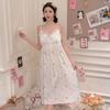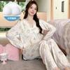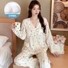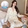 Pijamas de Mujer Primavera y Otoño Nubes Dulce Algodón Estilo Princesa Cuello en V Encaje Manga Larga Pantalones con Almohadilla en el Pecho Delgados Ropa para el Hogar
