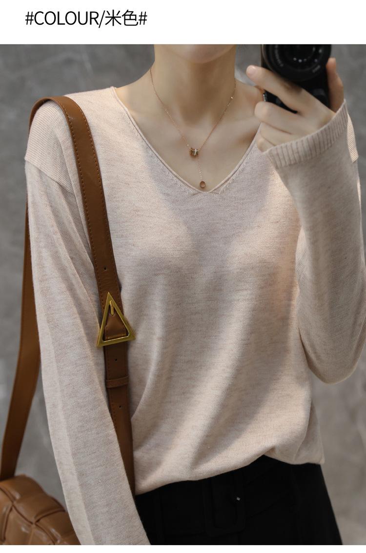 | Suéter de lana 100% pura para mujer, cuello en V, otoño e invierno, nuevo suéter holgado y perezoso 2024, suéter de punto sin costuras, camisa interior inferior | ¥58 |