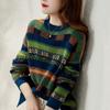 | Suéter de punto de color contrastante a rayas para mujer, mangas largas, cuello redondo, pulóver, corte entallado, suéter de lana sintética, prenda interior fina, top cálido | ¥45 |