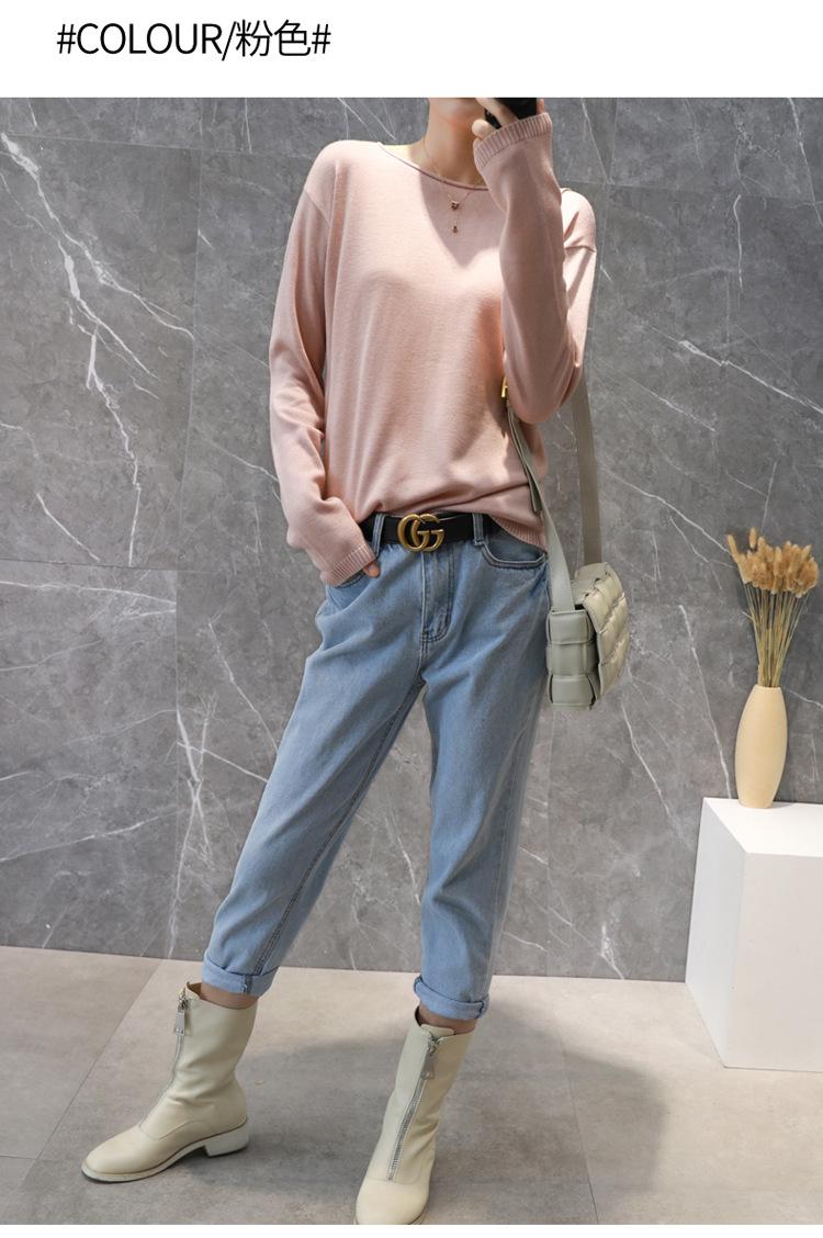 | Suéter de lana merino de nuevo estilo para otoño e invierno, suéter holgado de cuello redondo de manga larga de punto corto para mujer, chaqueta superior | ¥49 |