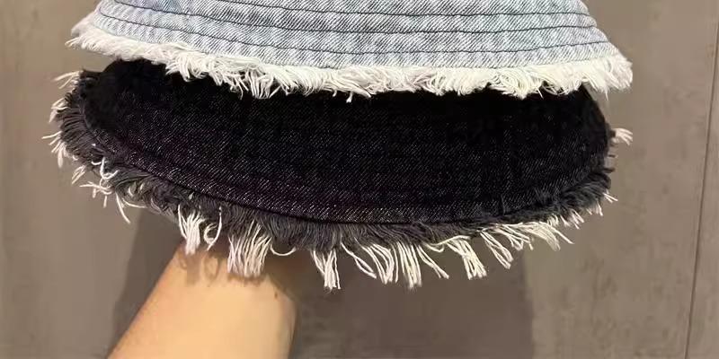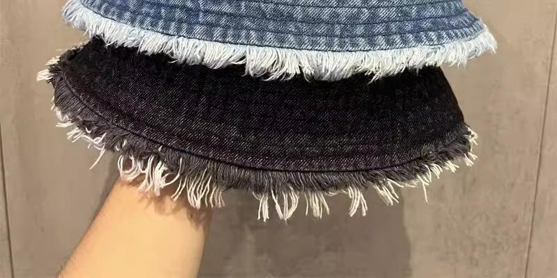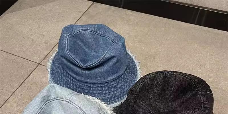 Solid color rough Denim basin hat-black, Solid color rough Denim basin hat-light blue, Solid color rough Denim...