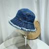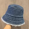 Sombrero de pescador de mezclilla estilo japonés Sombrero de cuenca versátil de borde deshilachado estilo primavera y otoño para mujer Sombrero de sol artístico para exteriores rojo de internet