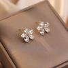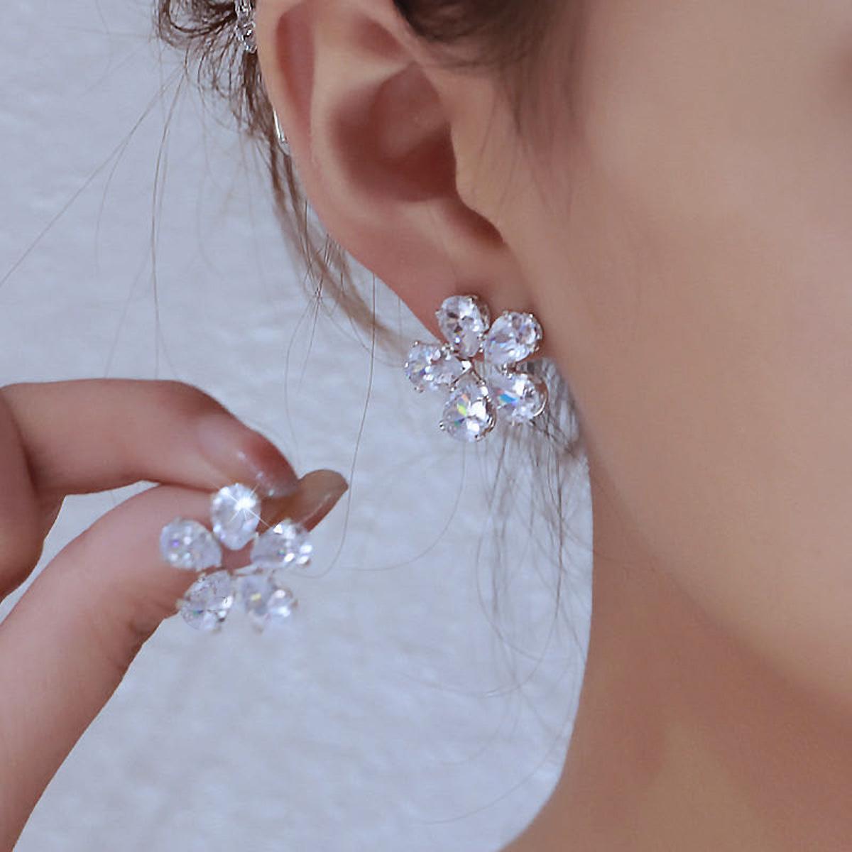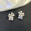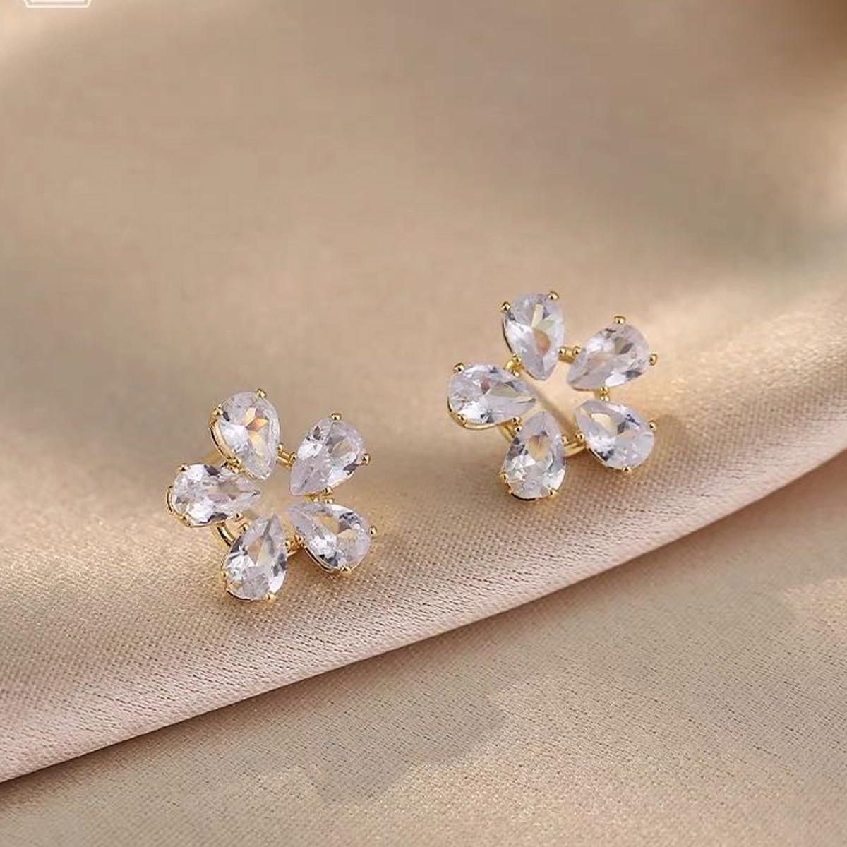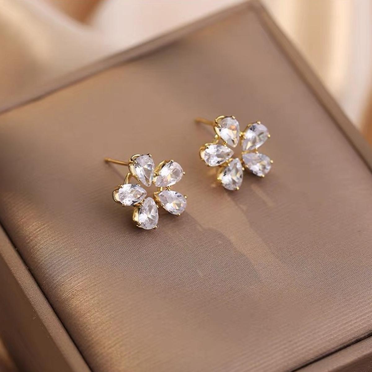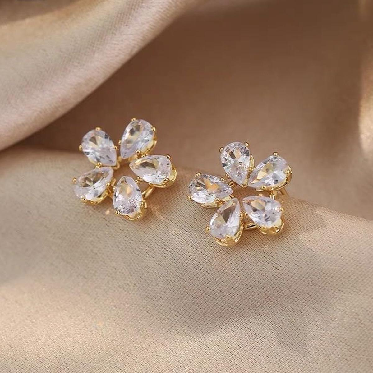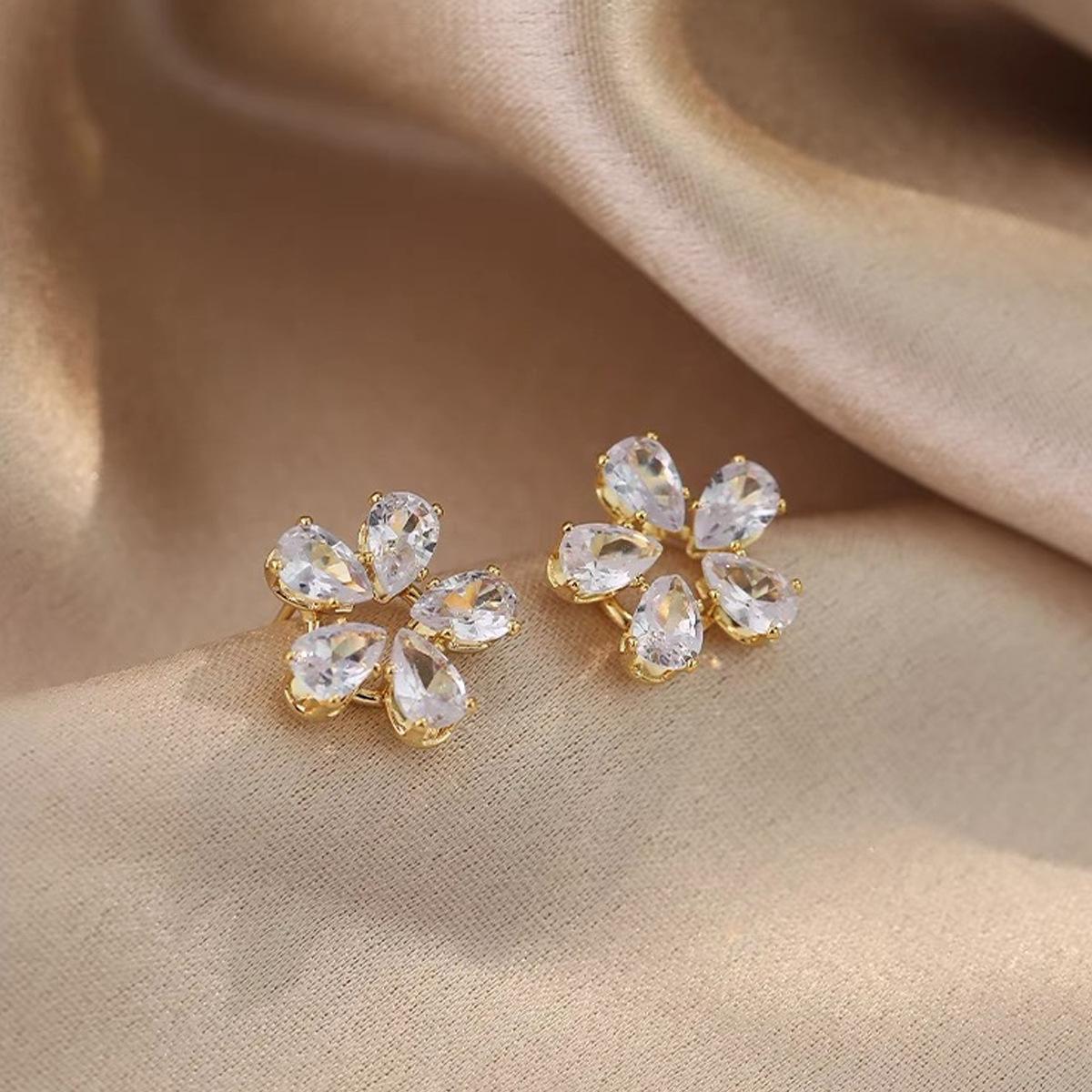 Pendientes de circonita con forma floral de estilo coreano, frescos y dulces, chapados en oro, modernos y versátiles, de alta gama.