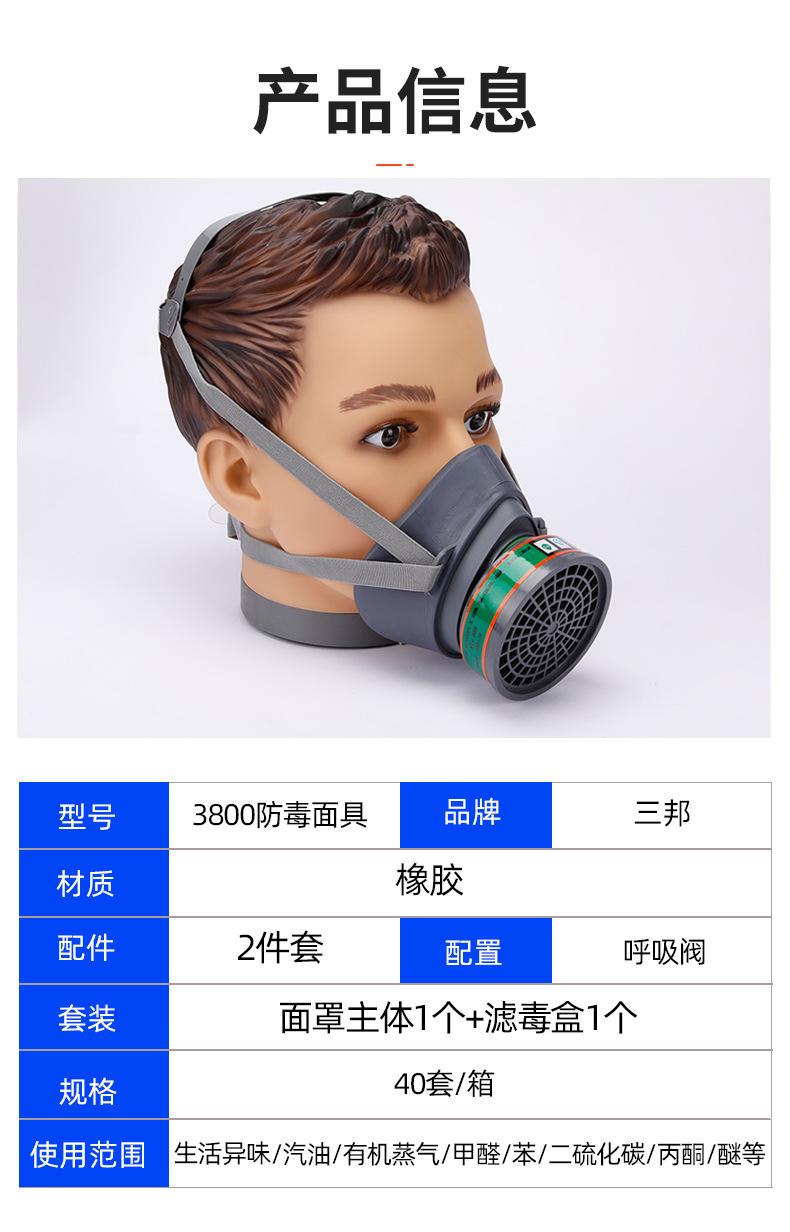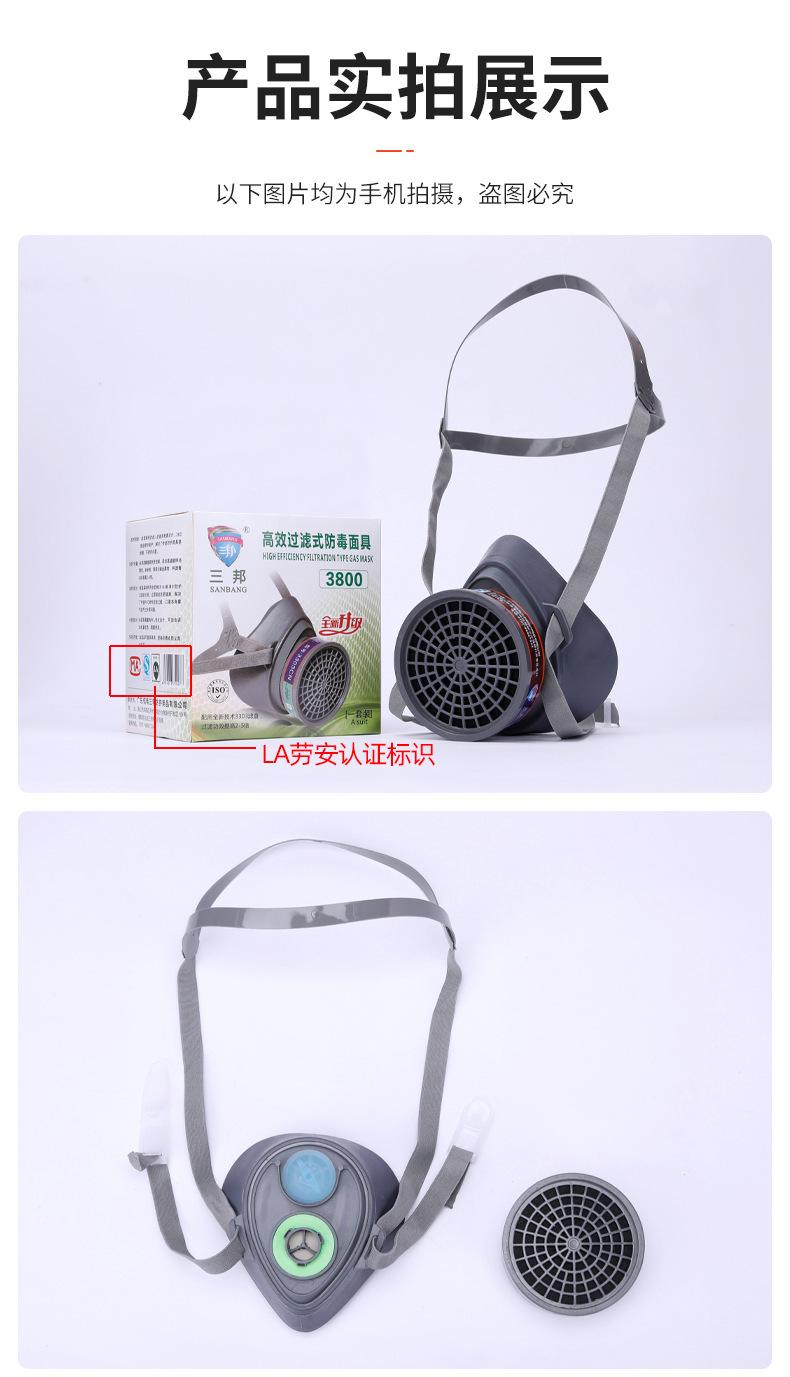 Mascarilla Antigás Sanbang 3800 Respirador Químico de Goma Máscara Protectora Anti-Vapor Orgánico Anti-Formaldehído Pesticida Anti-Humo