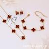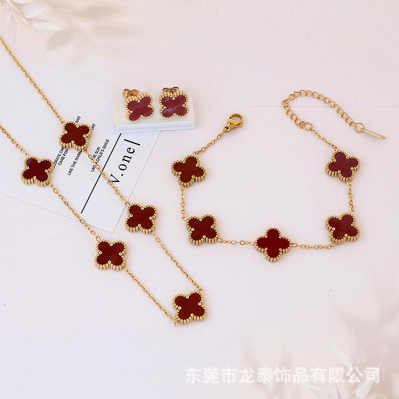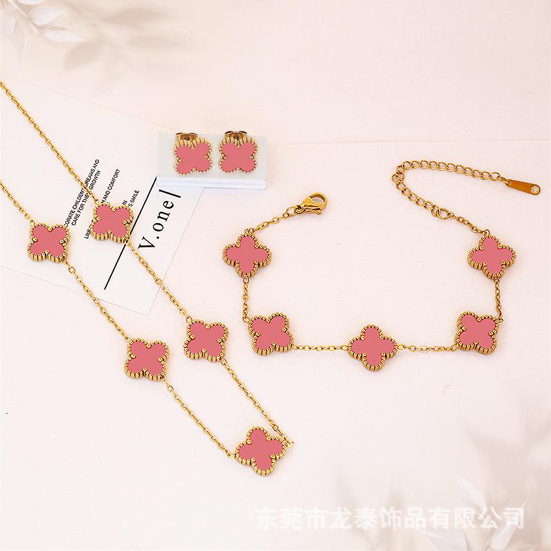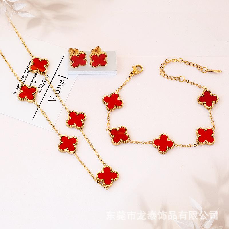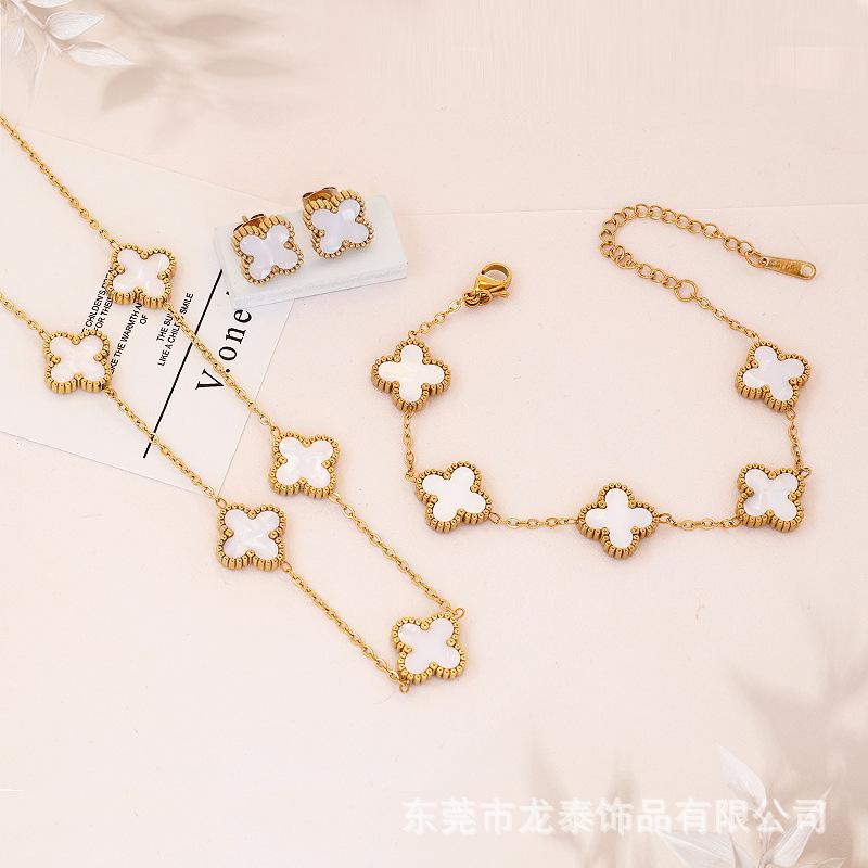 Popular Conjunto de Tres Piezas de Joyería de Trébol de Cuatro Hojas Transfronterizo Versátil Aretes de Clavícula de Cinco Flores de la Suerte