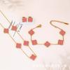 Golden double-sided five-flower necklace bracelet earrings (red shellfish)