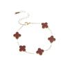 Golden double-sided five-flower necklace bracelet earrings (wine red shell)