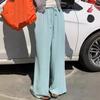 Pantalones anchos y frescos para mujer, novedad de verano 2024, con protección solar, finos, sueltos, de cintura alta, drapeados, rectos, informales, holgados.