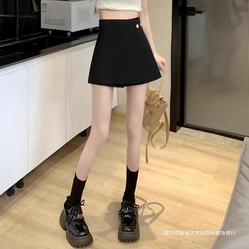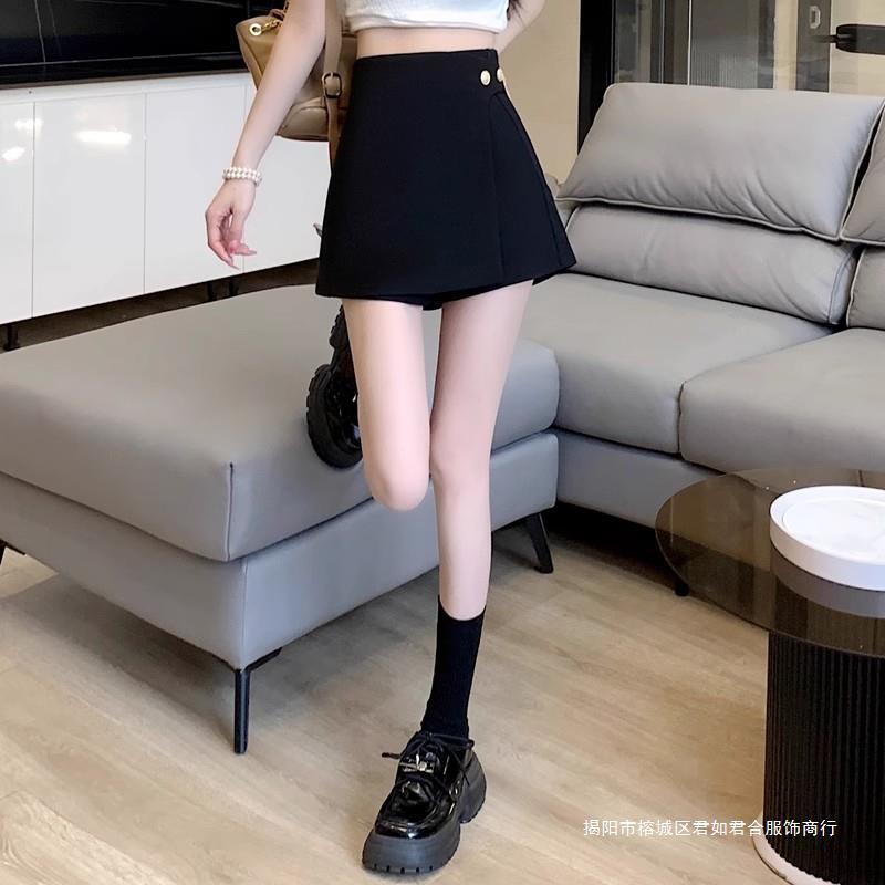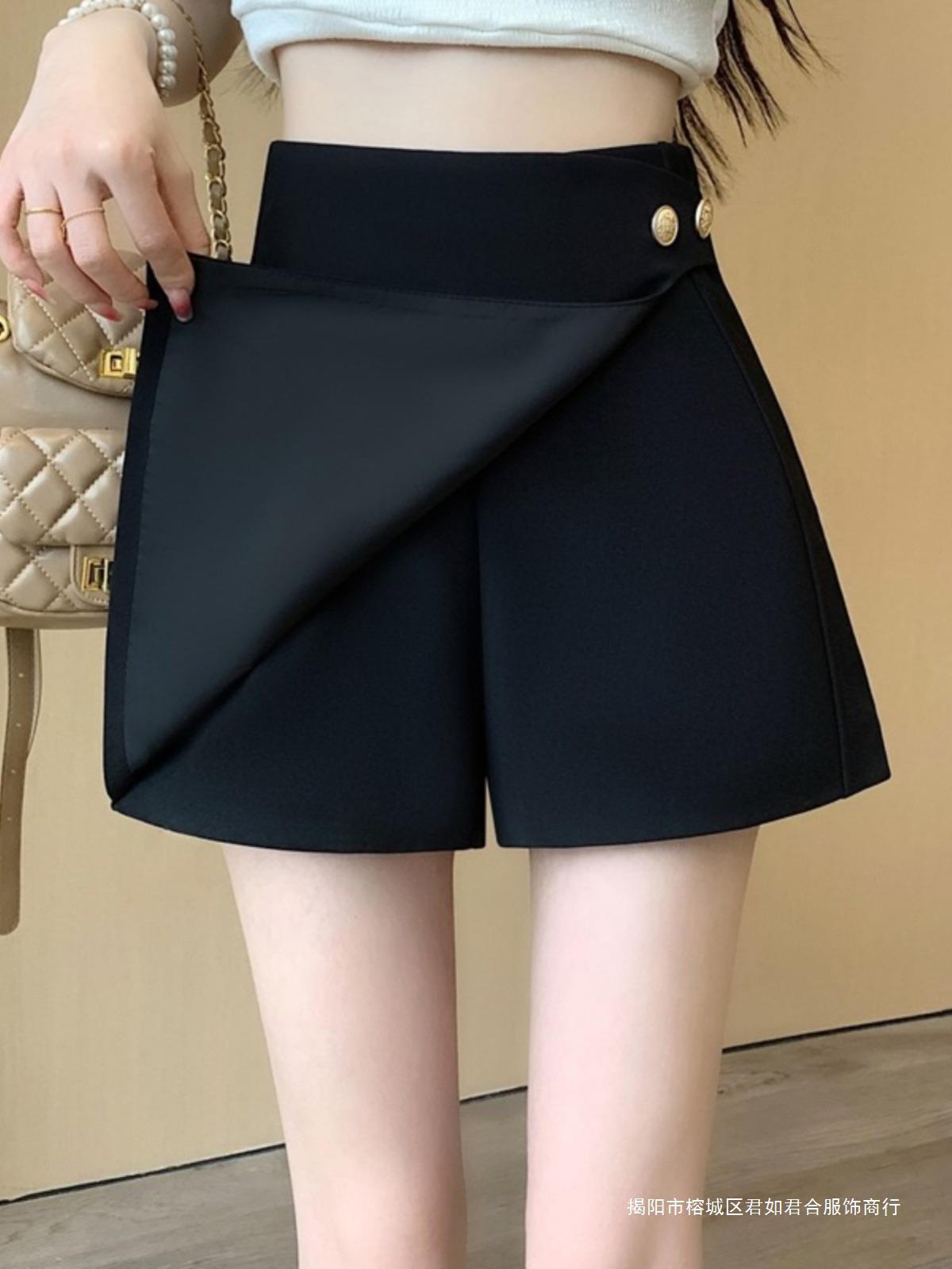 Pantalones cortos de pierna ancha irregulares para mujer, primavera 2024, nuevos pantalones adelgazantes de cintura alta, casuales, a la moda, combinables, de corte A.