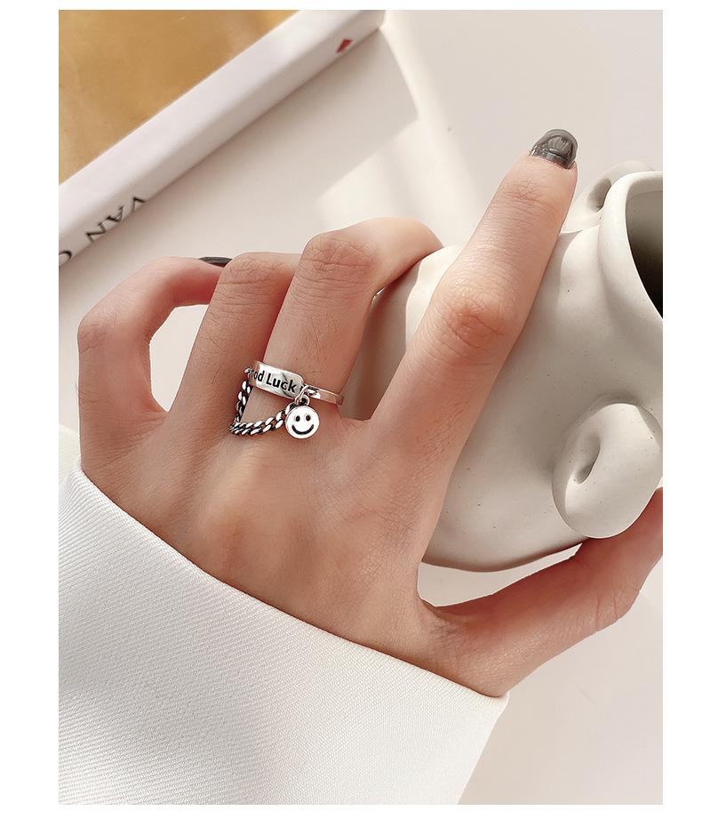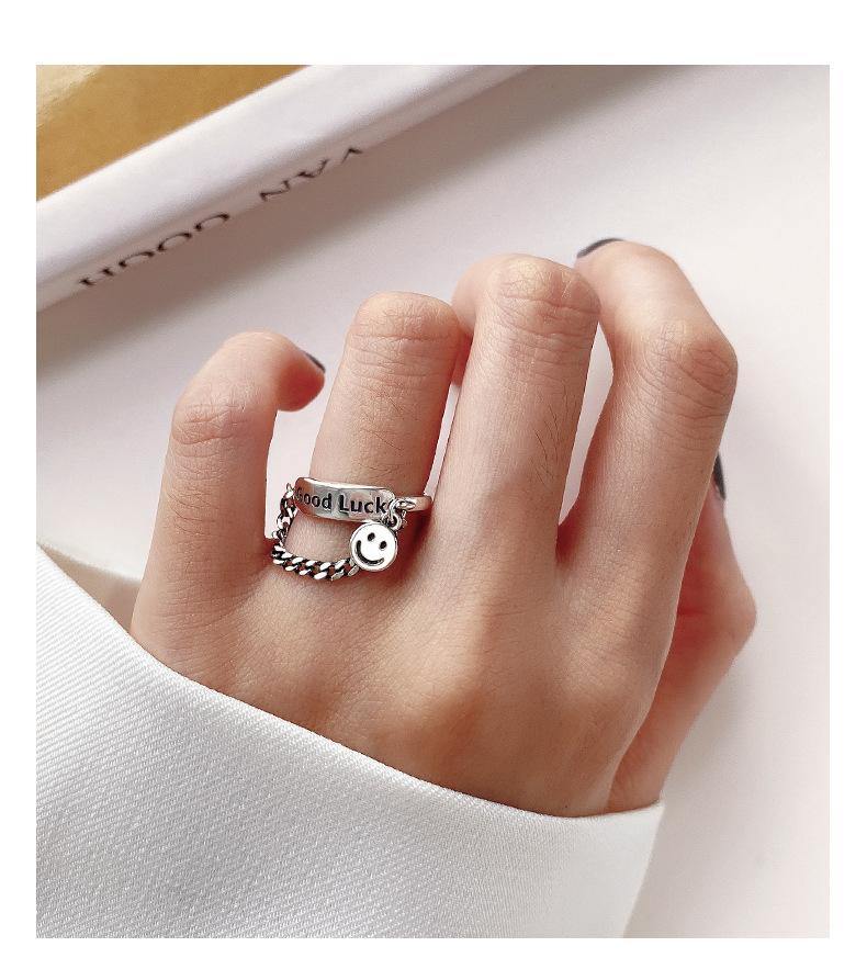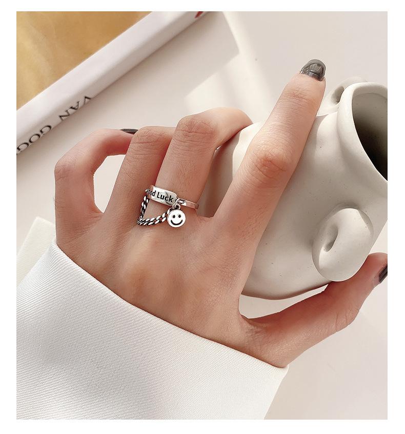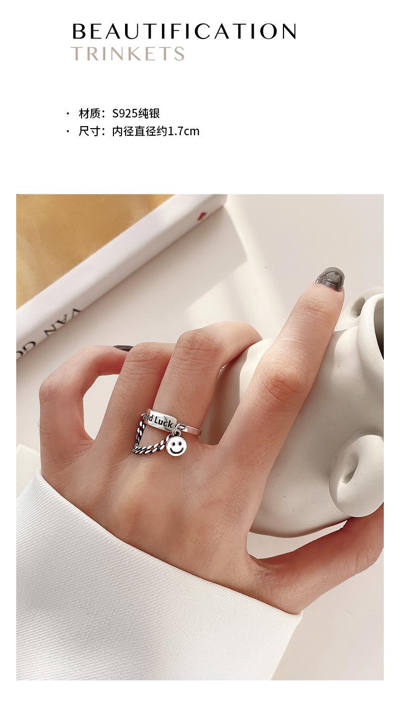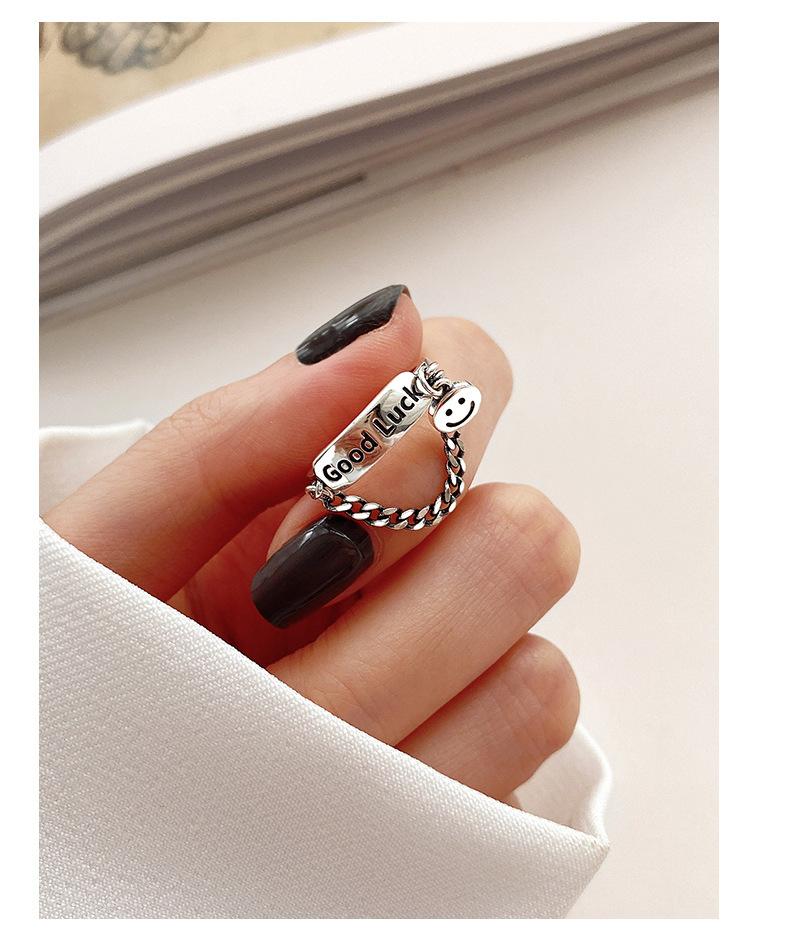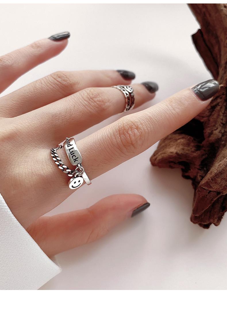 Estilo K de Anillo Colgante Personalizado Chapado en Plata S925 para Mujer Moda Retro Letra Buena Suerte Anillo Abierto para Dedo Índice
