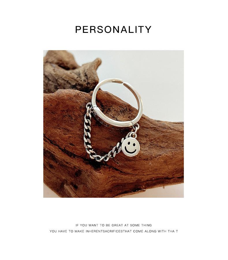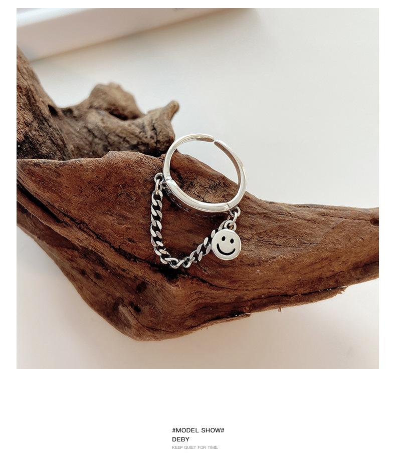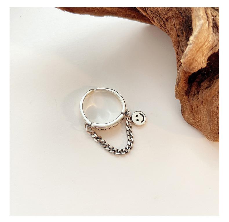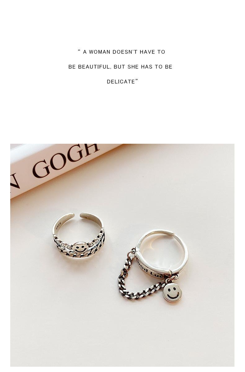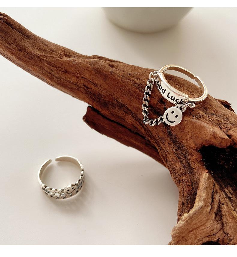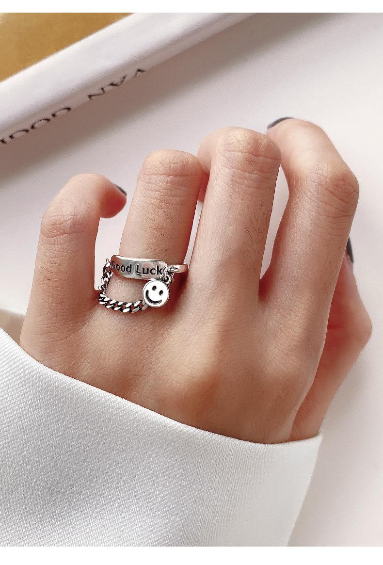 Estilo K de Anillo Colgante Personalizado Chapado en Plata S925 para Mujer Moda Retro Letra Buena Suerte Anillo Abierto para Dedo Índice