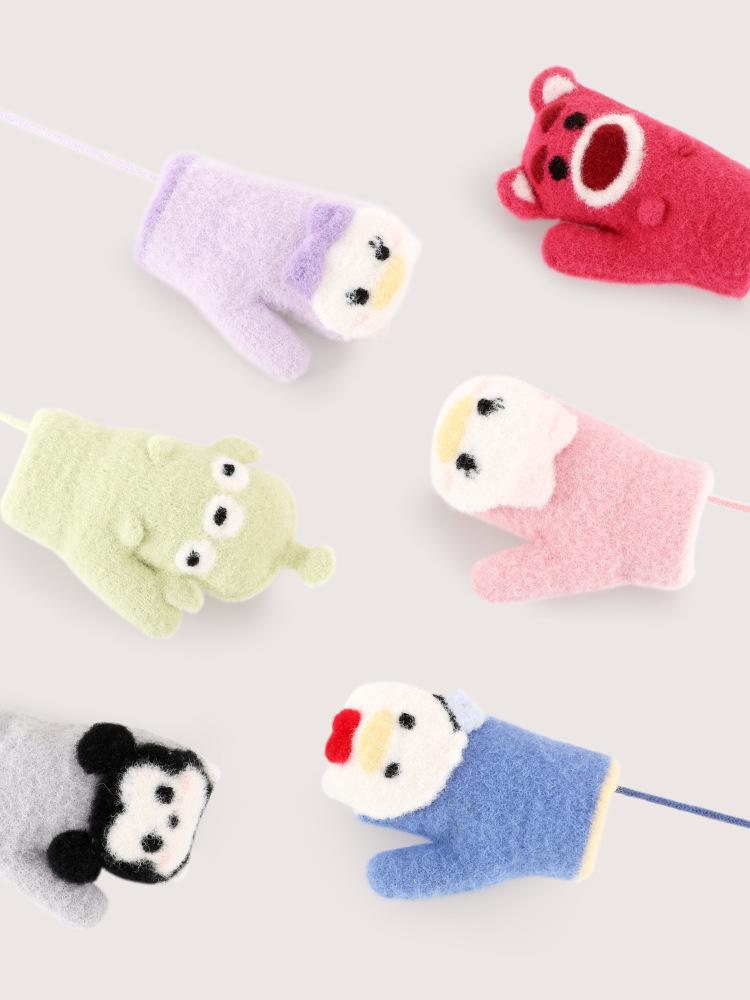 Guantes para niños Otoño e Invierno Cálidos Guantes de Lana de Punto para Niños Dedos de Dibujos Animados Lindos para Niños Niñas con Forro Polar