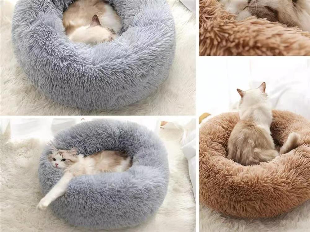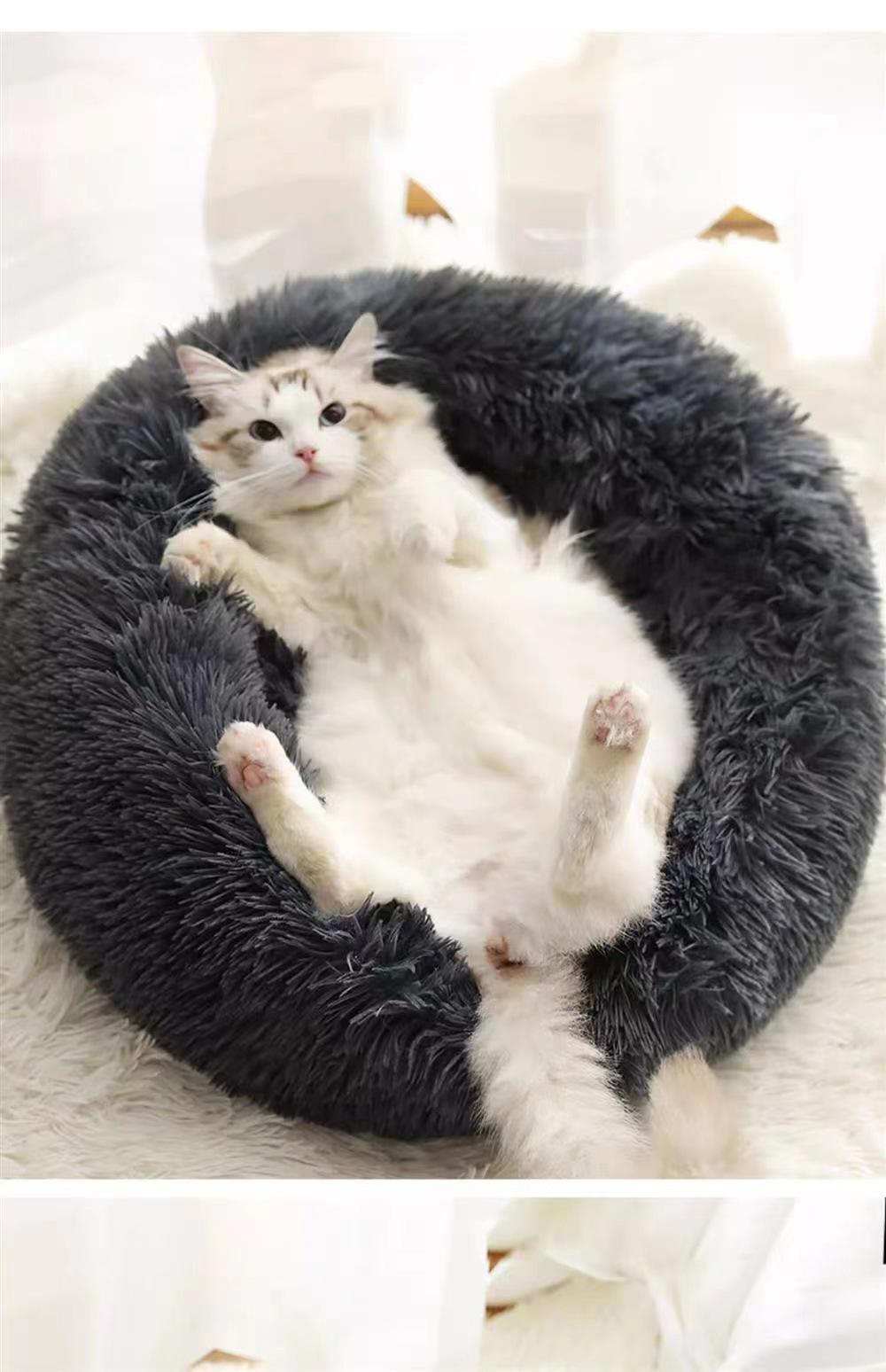 Caseta para mascotas, nido para gatos, invierno cálido, sueño profundo, felpa redonda, red roja, nido para gatos, tapete para gatos, suministros al por mayor
