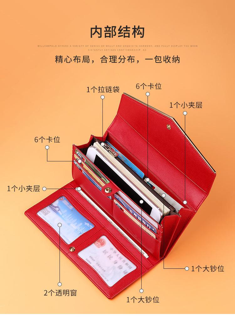 Cartera de mujer de moda Emperor Paul 2023, cartera larga de cuero genuino para mujer, cartera fina de productos genuinos para mujer, venta al por mayor