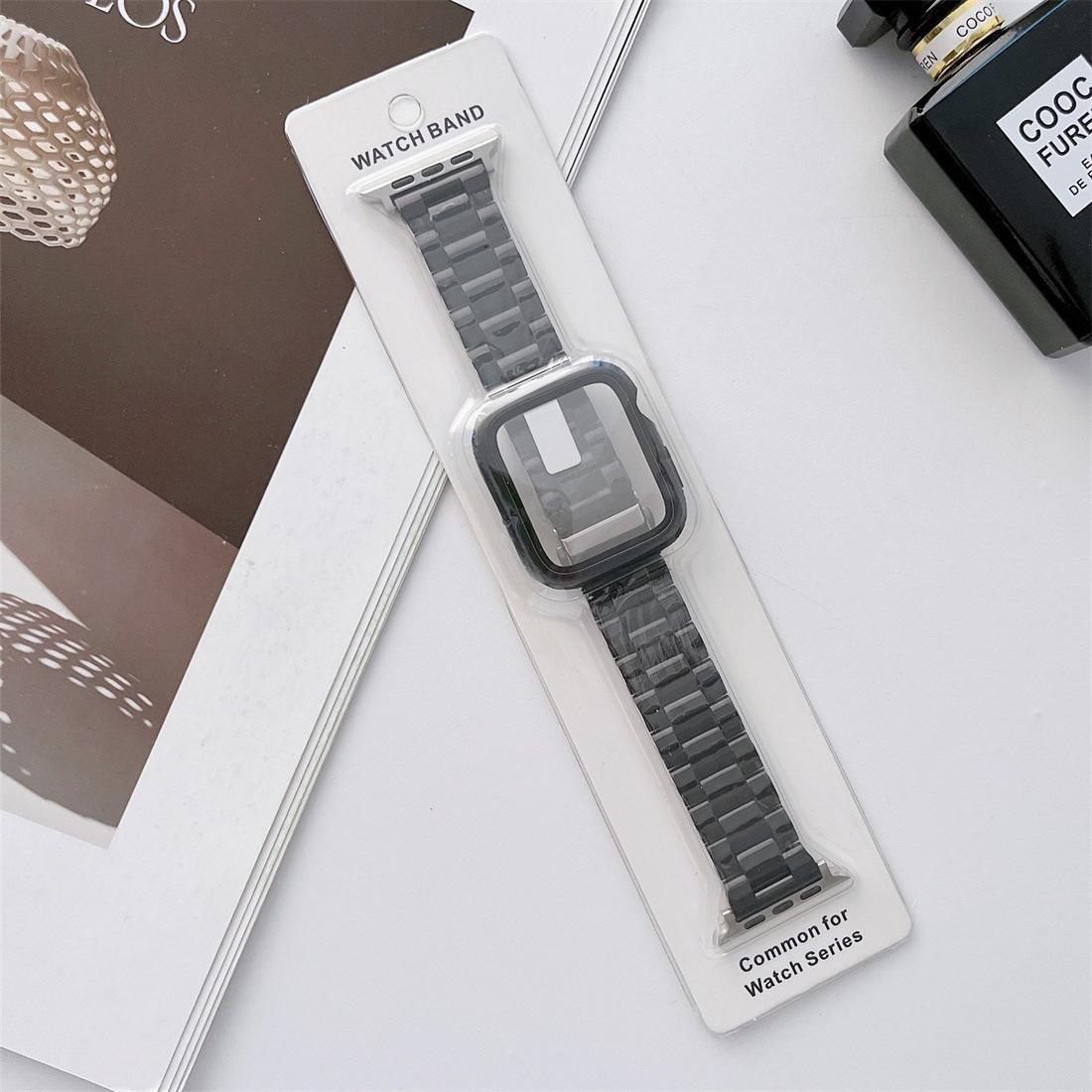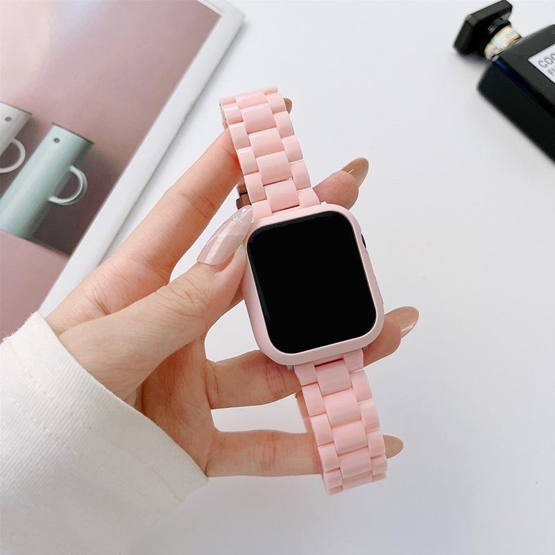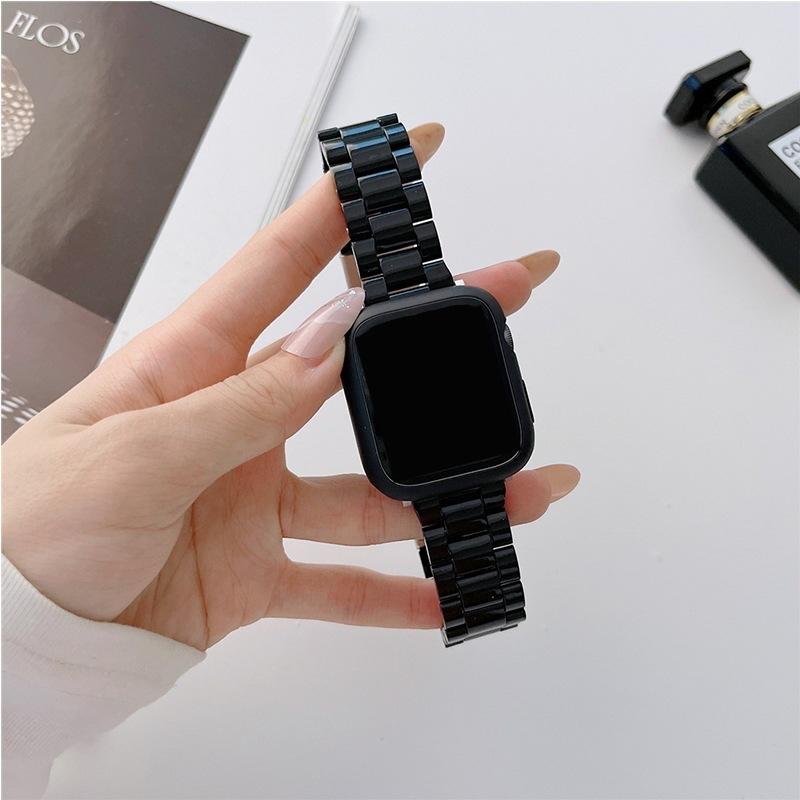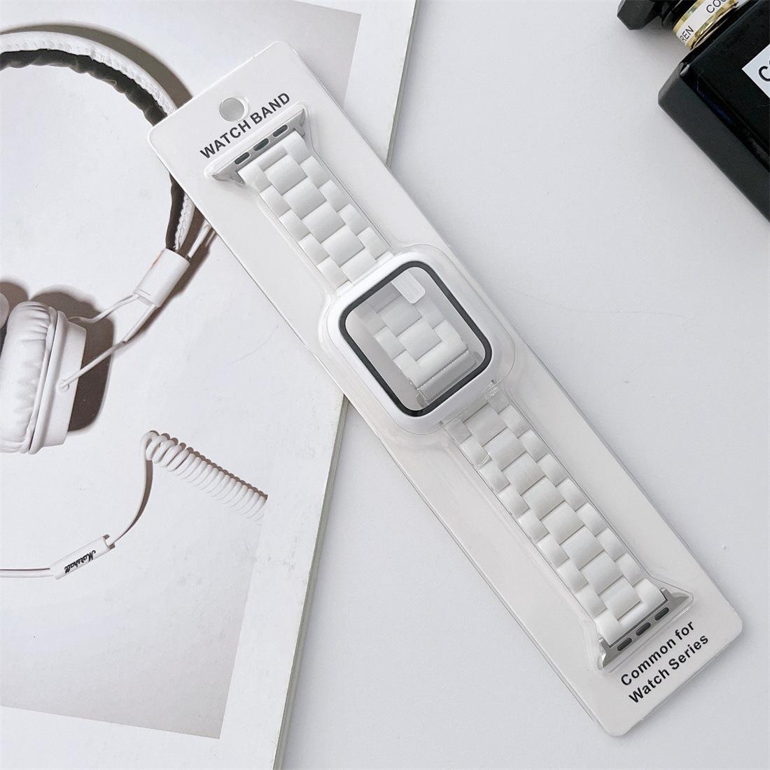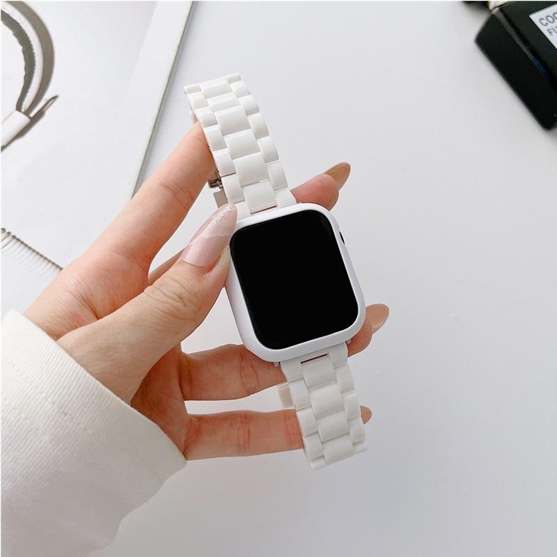 Set de caja y correa de reloj de plástico de color sólido con imitación de cerámica de tres cuentas