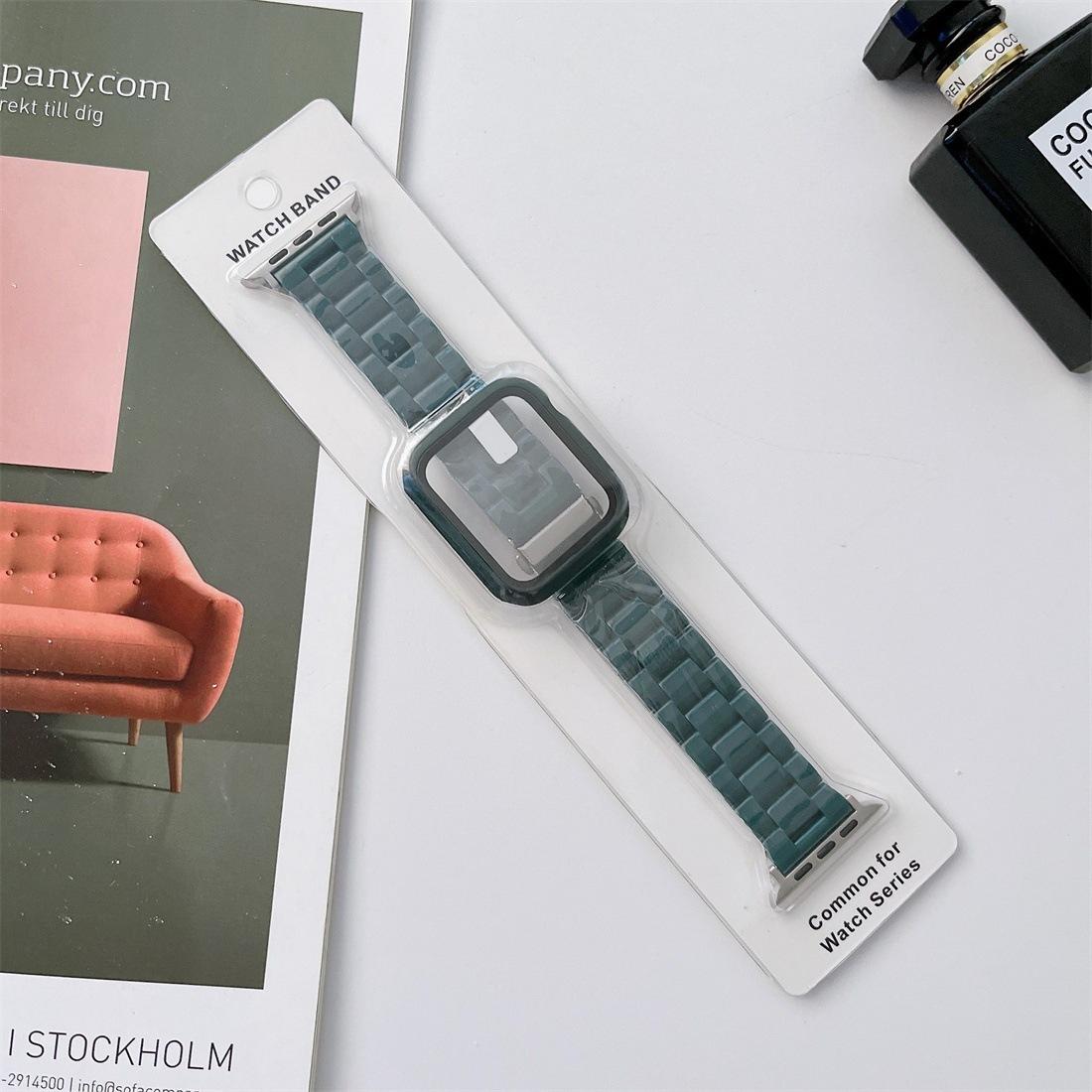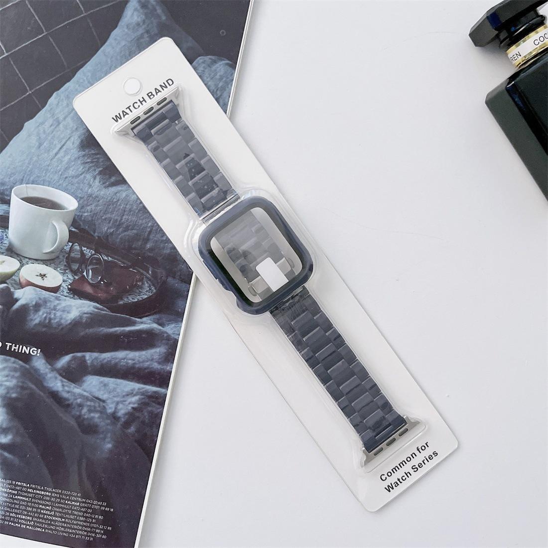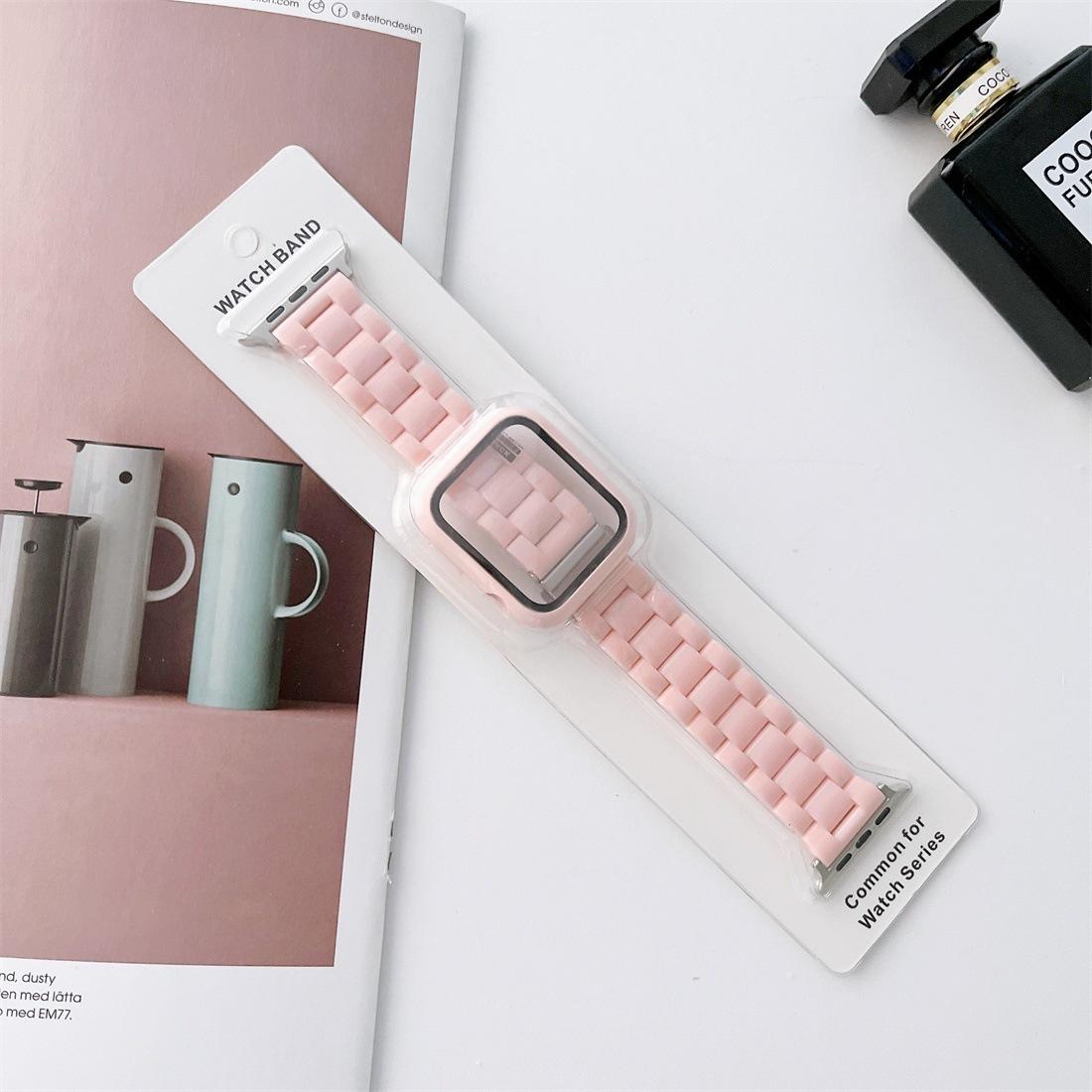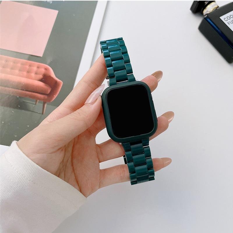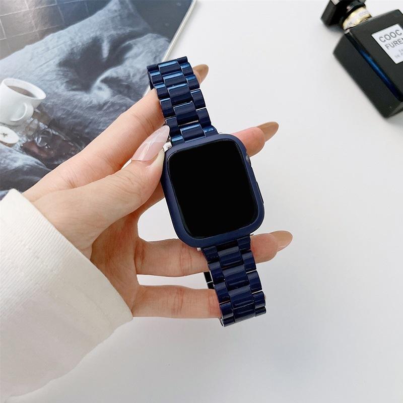 Set de caja y correa de reloj de plástico de color sólido con imitación de cerámica de tres cuentas