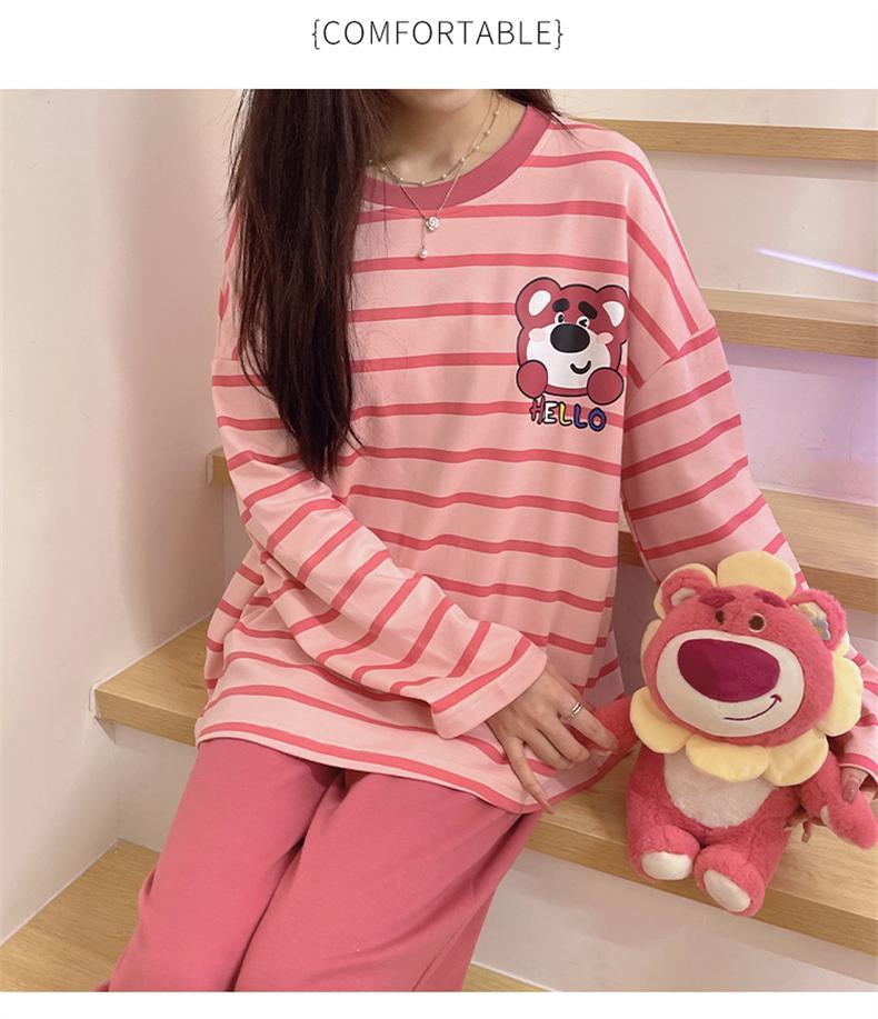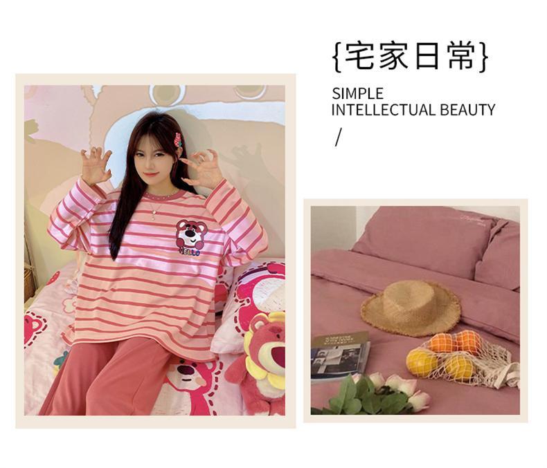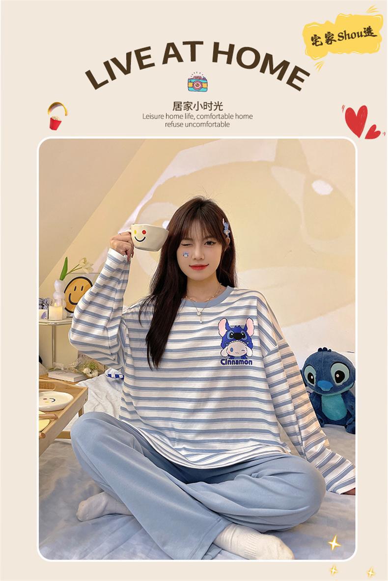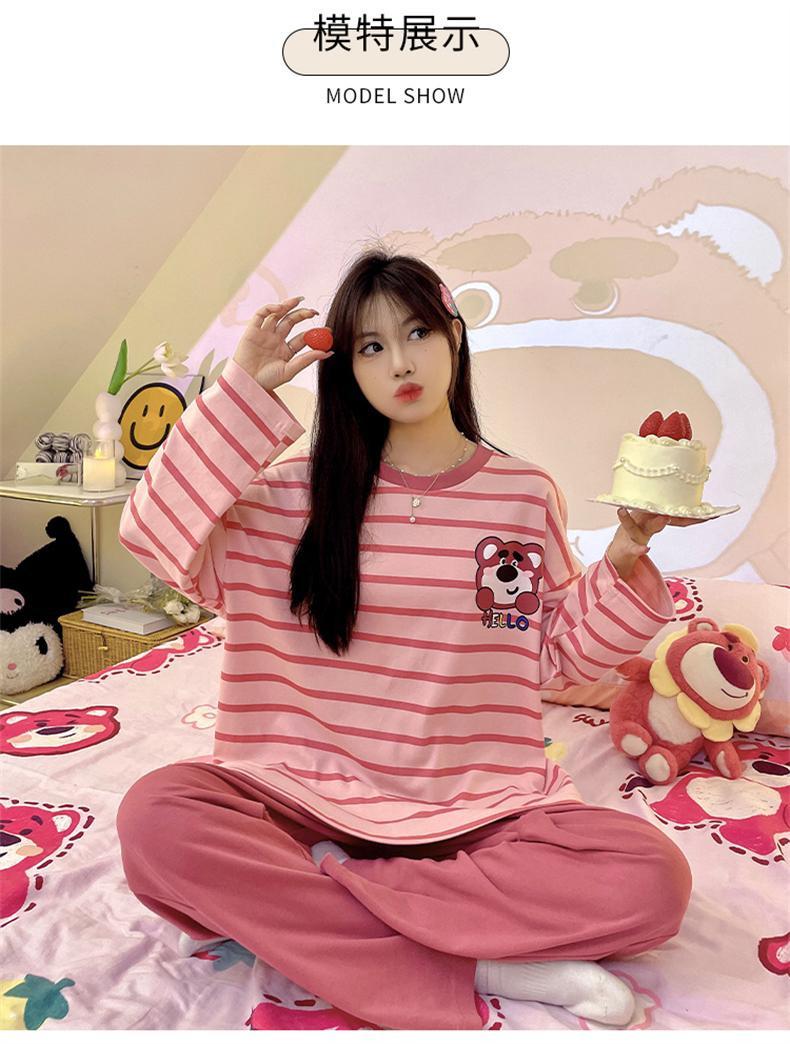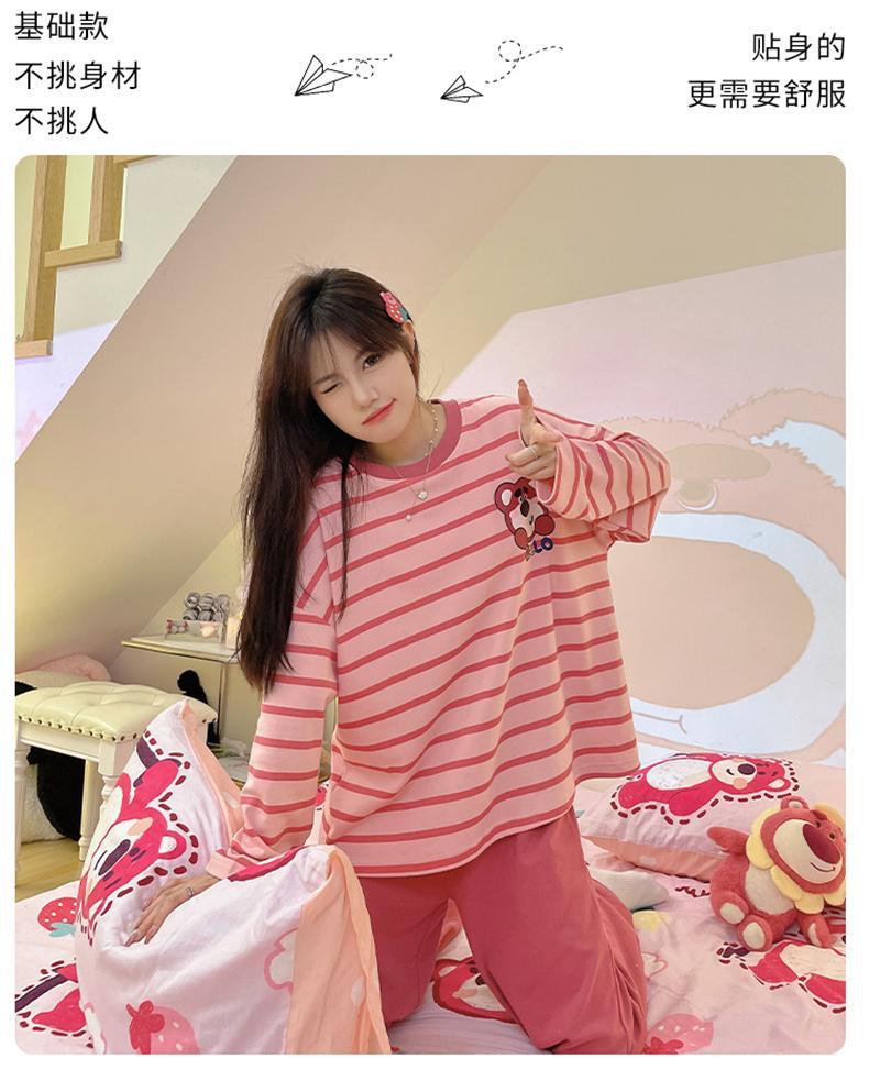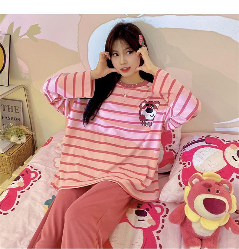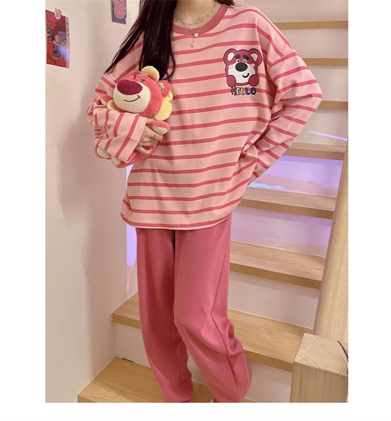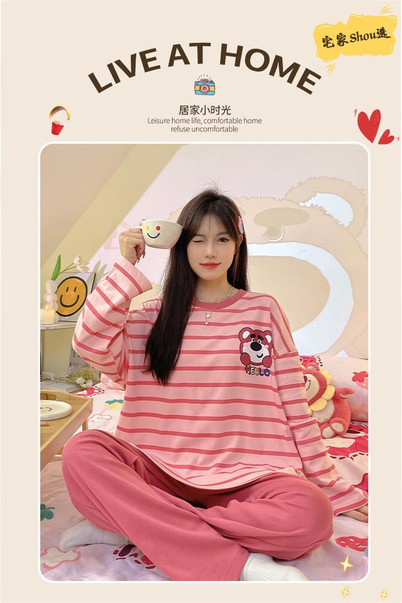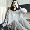 Pijamas nuevos de primavera y otoño de 2024 para mujer, pantalones de manga larga, cuello redondo, linda chica, sueltos, de talla grande, ropa de casa con dibujos animados