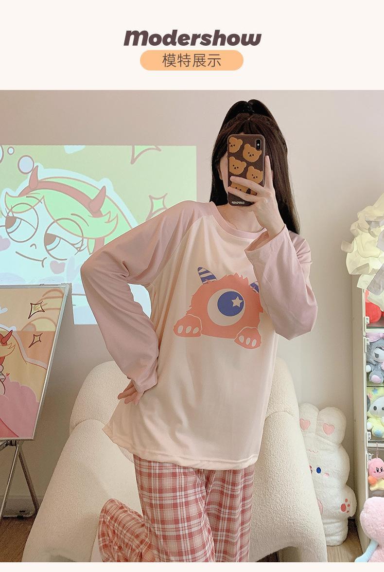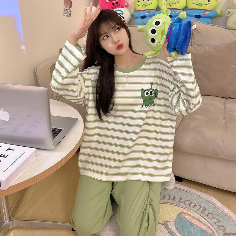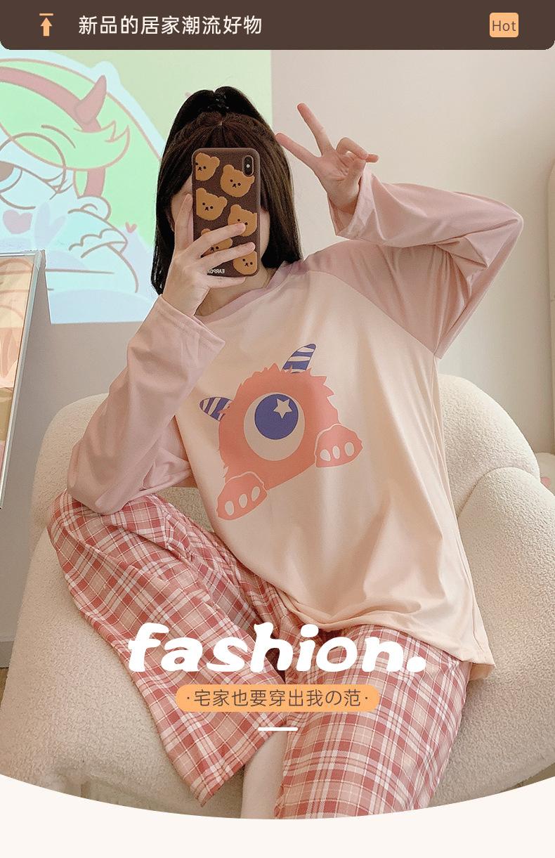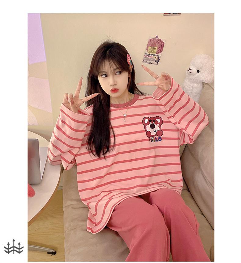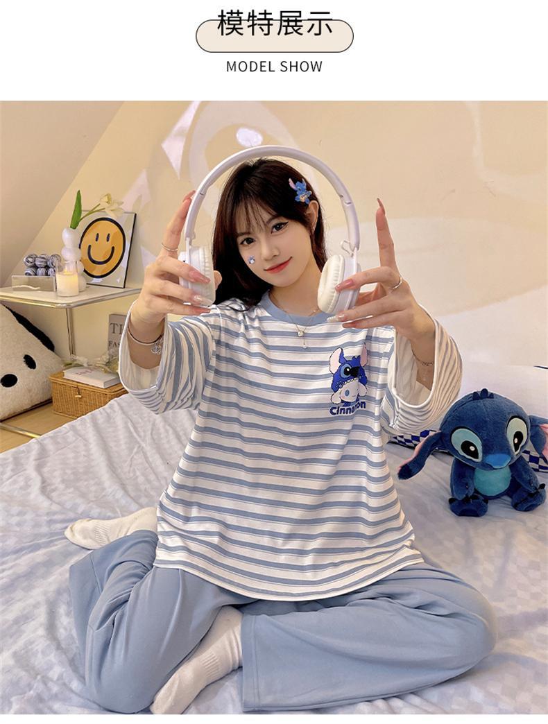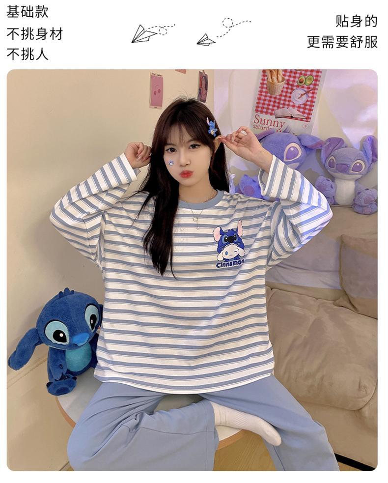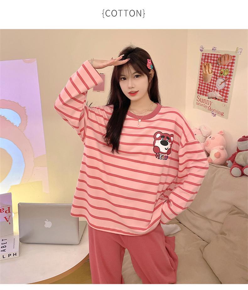Pijamas nuevos de primavera y otoño de 2024 para mujer, pantalones de manga larga, cuello redondo, linda chica, sueltos, de talla grande, ropa de casa con dibujos animados