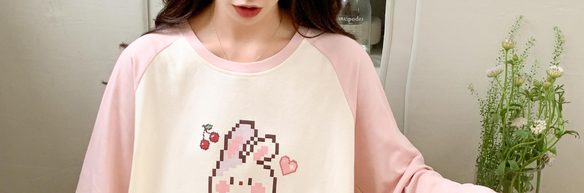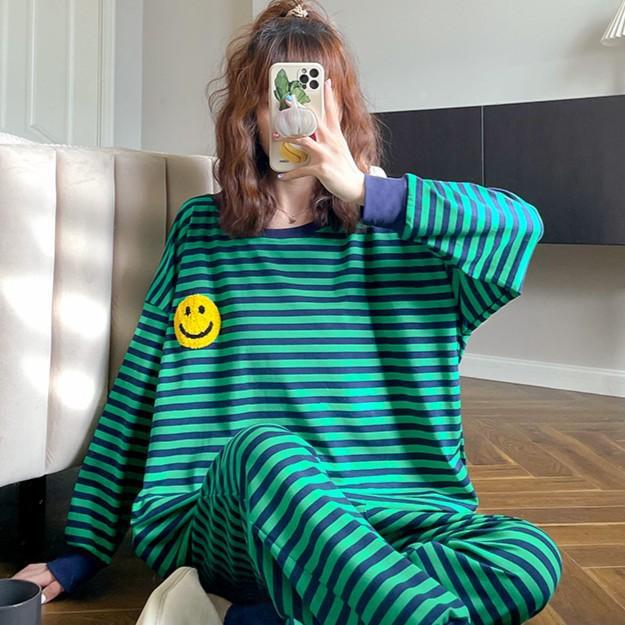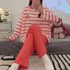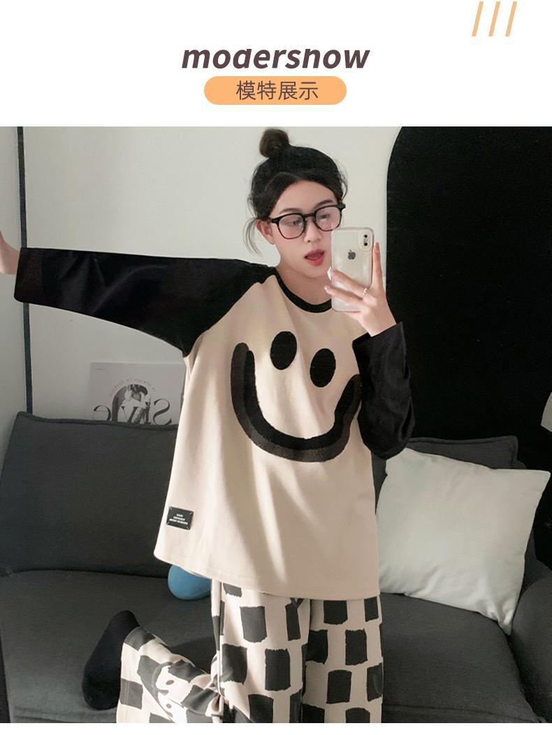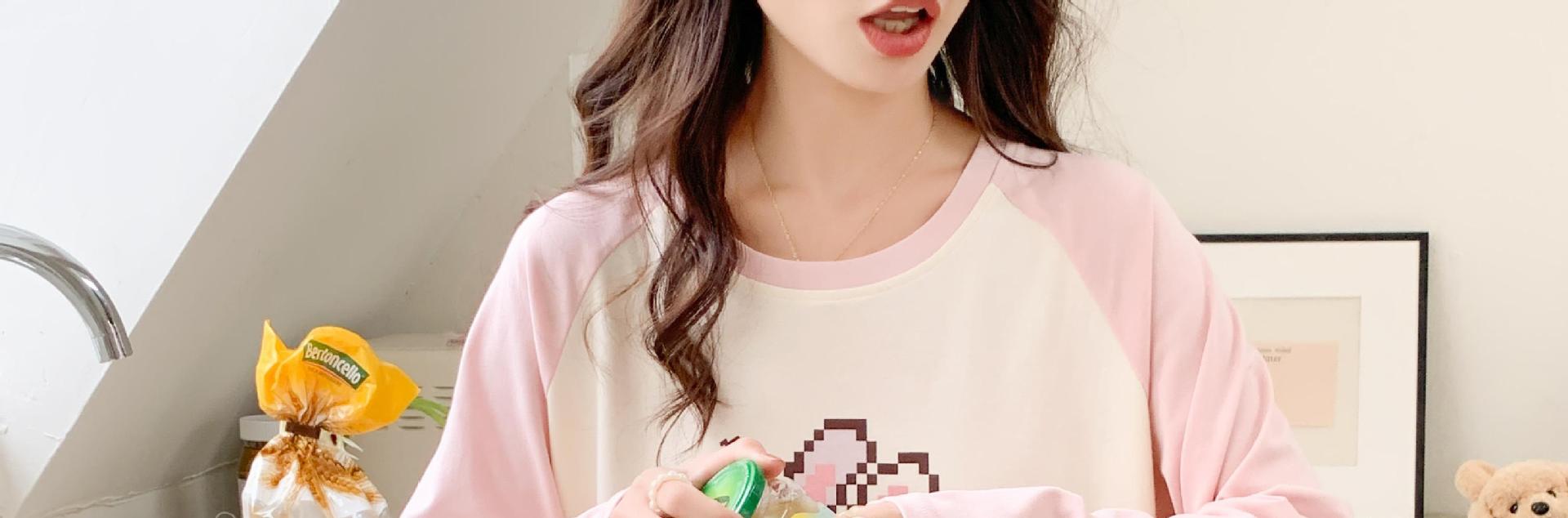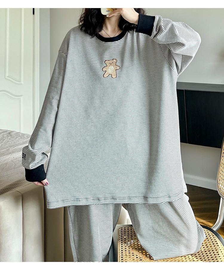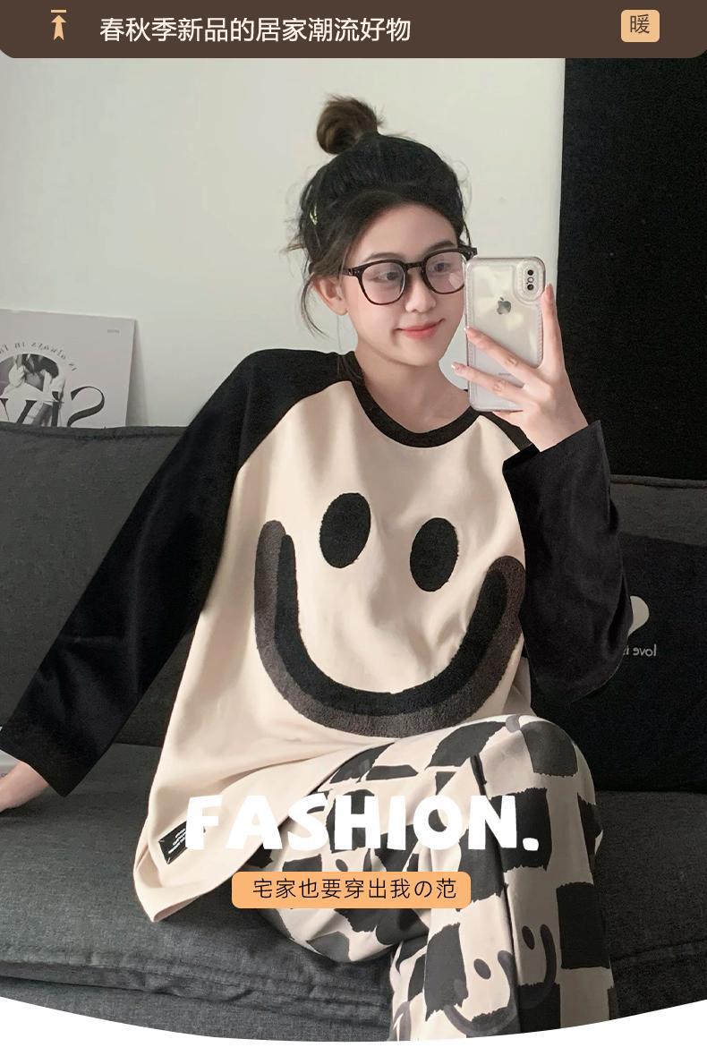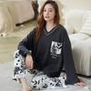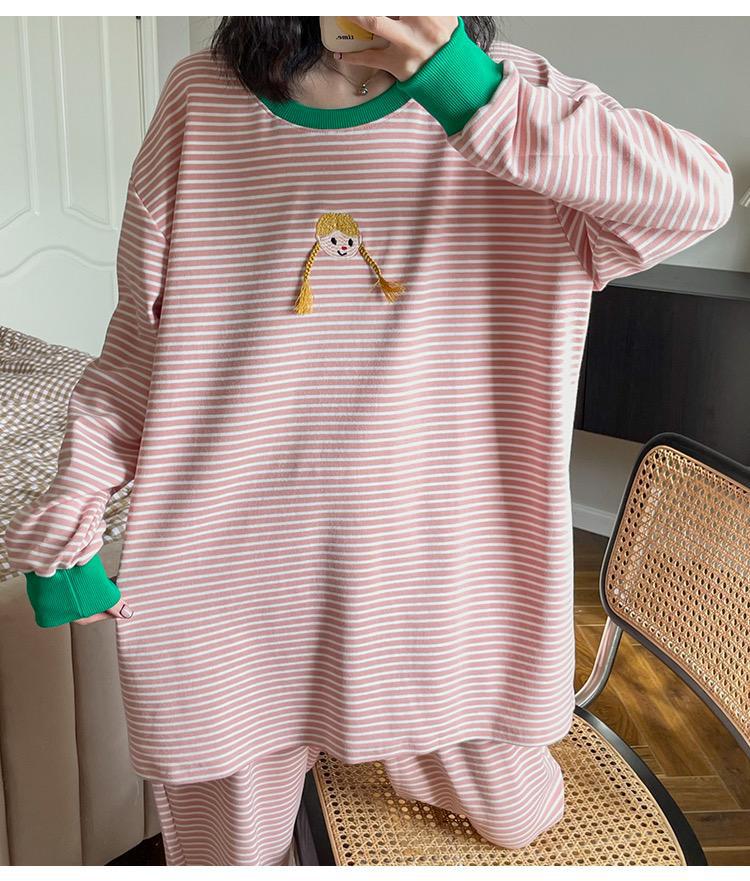 Pijamas nuevos de primavera y otoño de 2024 para mujer, pantalones de manga larga, cuello redondo, linda chica, sueltos, de talla grande, ropa de casa con dibujos animados