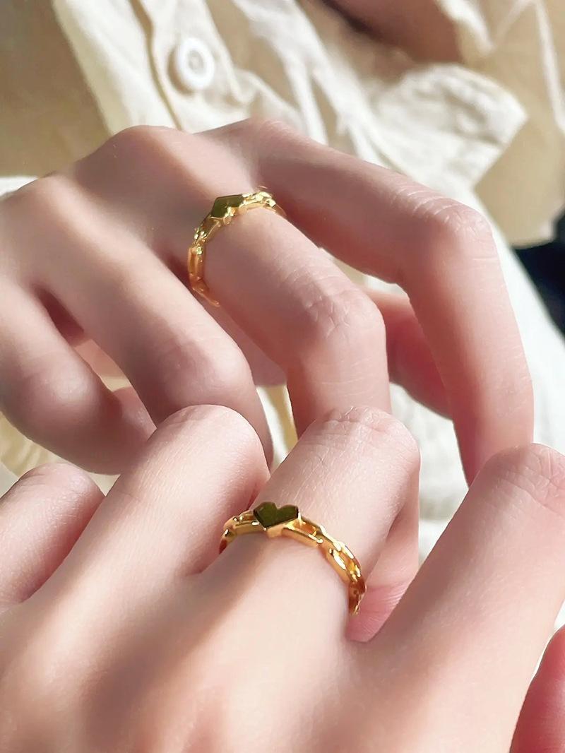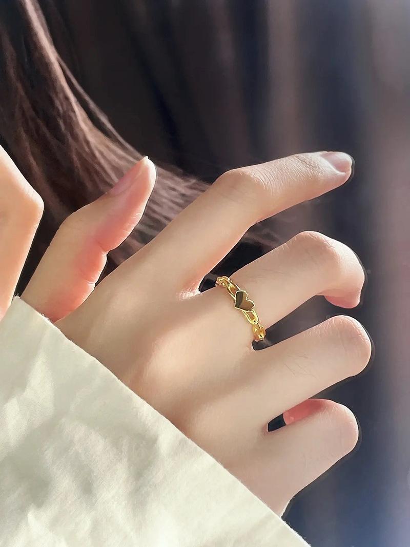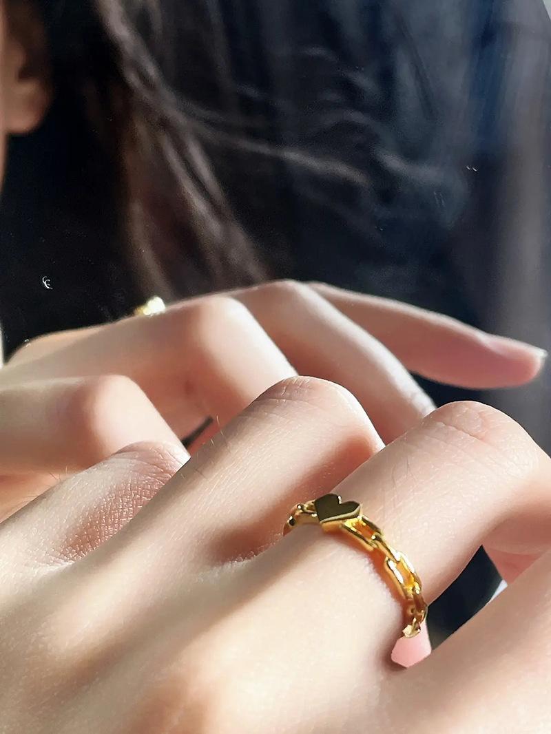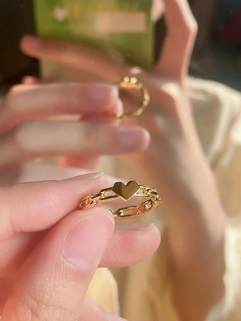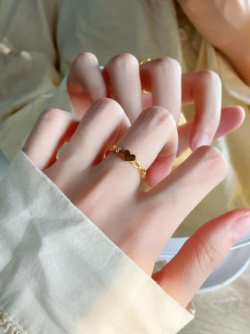Anillo Cadena Amor Libro Caperucita Roja Anillo de Oro de Imitación para Mujer Anillo de Personalidad Geométrico Calado Enlazado Anillo de Comida para Dedo